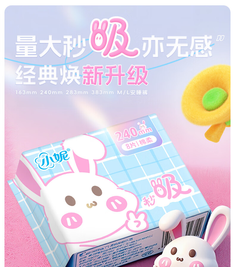 小妮日用240卫生巾经典棉柔丝薄干爽护翼瞬吸日用学生姨妈巾 夜用40片