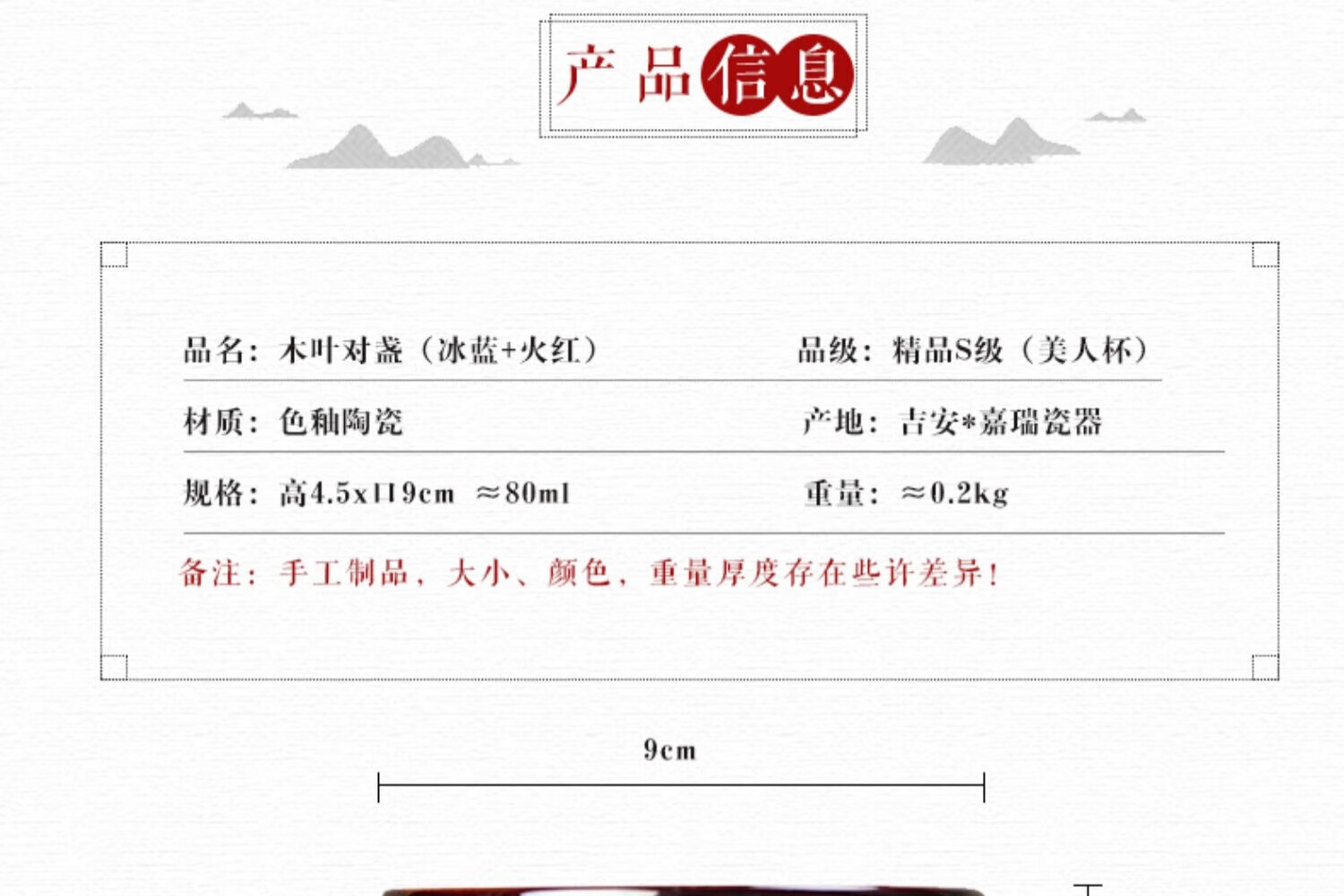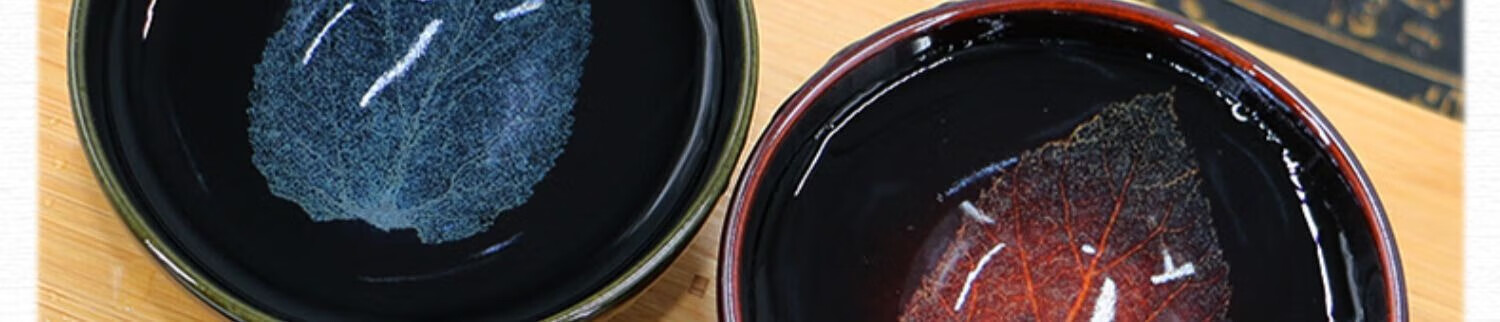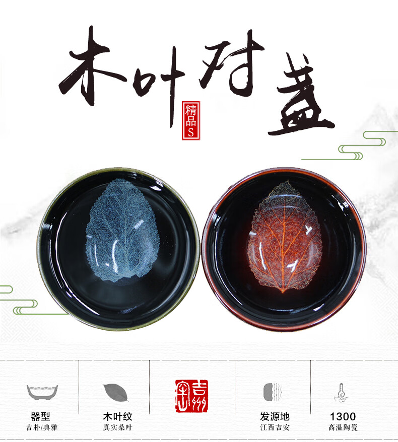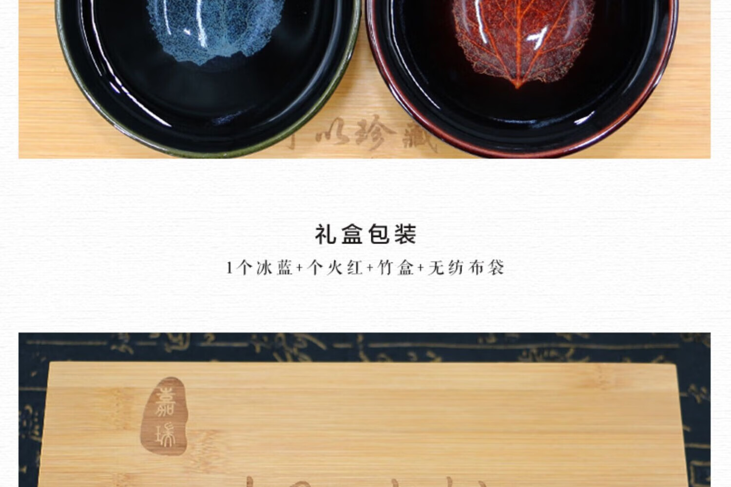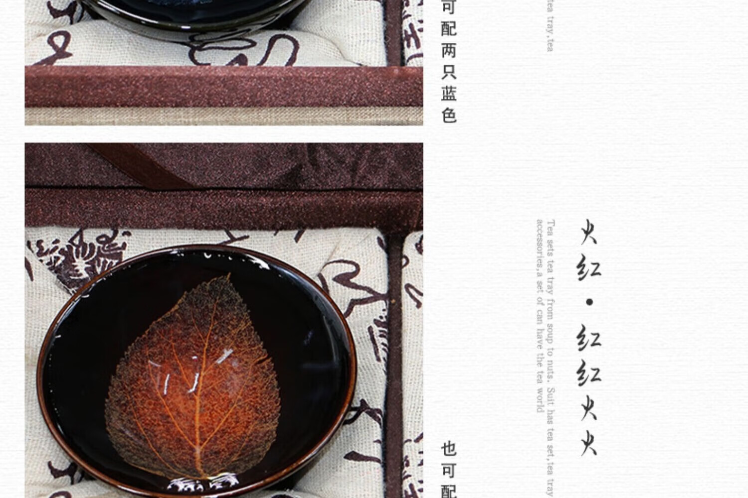 吉州窑陶瓷木叶天目杯情侣对杯精品冰蓝火红木叶对盏礼盒
