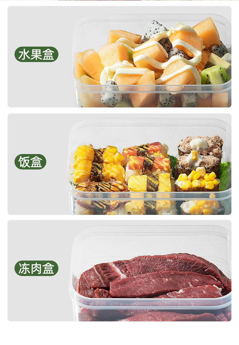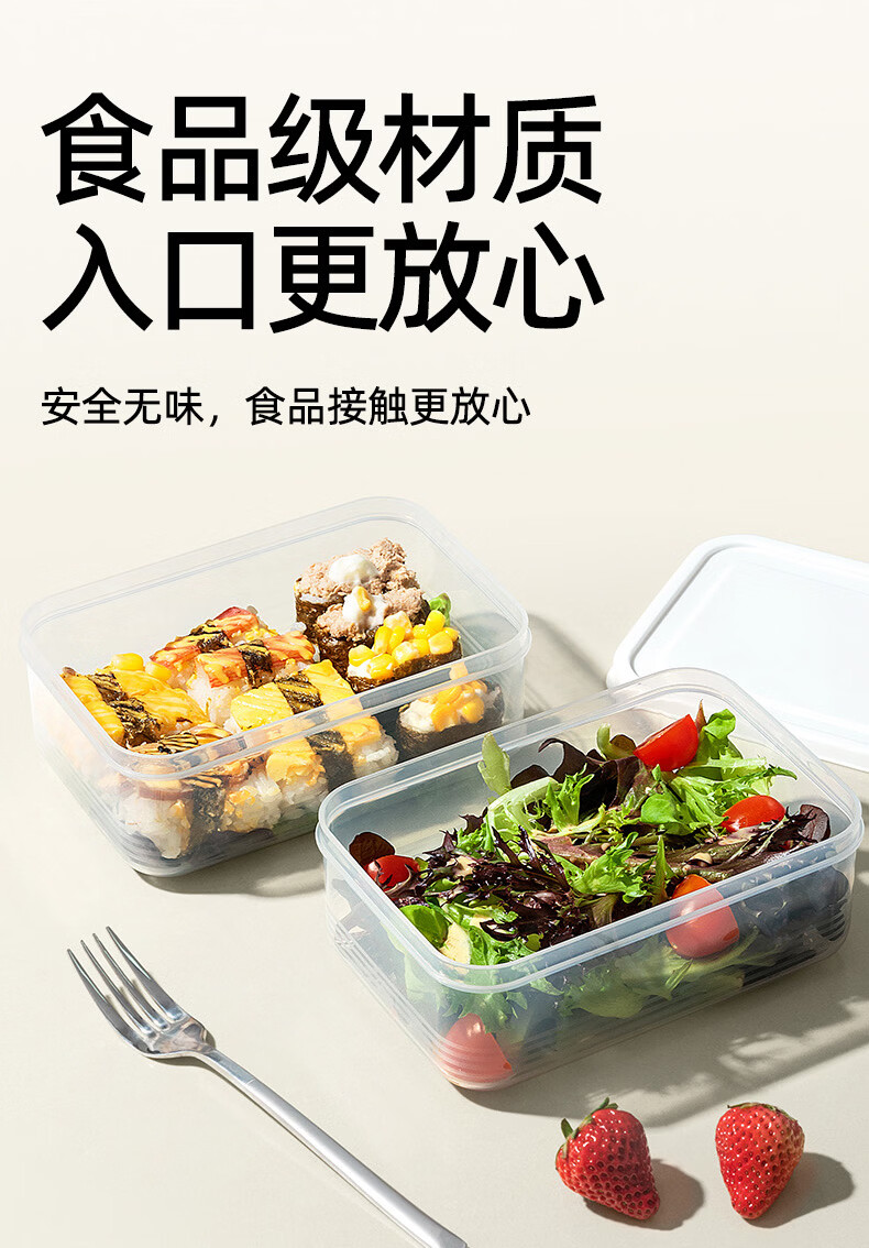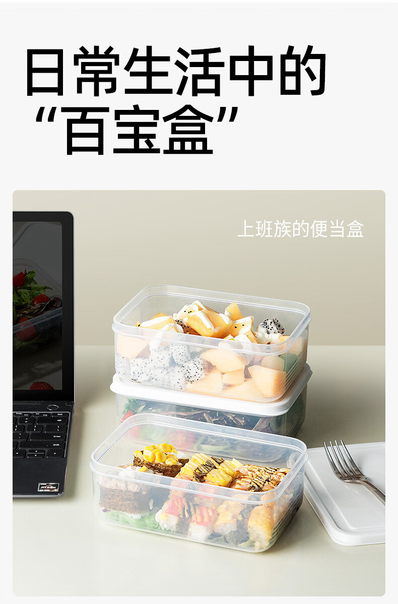 安扣保鲜盒饭盒大容量零食水果便当盒餐盒厨房收纳盒储物盒子 【3件套】650ml+1300ml+2200ml