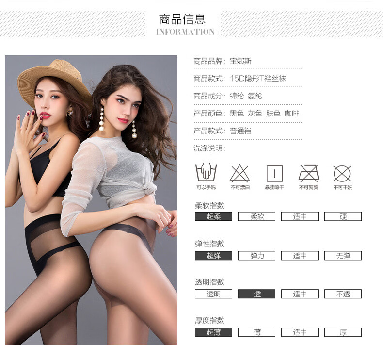 宝娜斯(BONAS)T裆无痕丝袜春秋薄款防勾丝显腿长款隐形不露边连体丝袜子 咖啡 均码