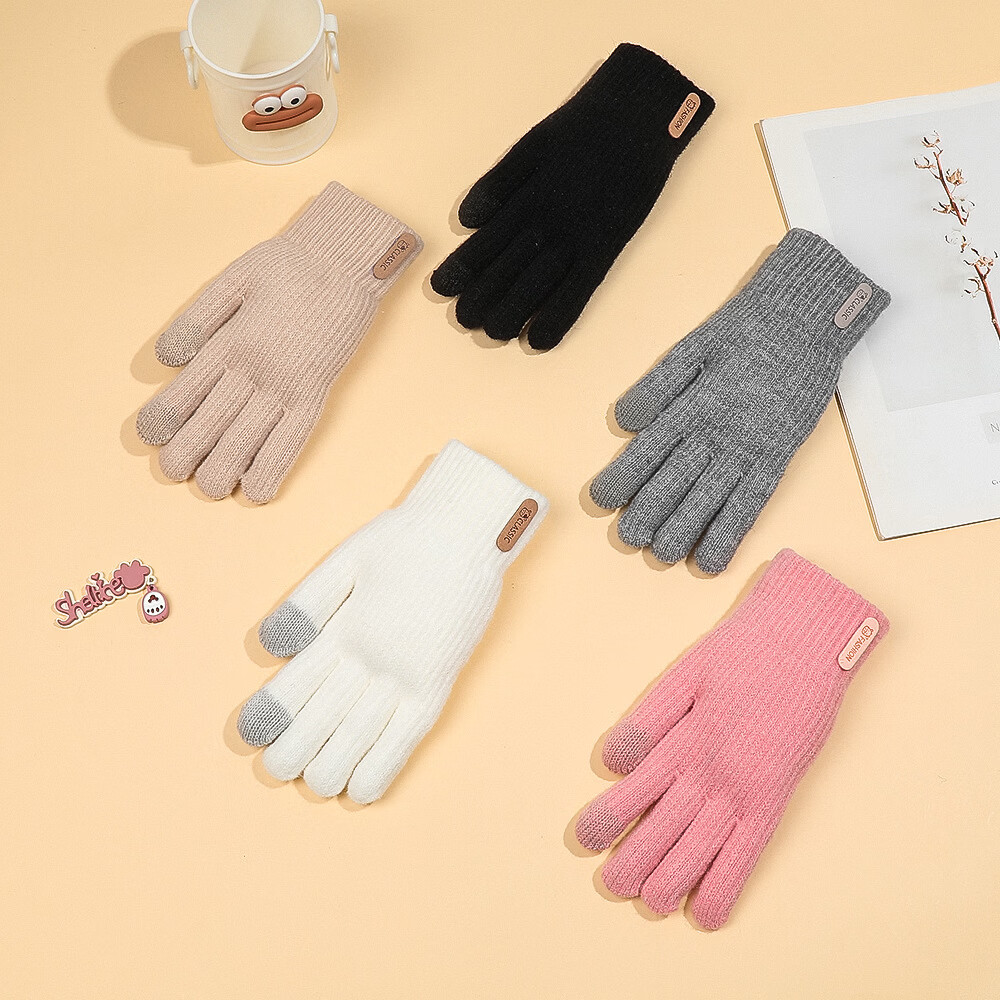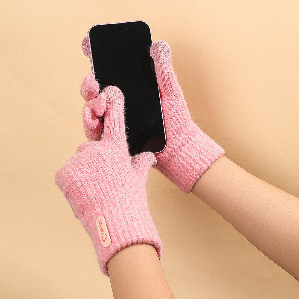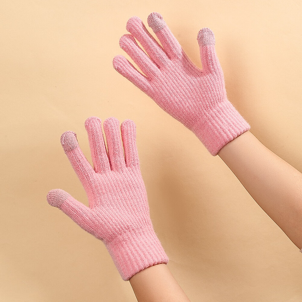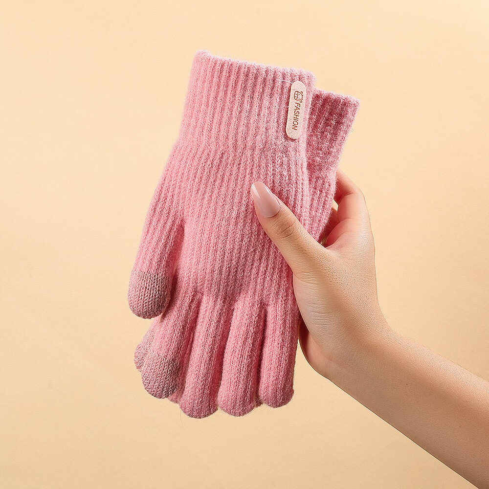 【厂家直发】针织保暖手套女韩系ins学生秋冬季防寒加绒触屏骑车 粉色【美拉德竖标】