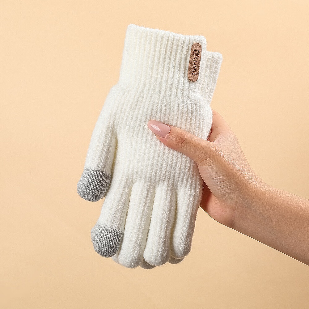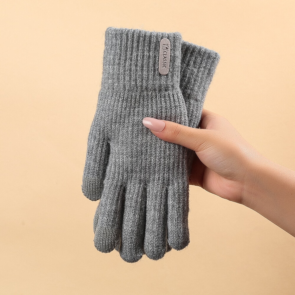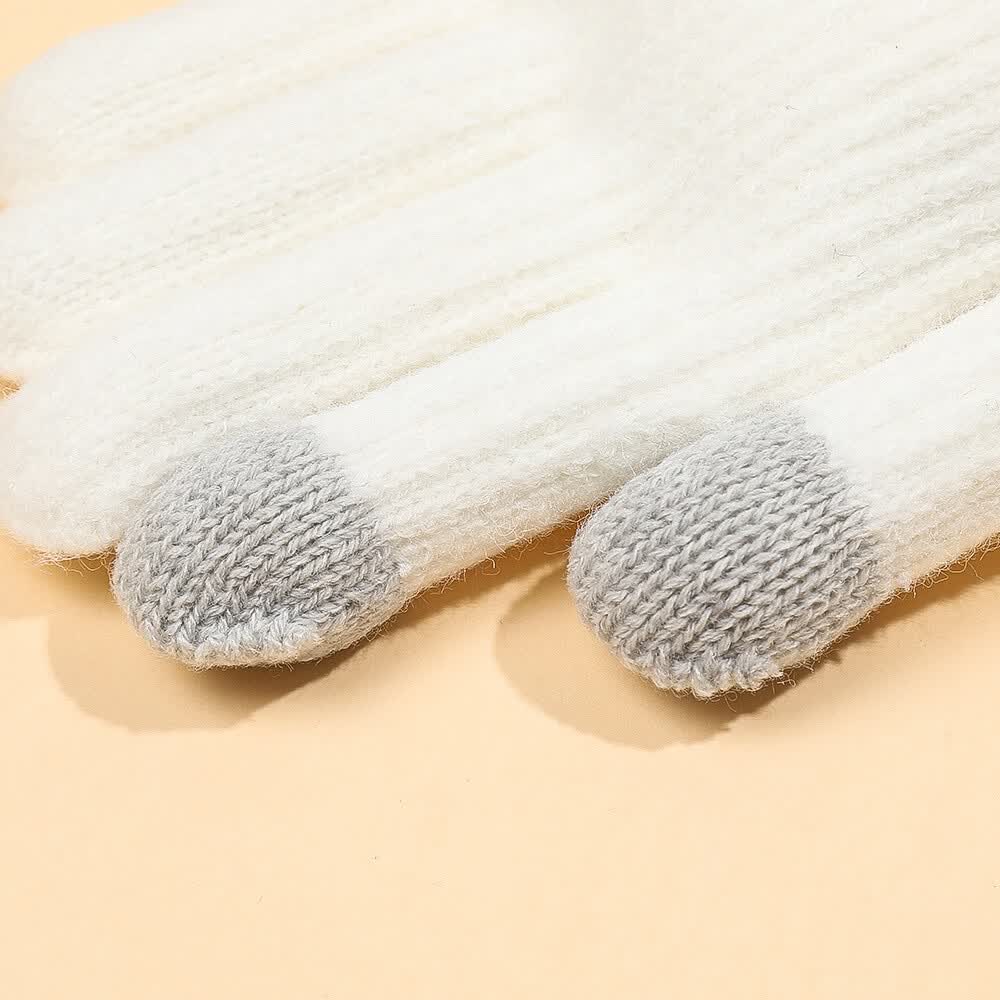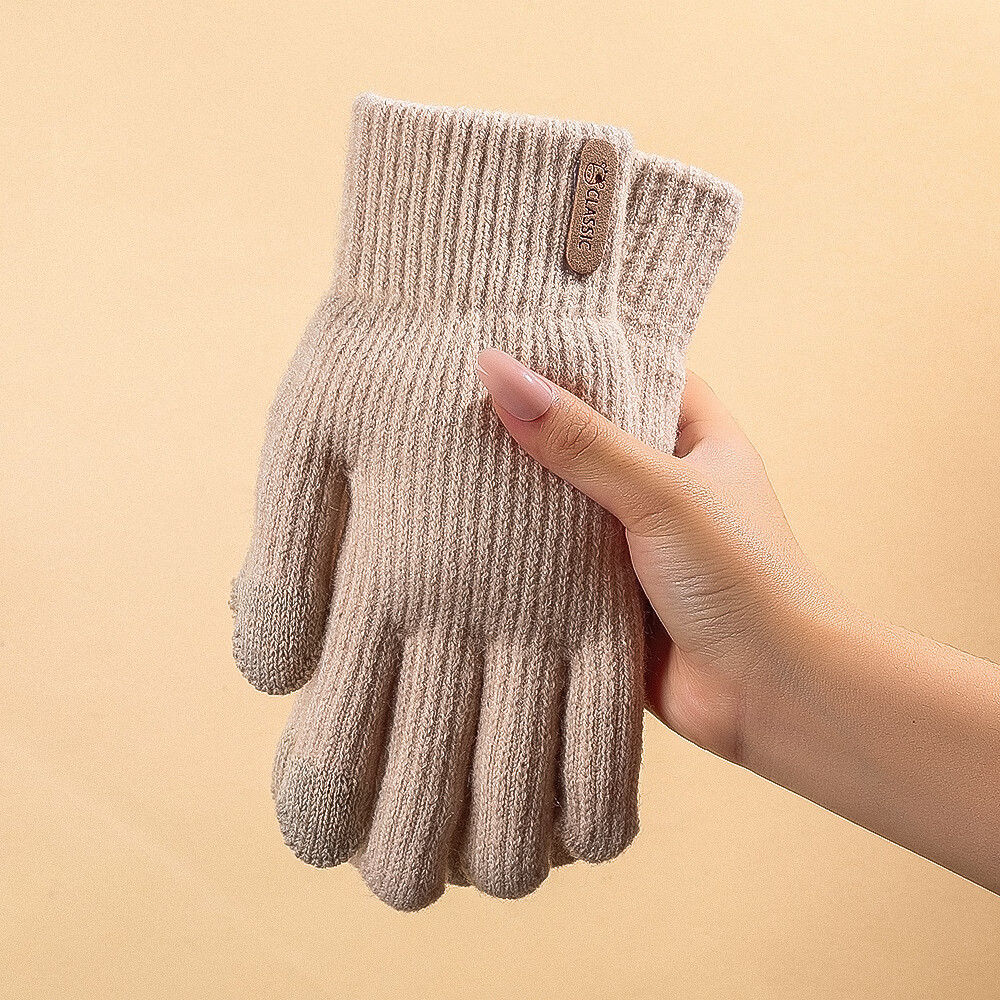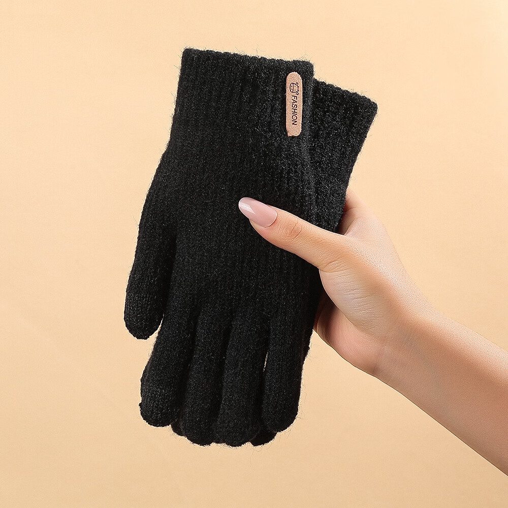 【厂家直发】针织保暖手套女韩系ins学生秋冬季防寒加绒触屏骑车 粉色【美拉德竖标】