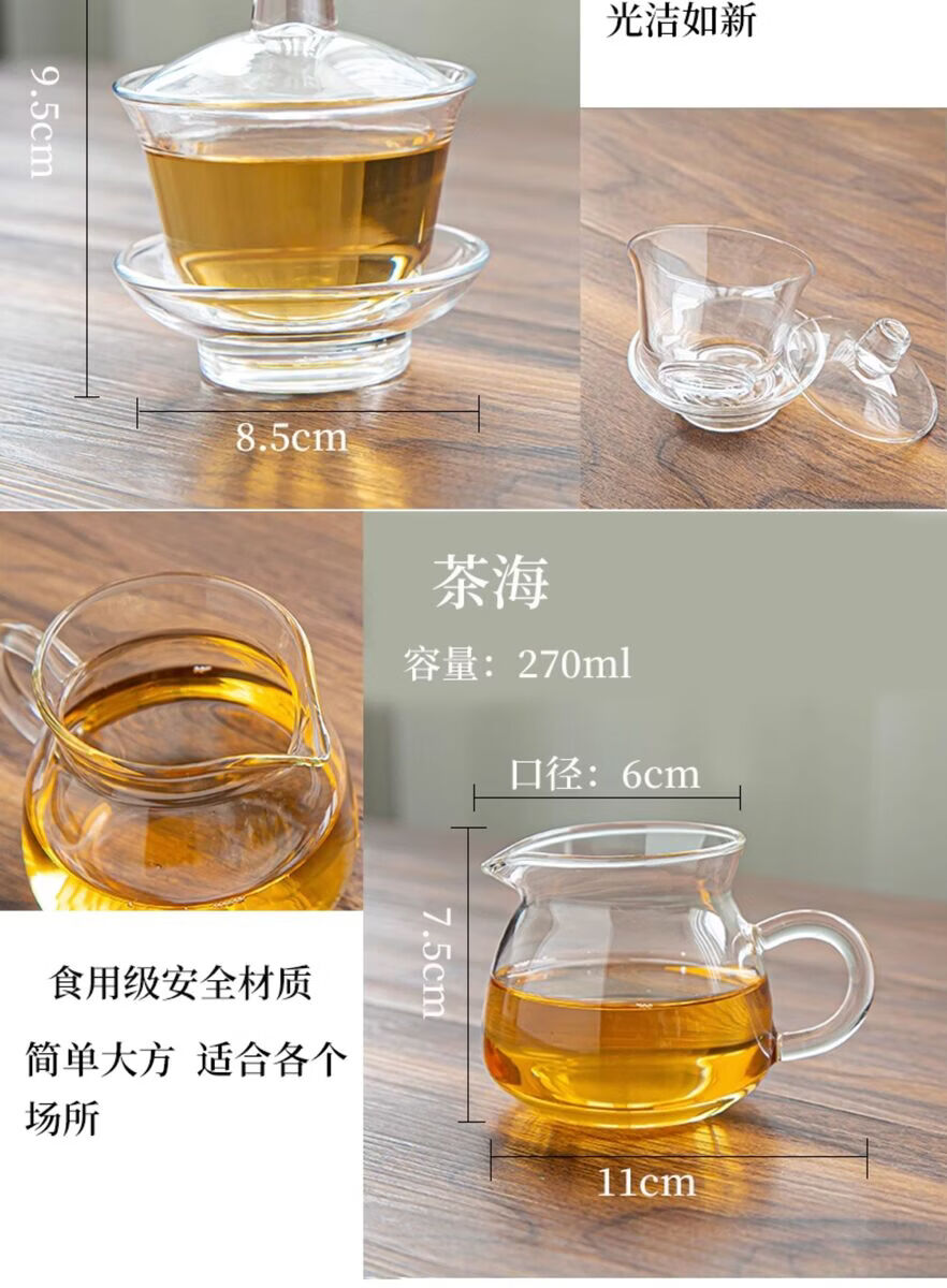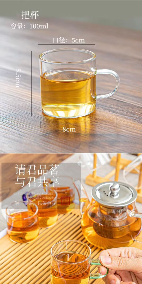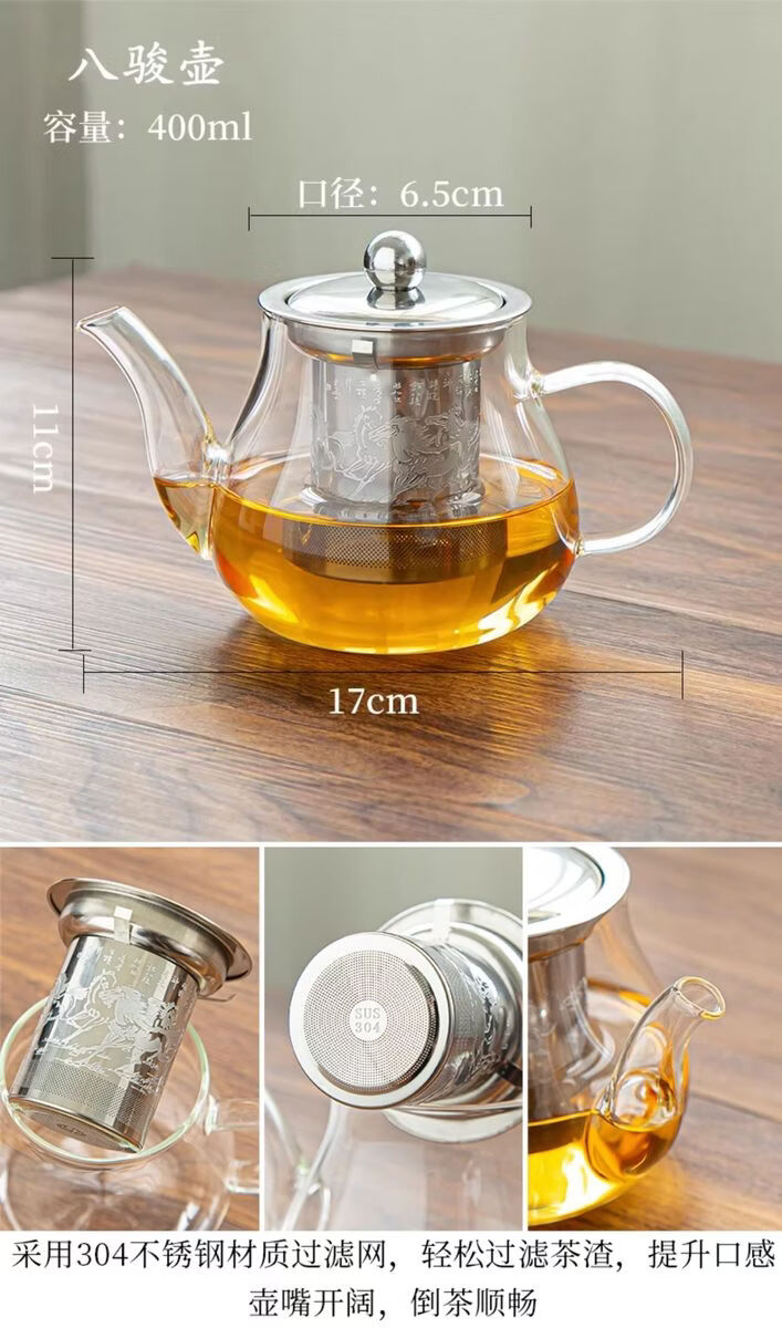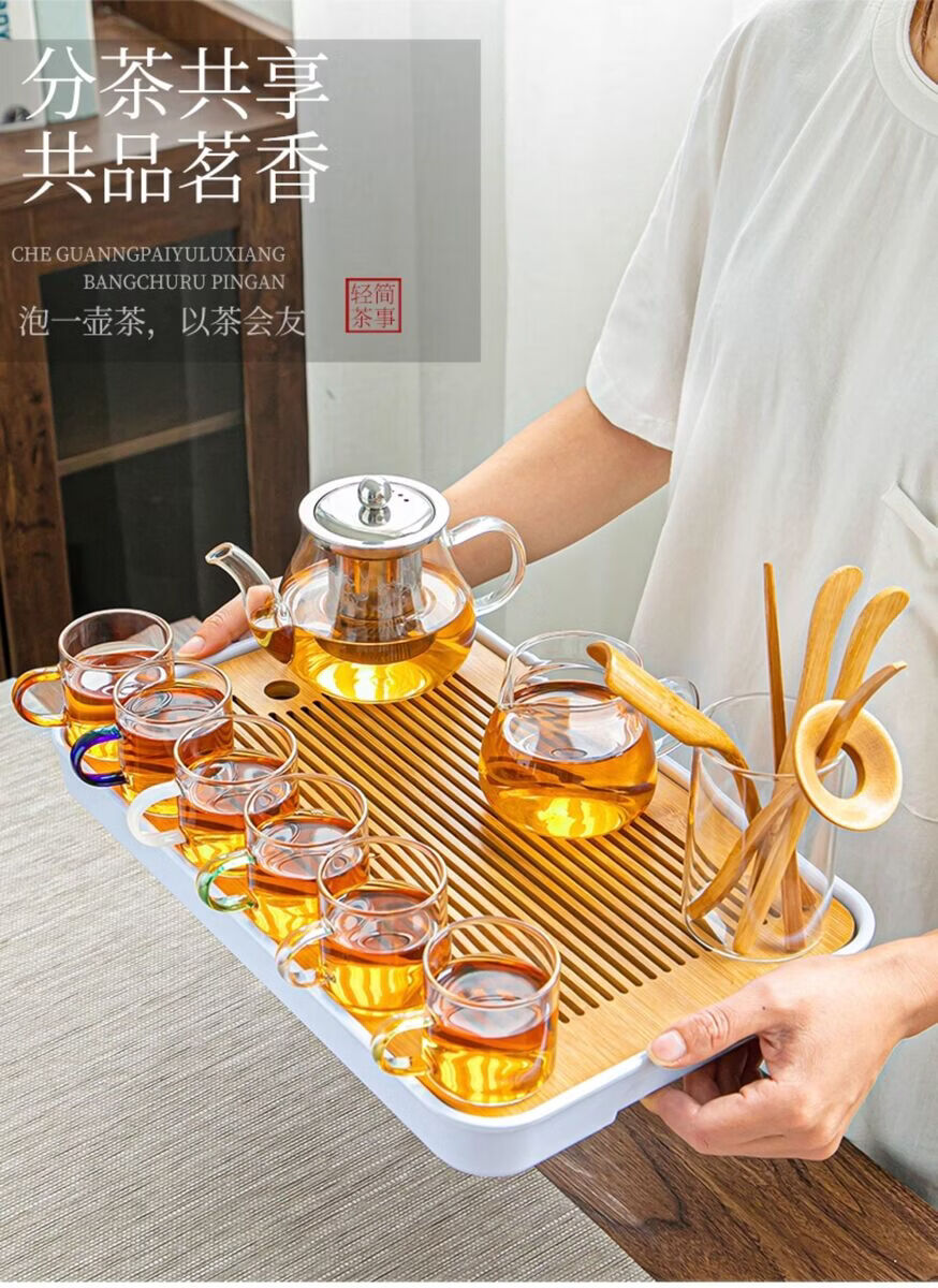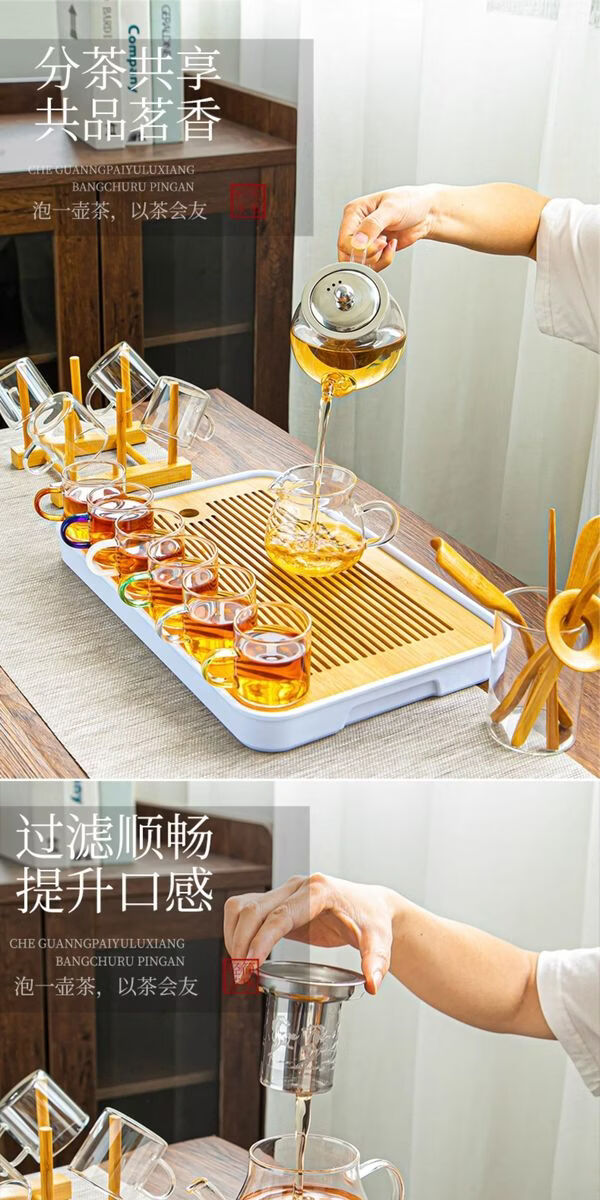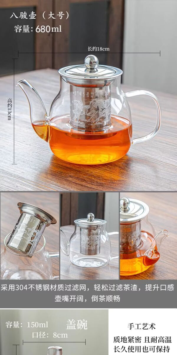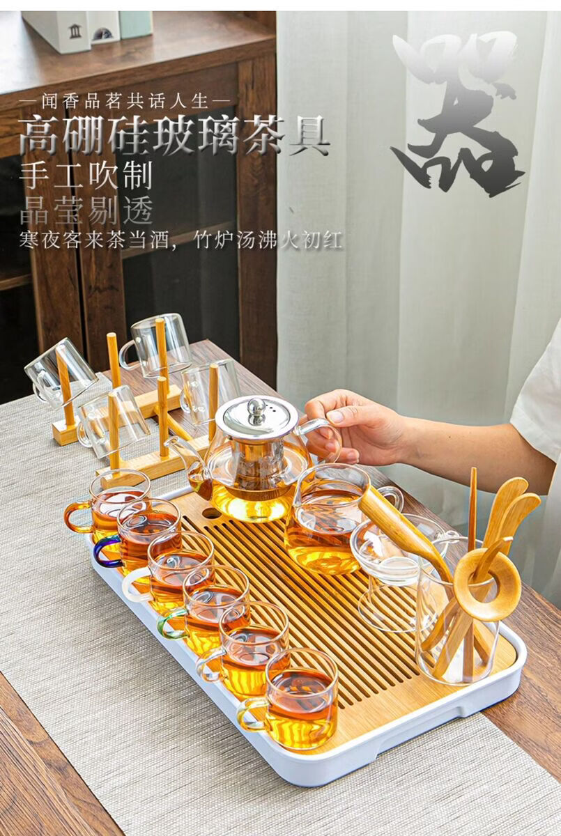 溥畔耐热玻璃功夫茶具套装家用泡茶器透明茶杯带把红茶花茶壶办公茶壶 [烟灰]八骏壶+把杯10件套+茶道+胡桃春羡盘