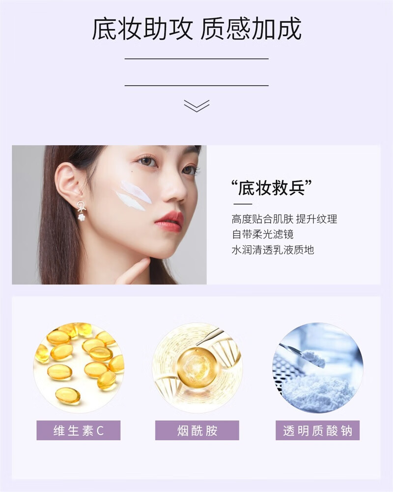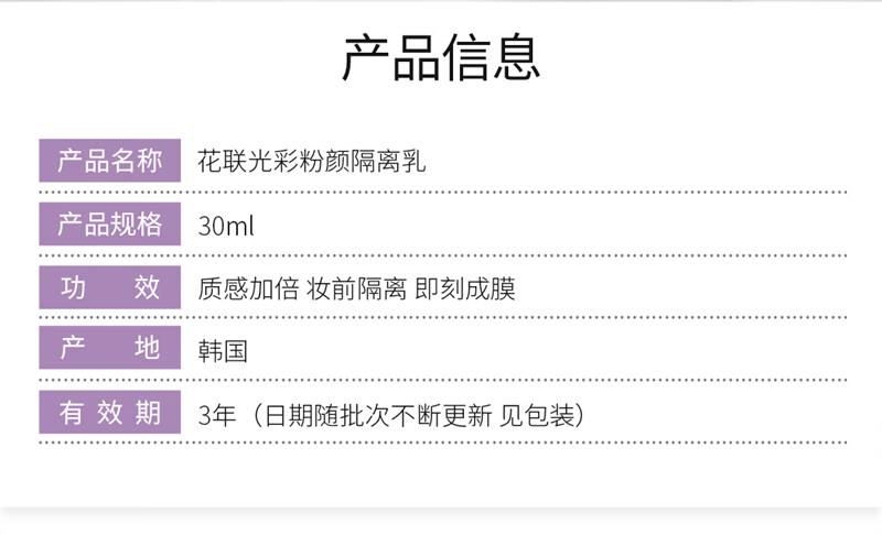 花联(TINCHEW)光彩粉颜隔离乳妆前乳提亮均匀肤色隐形毛孔保湿遮瑕 浅紫色