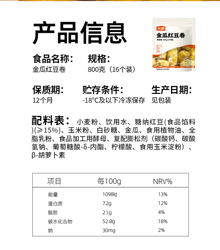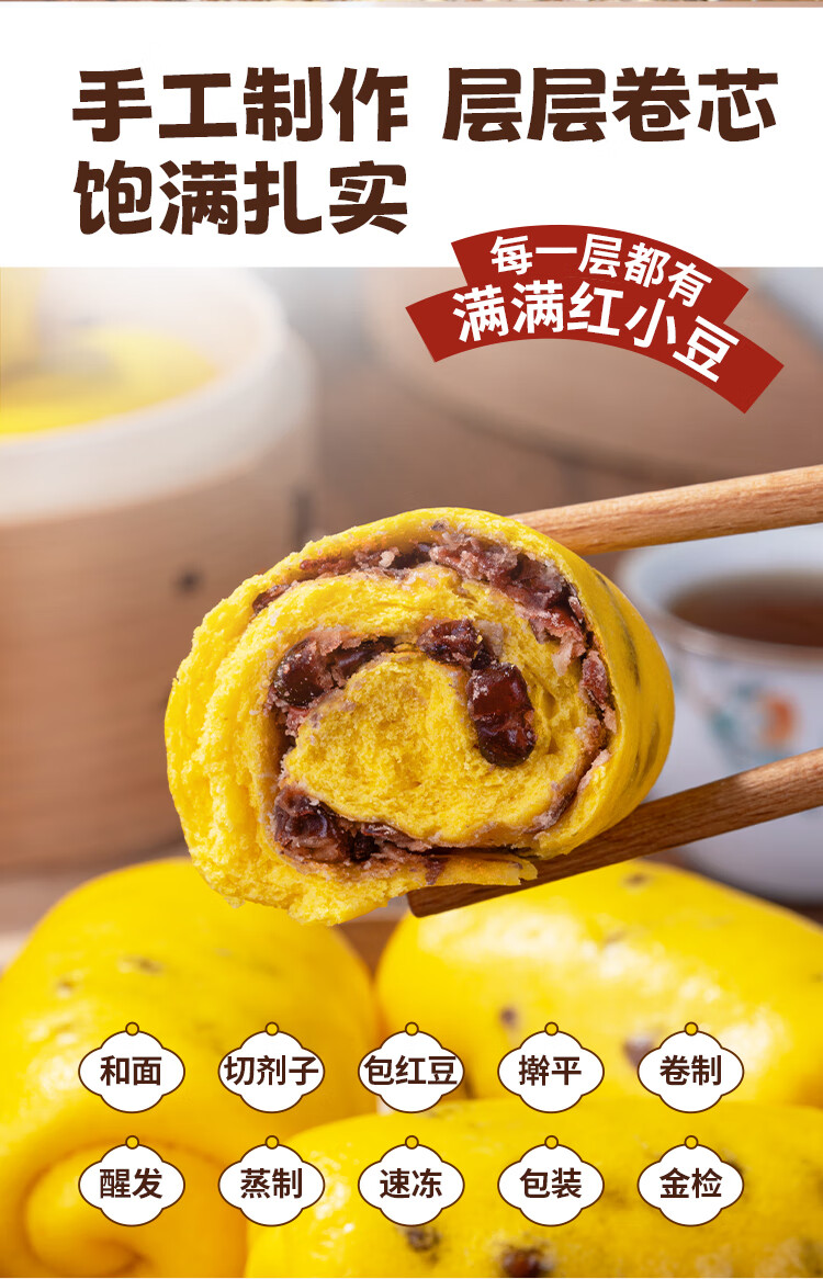 头厨金瓜红豆卷 800g共16只 儿童南瓜馒头花卷学生早餐食品半成品