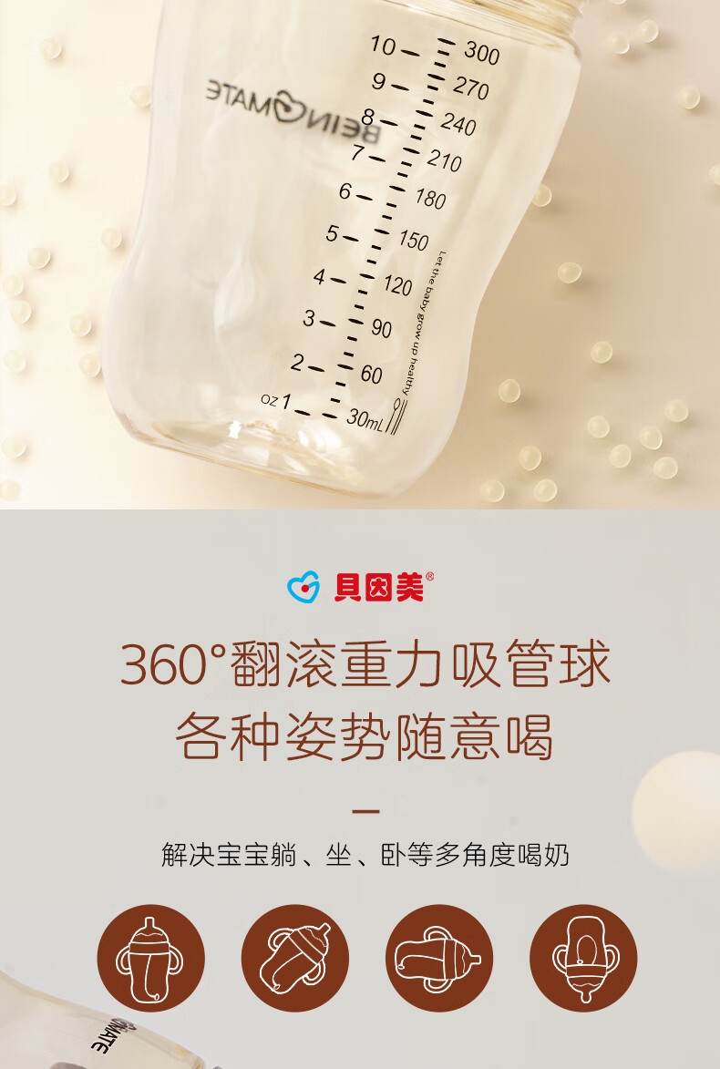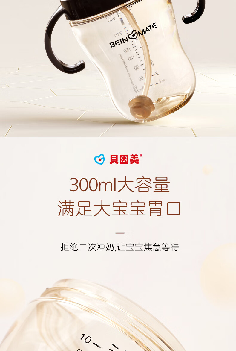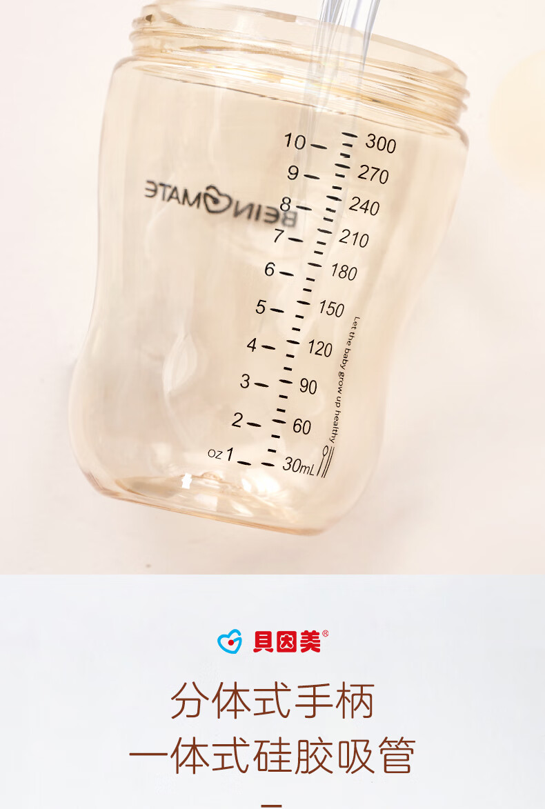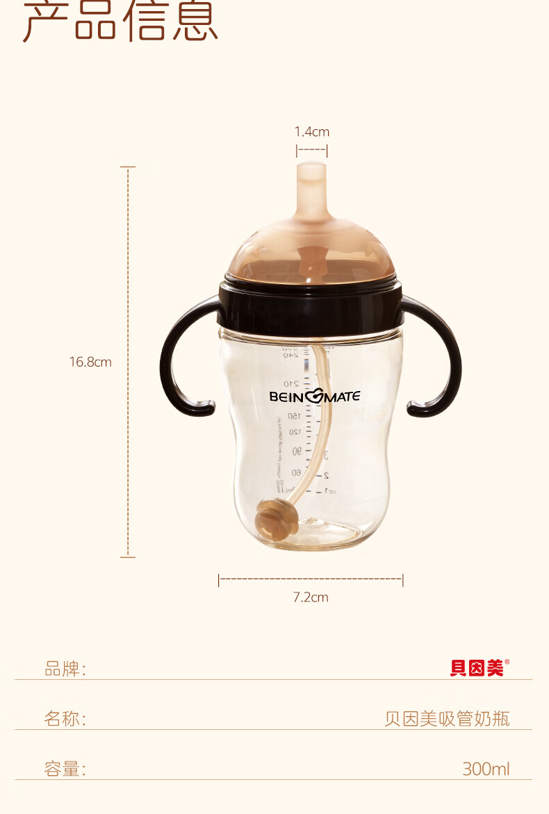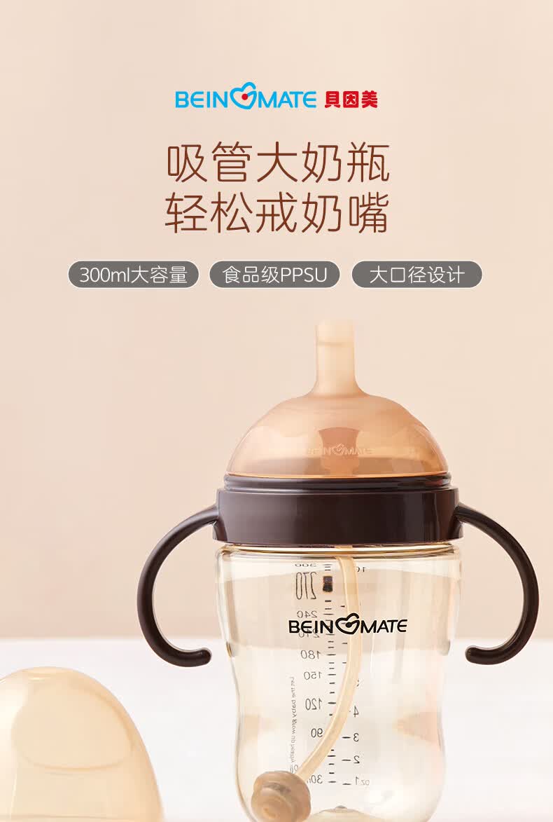 贝因美大宝宝吸管奶瓶婴儿PPSU断奶奶瓶一岁以上12月+双手柄重力球300ml