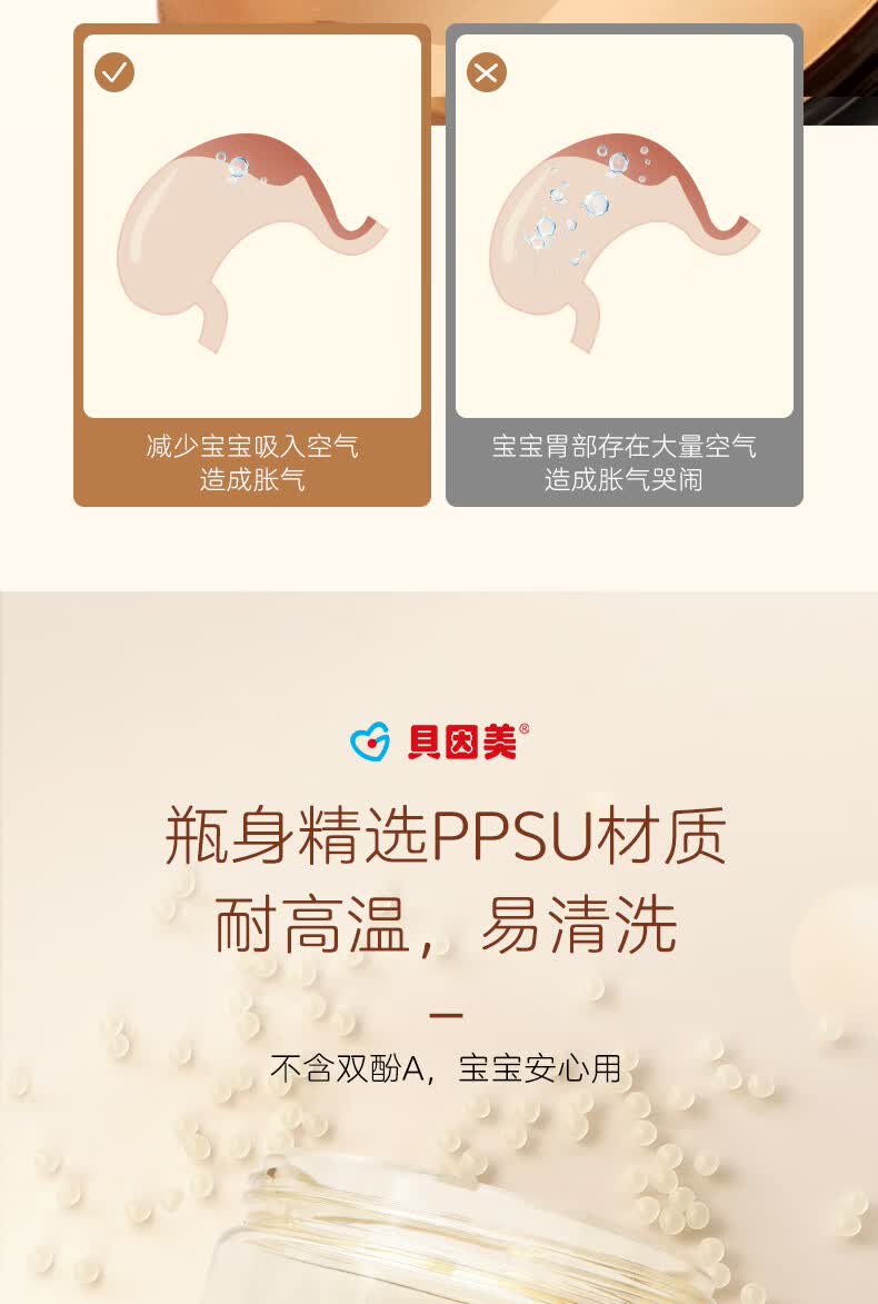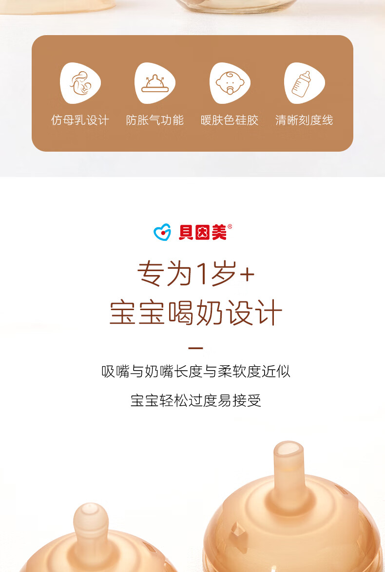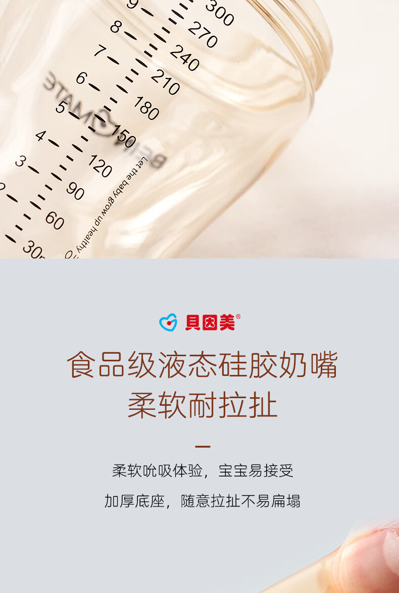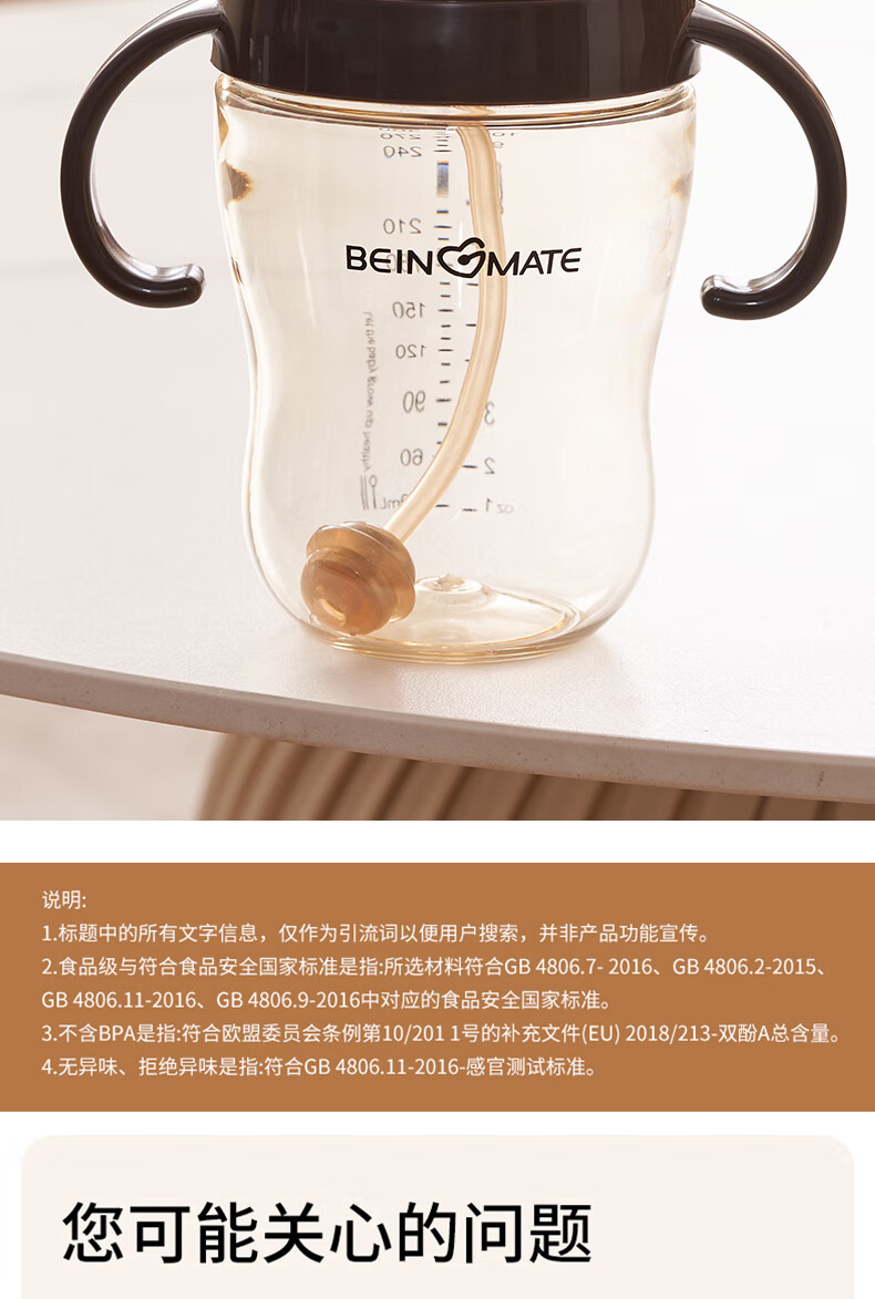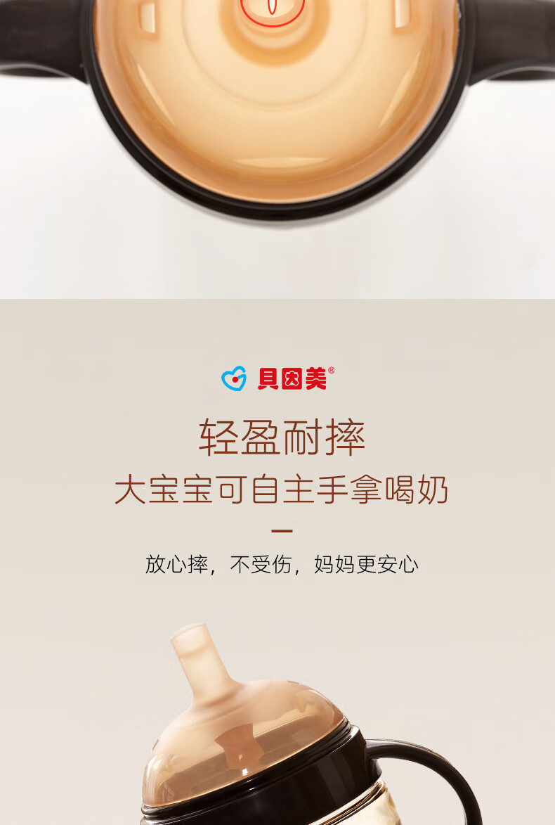 贝因美大宝宝吸管奶瓶婴儿PPSU断奶奶瓶一岁以上12月+双手柄重力球300ml