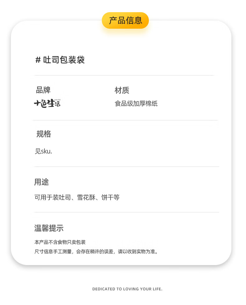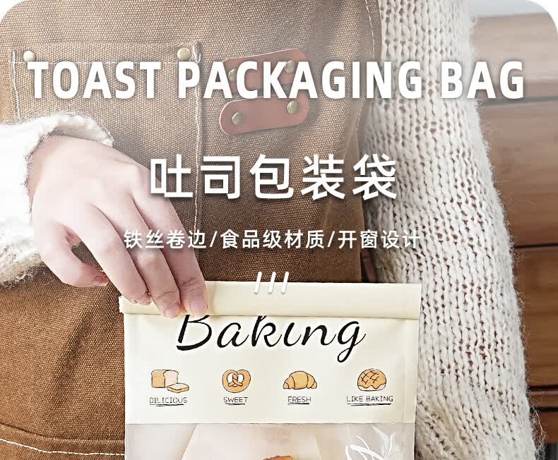十色生活吐司袋 卷边面包袋烘焙甜品收纳袋露营饼干点心包装袋大号10个装