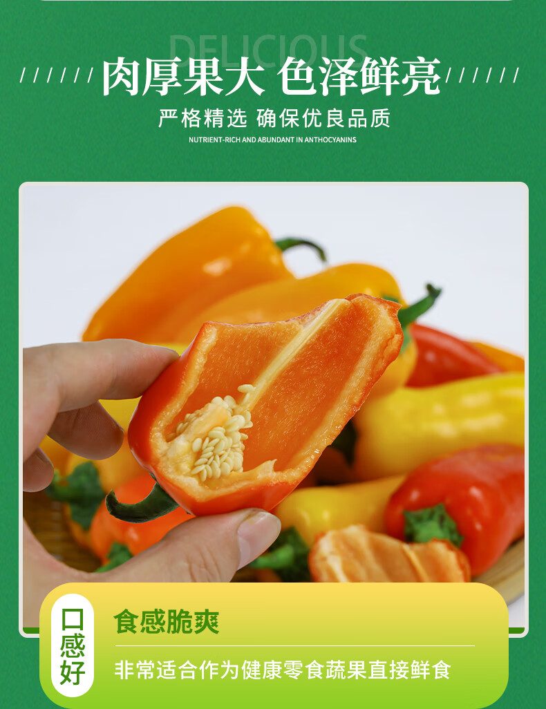 新鲜山东红黄水果彩椒适合生吃低卡健身沙拉水果甜彩椒彩椒 250g净重精品水果椒30-60g