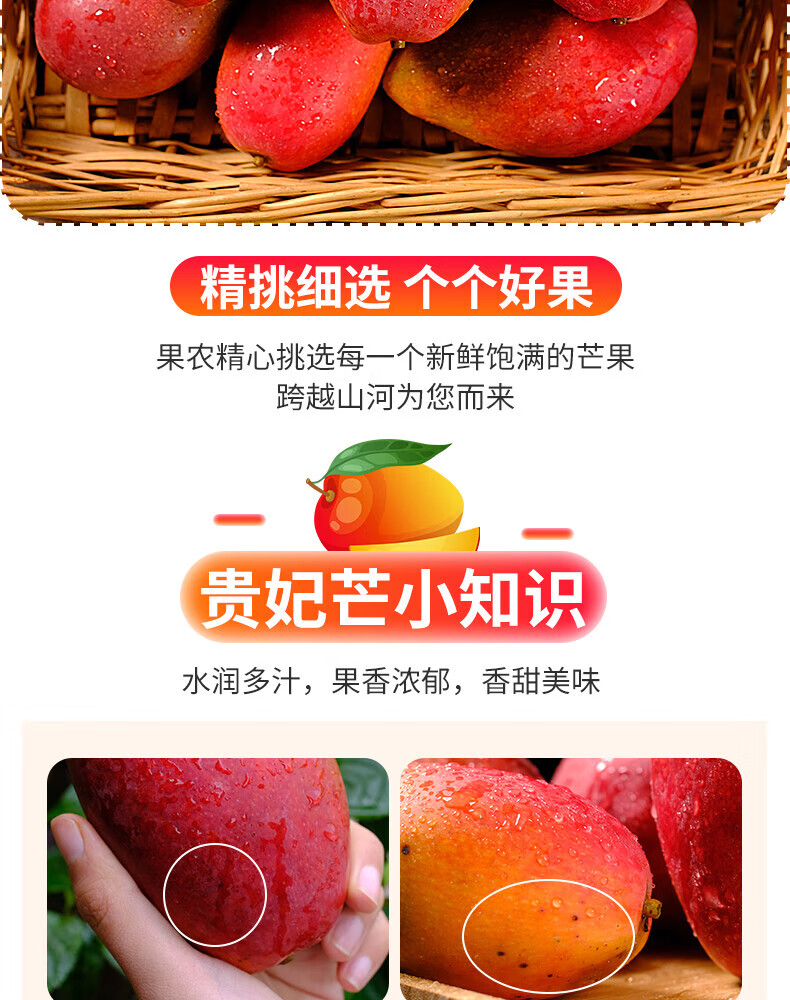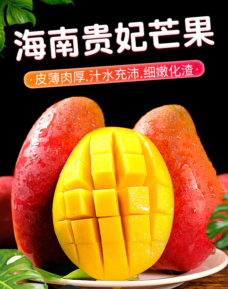 京蚨鲜海南三亚贵妃芒果新鲜水果礼盒当季现摘红金龙 带箱9.5-10斤中果【100-150克】净重9斤