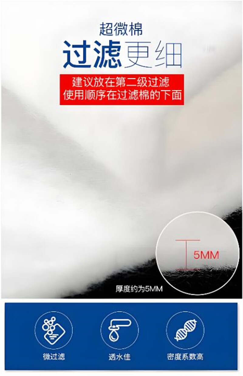 鱼缸过滤棉高密度加厚羊绒棉过滤棉水族箱净水滤棉拦截手撕白棉 30*220 【3片】250克加厚过滤棉