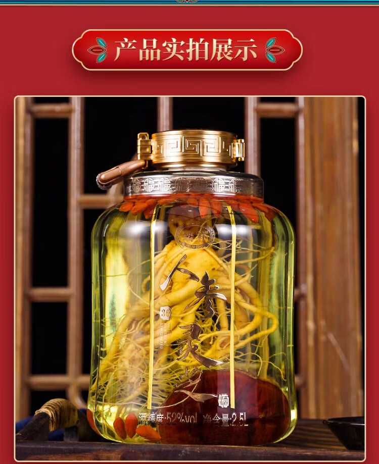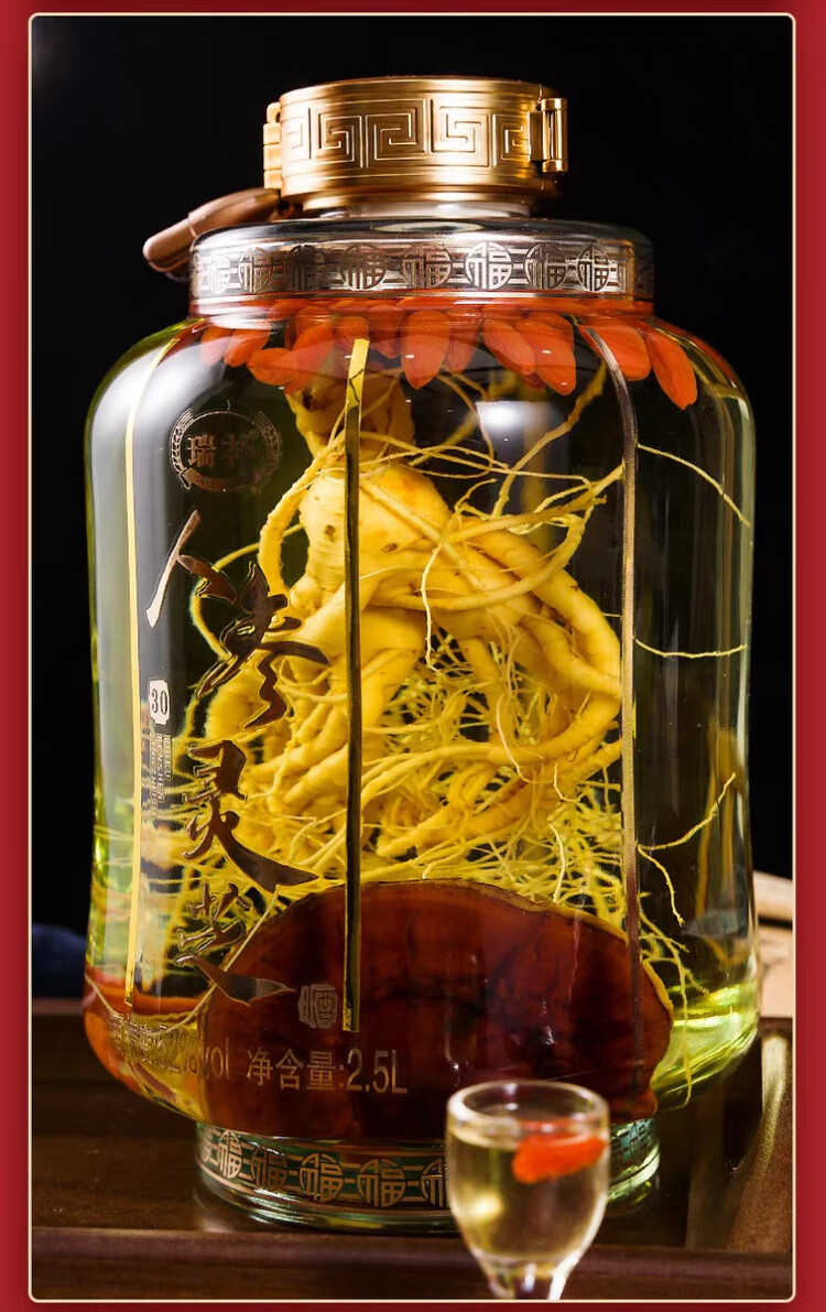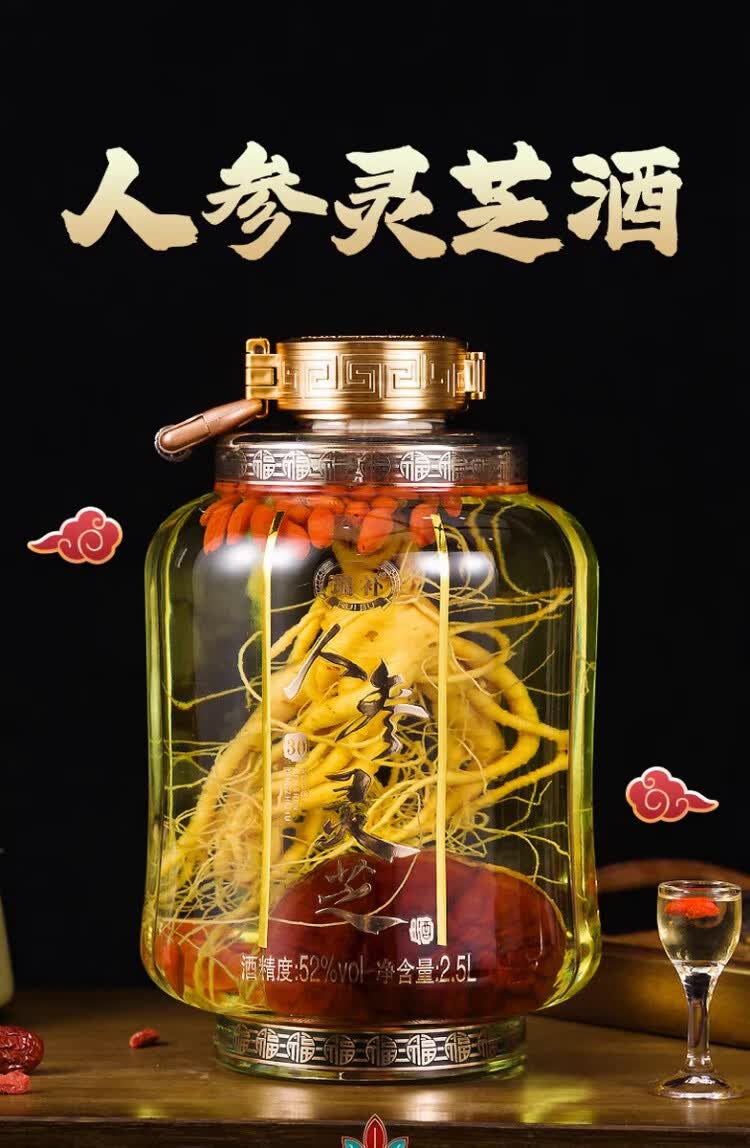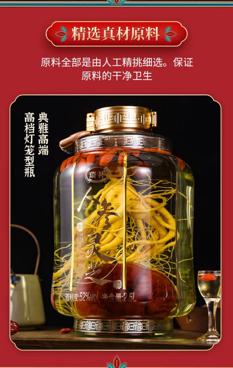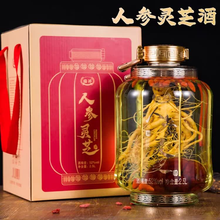 瑞补灵芝酒大坛礼盒装人参灵芝酒52度2500毫升大人参酒坛装人参枸杞酒 52度 2500mL 1坛 五斤礼盒装灵芝酒
