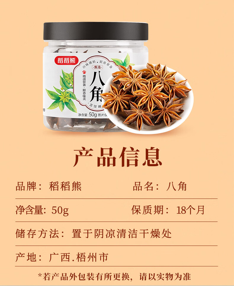 稻稻熊八角50g罐装 广西大红大料 炖肉卤肉火锅香辛料厨房调料 不熏不掺