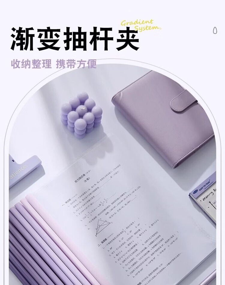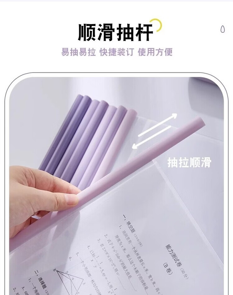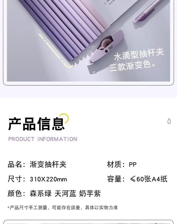 西语(XIYU)A4渐变色透明抽杆夹ins加厚文件夹水滴杆拉杆夹学生试卷夹简历报告夹商务会议资料收纳夹办公用品 【15个装】冰川蓝+芋泥紫+森林绿
