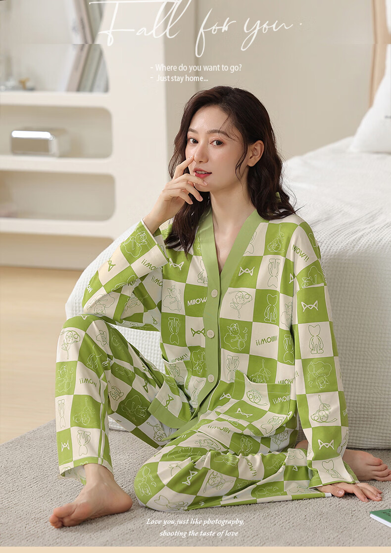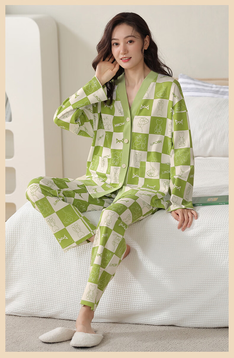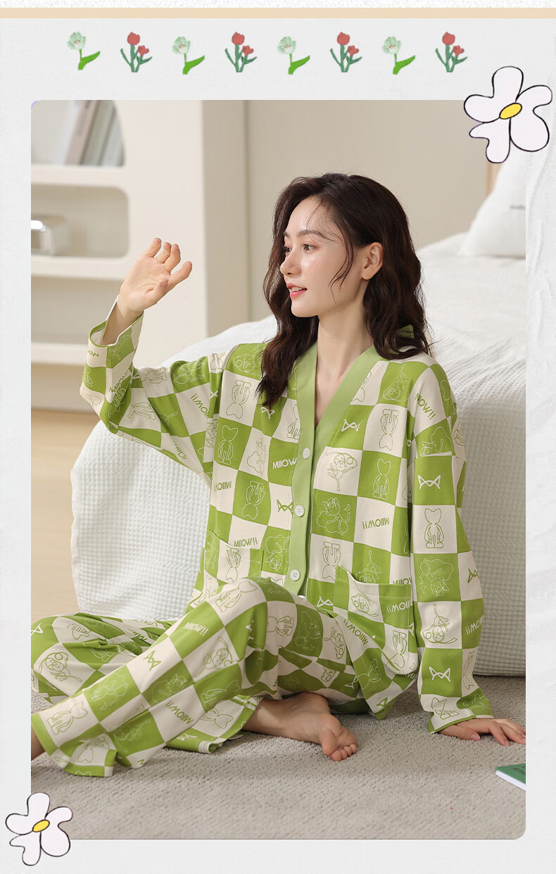 芬腾可安(FENTENGCARE)【K】纯棉睡衣女士春秋款长袖长裤开衫家居服睡衣可外穿 88106 2XL