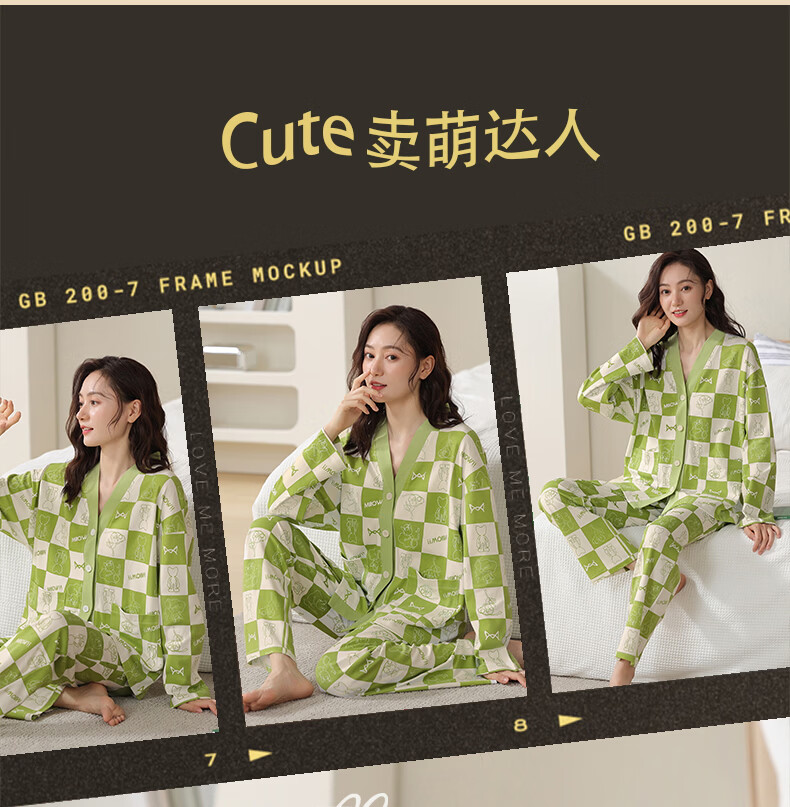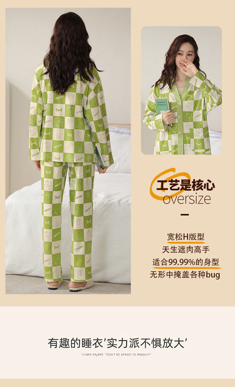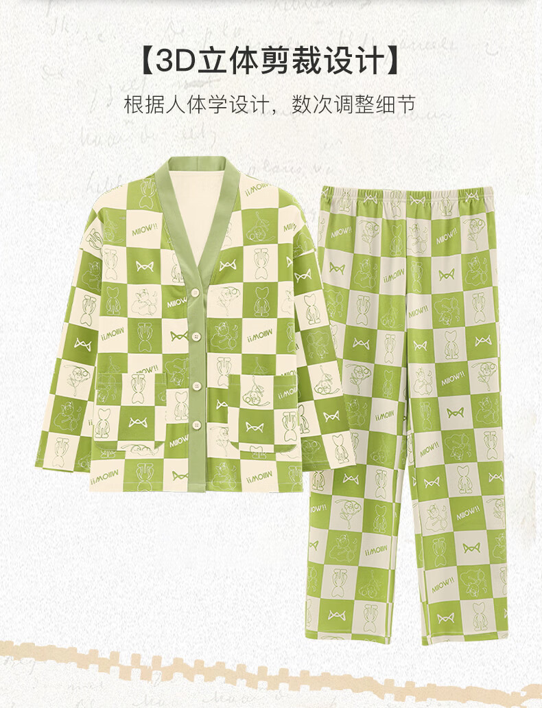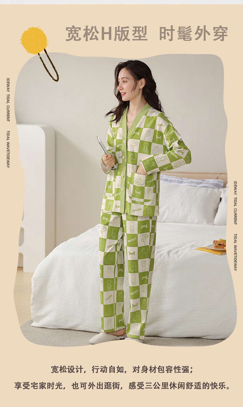 芬腾可安(FENTENGCARE)【K】纯棉睡衣女士春秋款长袖长裤开衫家居服睡衣可外穿 88106 2XL