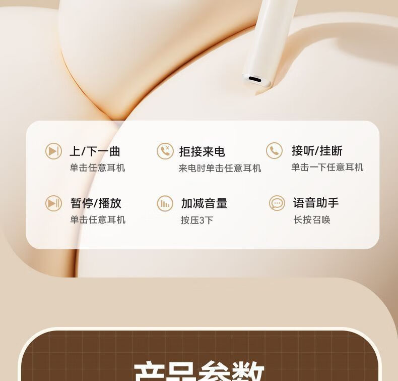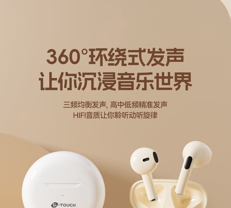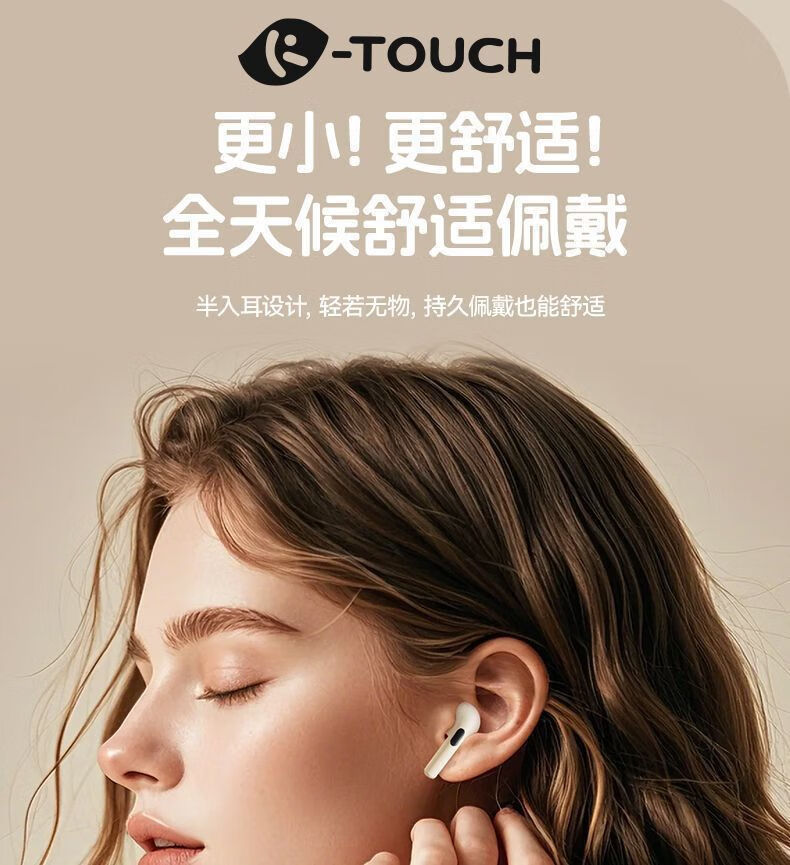 天语(K-Touch)真无线蓝牙耳机2026新款超长续航入耳式降噪耳塞运动游戏电竞低延迟高解析音质苹果安卓手机通用 柔光肤