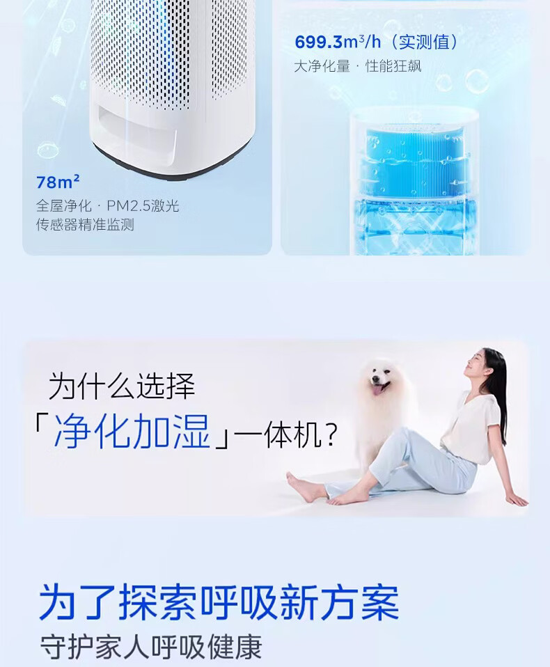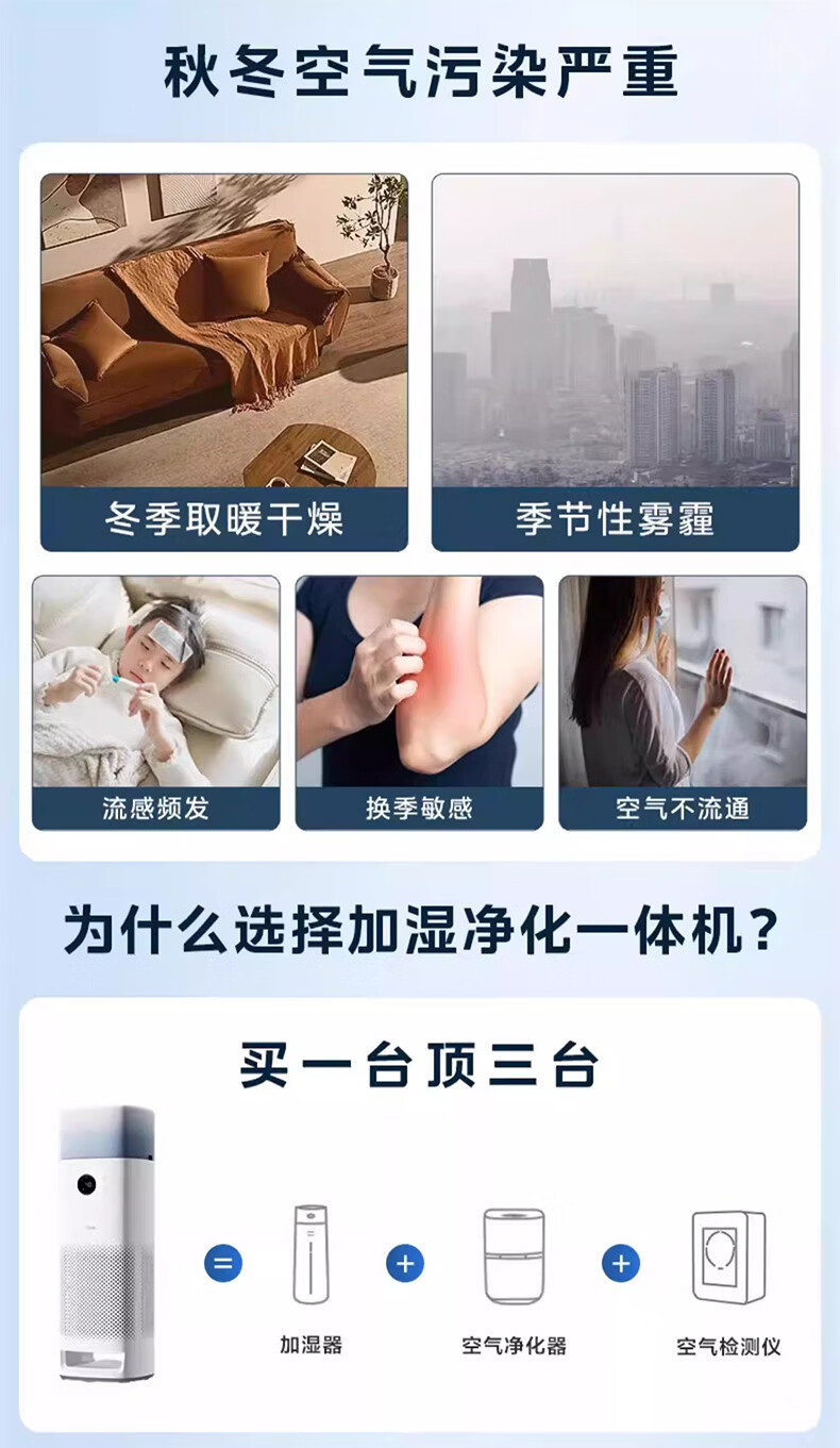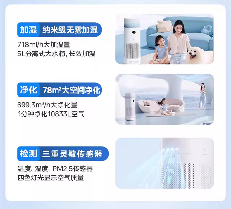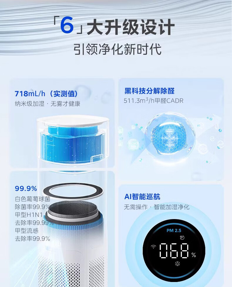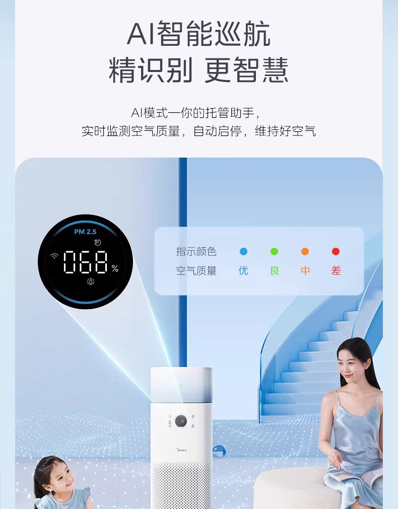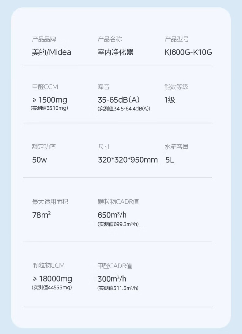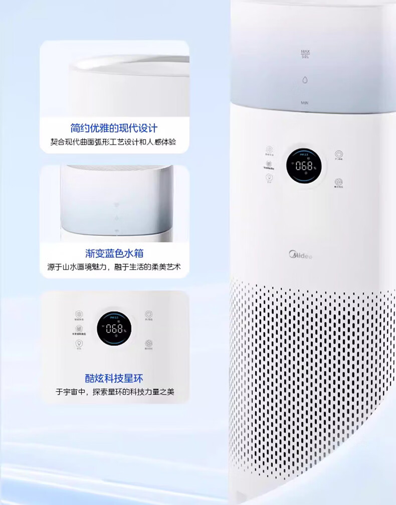 美的(Midea)美的空气净化器K10G无雾加湿一体全效家用除醛森林家去异味除敏KJ600G-K10G