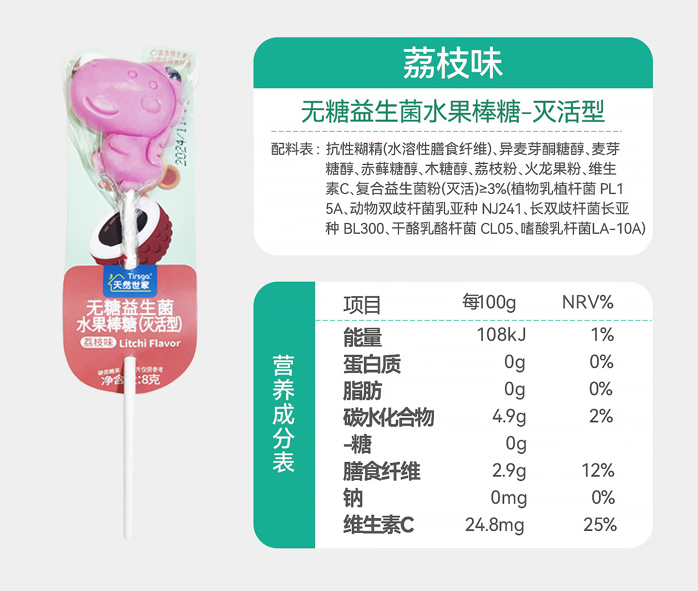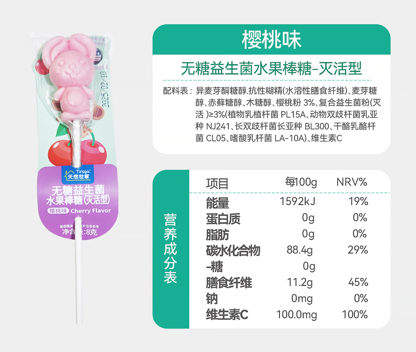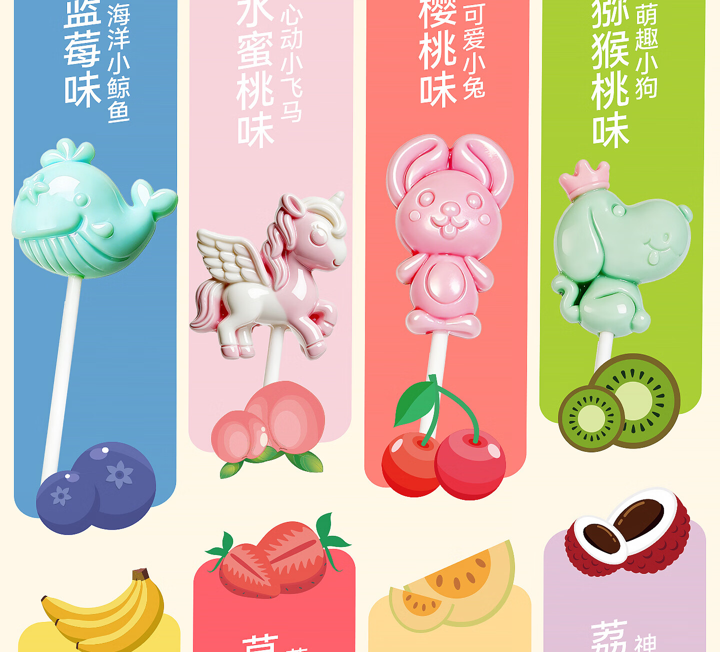 天然世家棒棒糖益生菌水果棒糖无糖木糖醇卡通糖果送宝宝儿童辅食电子食谱 16支【各口味2支】