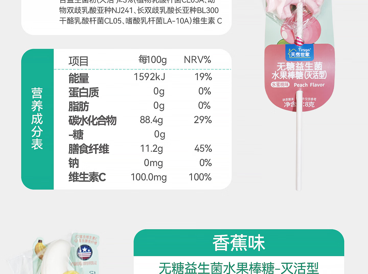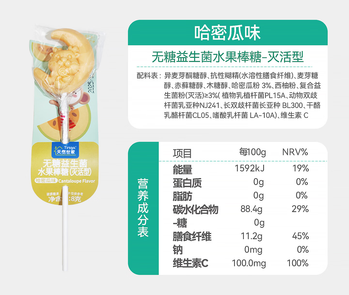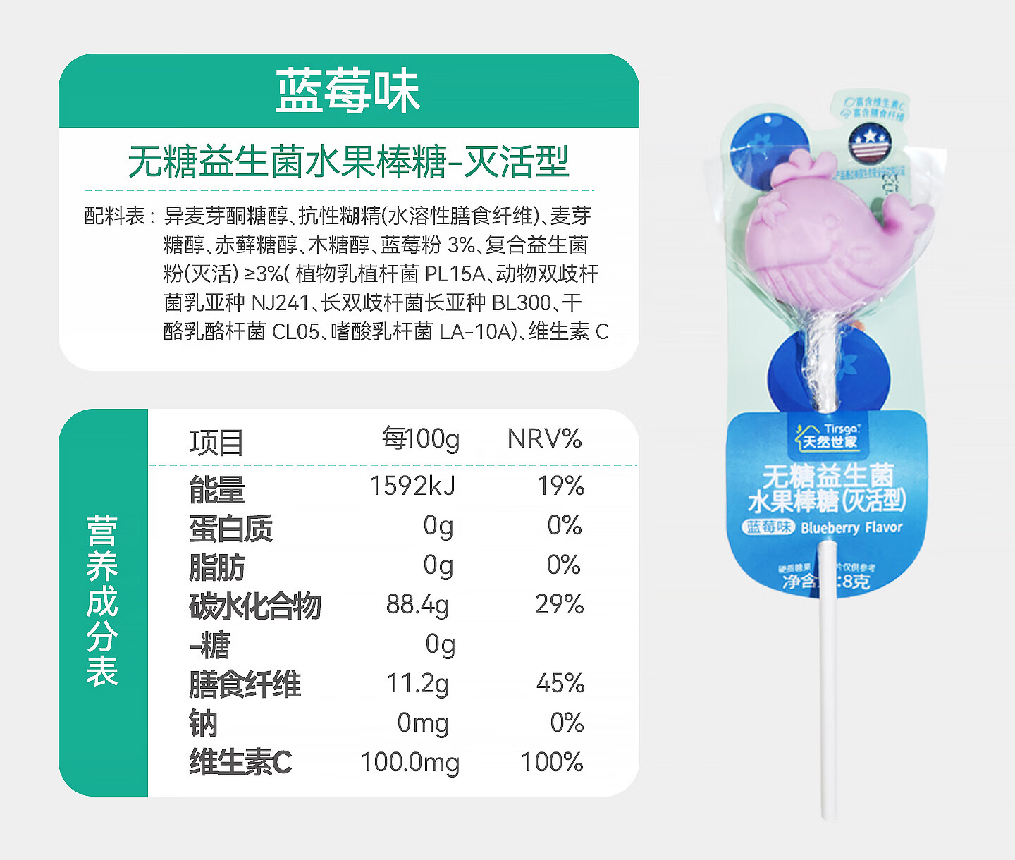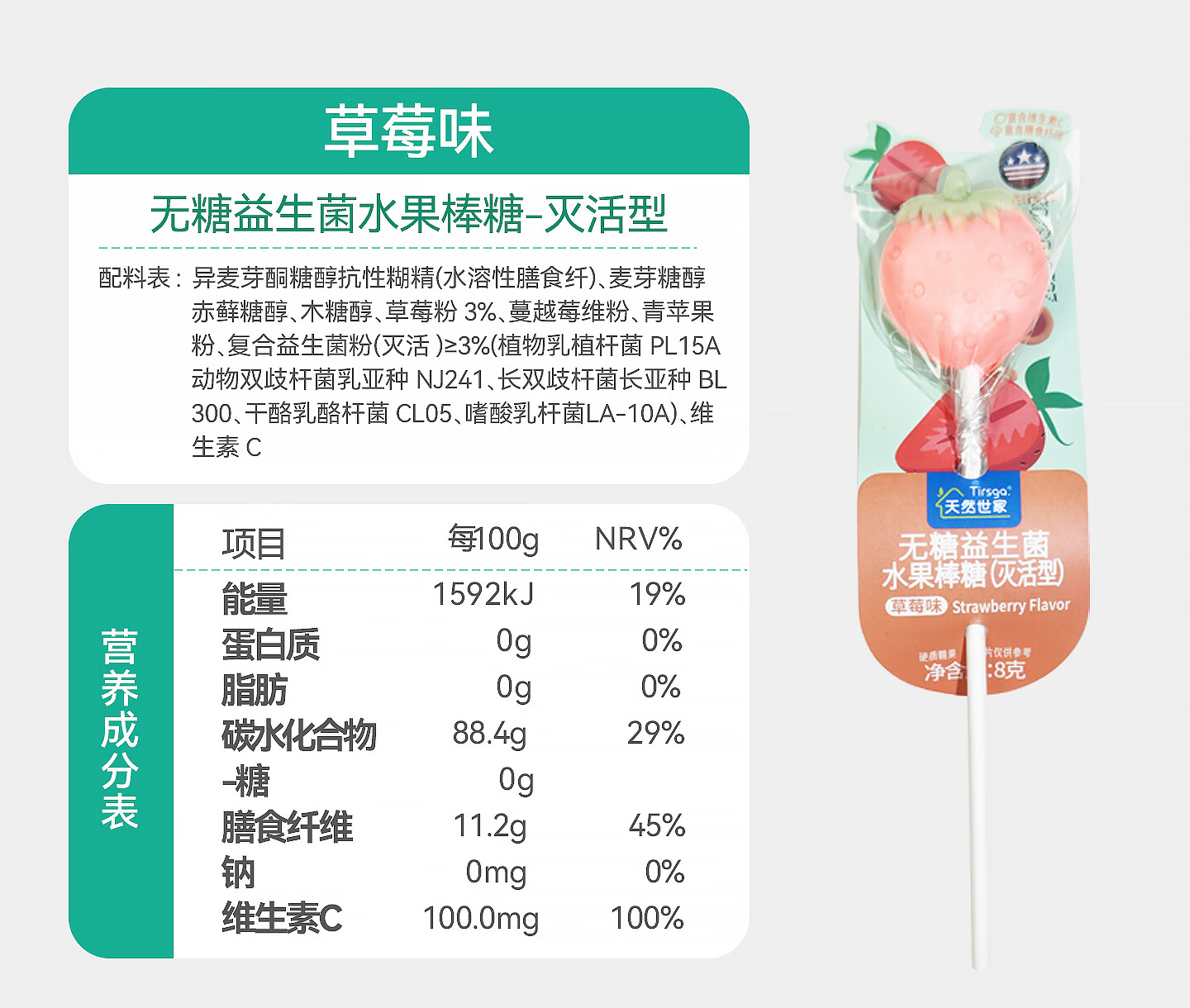 天然世家棒棒糖益生菌水果棒糖无糖木糖醇卡通糖果送宝宝儿童辅食电子食谱 16支【各口味2支】