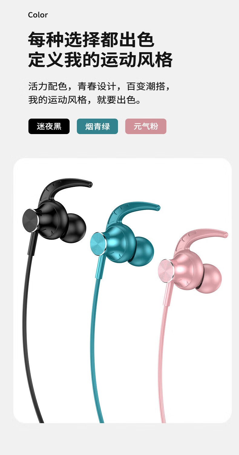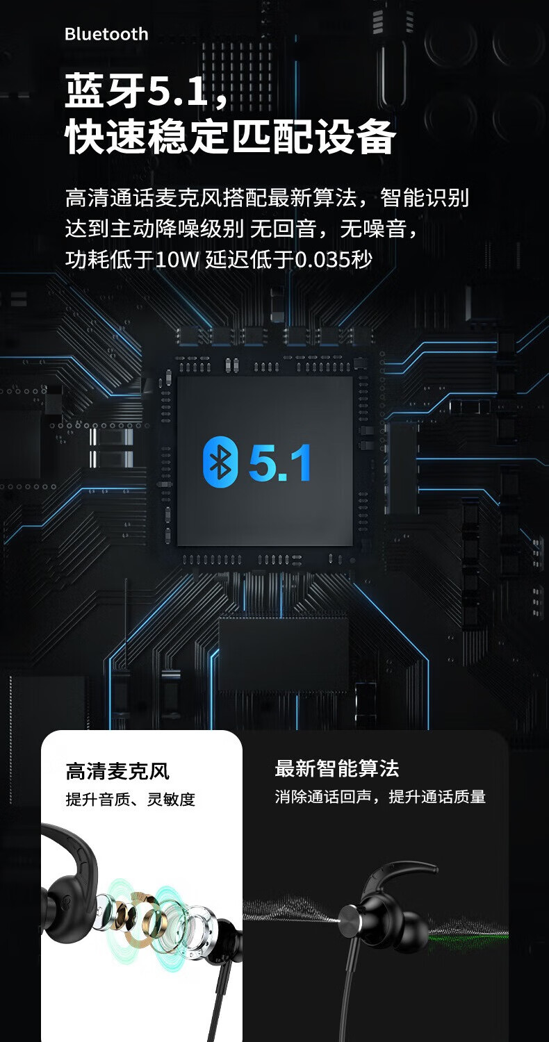 金声动音播町无线颈挂式运动蓝牙耳机通用耳机真立体插卡长续航蓝牙 粉色 5.1