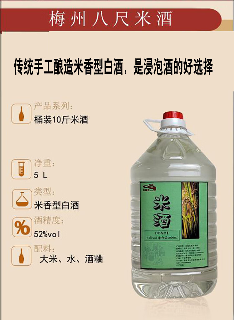 客都香米酒52度米香型柴火传统工艺纯粮食酿造泡酒专用五斤装酒桶装 52%vol 5000mL 1瓶 10斤装