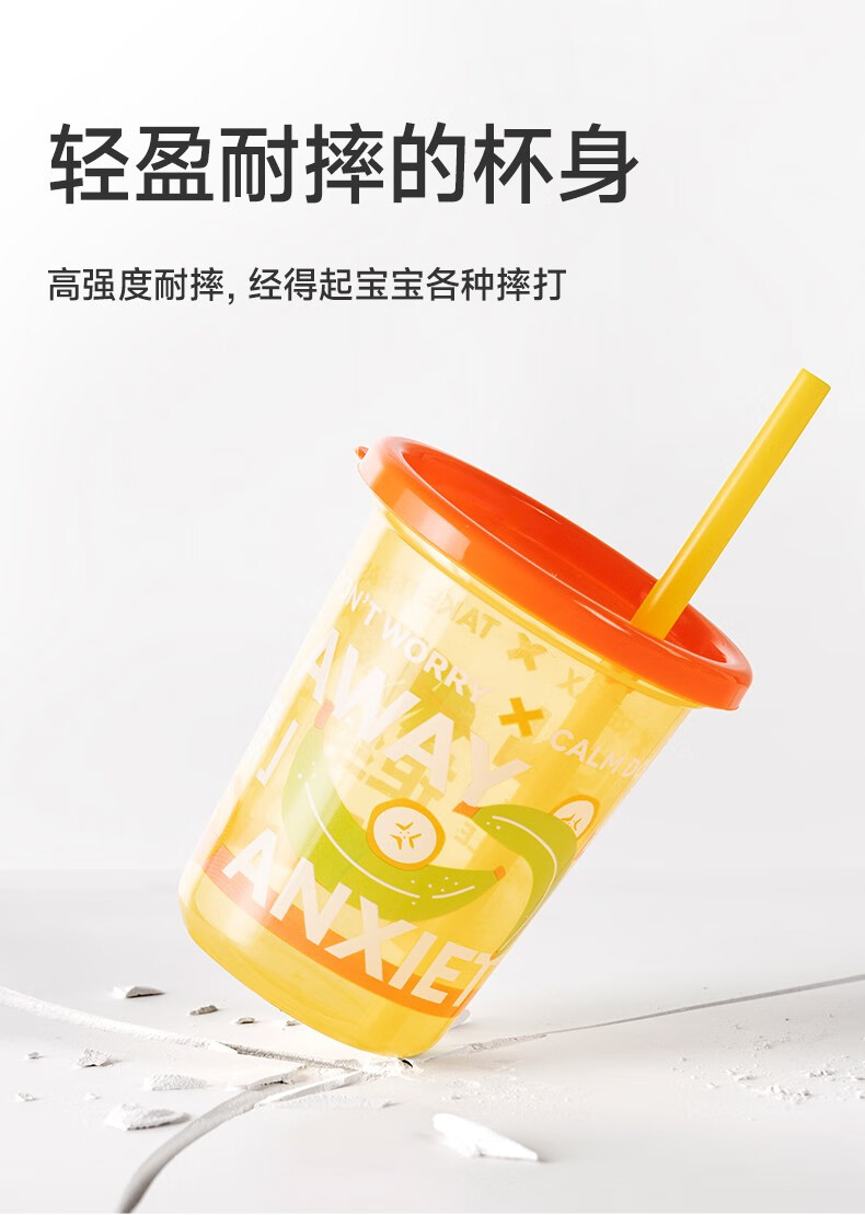 伊斯卡尔(EASYCare)宽口径奶瓶 吸管防摔奶瓶 婴儿宝宝PPSU奶瓶学饮杯手柄重力球吸管 橘黄橙- 300ml 12月+ 【V号奶嘴】