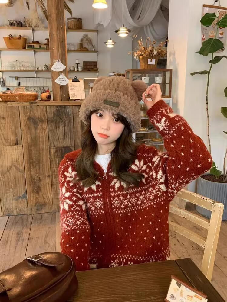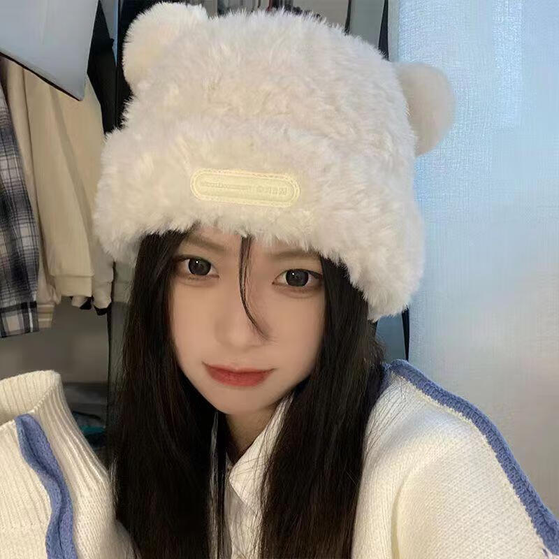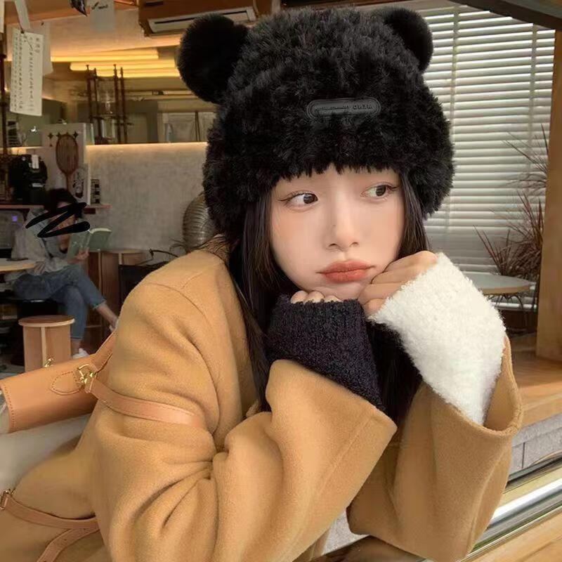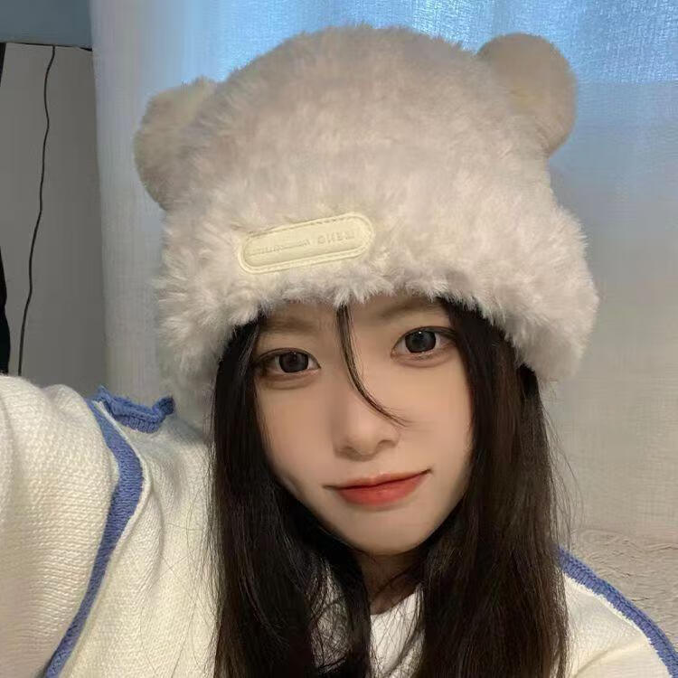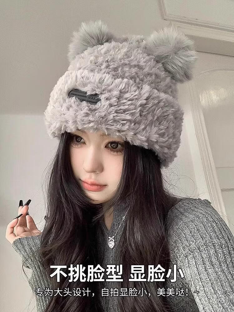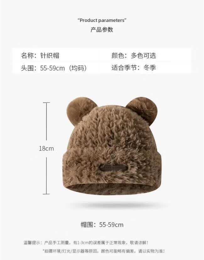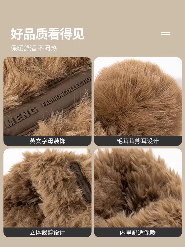 |秋冬毛绒帽子百搭保暖防寒套头护耳小熊帽显脸小时尚百搭甜美可 驼色 均码