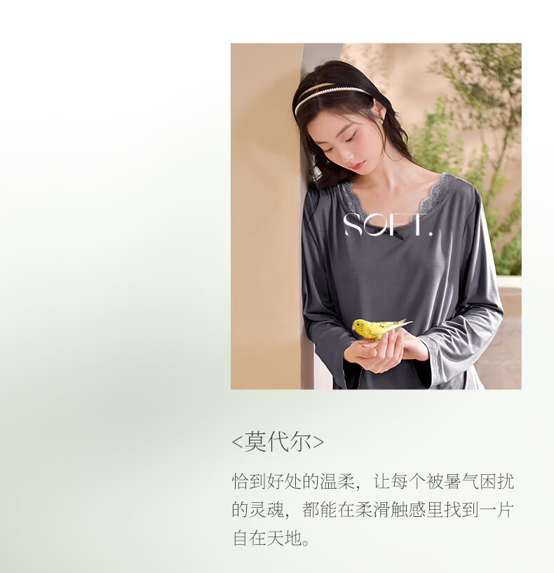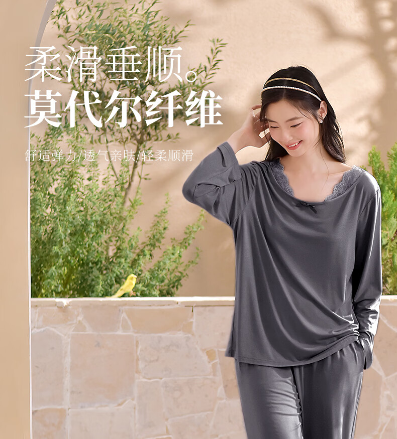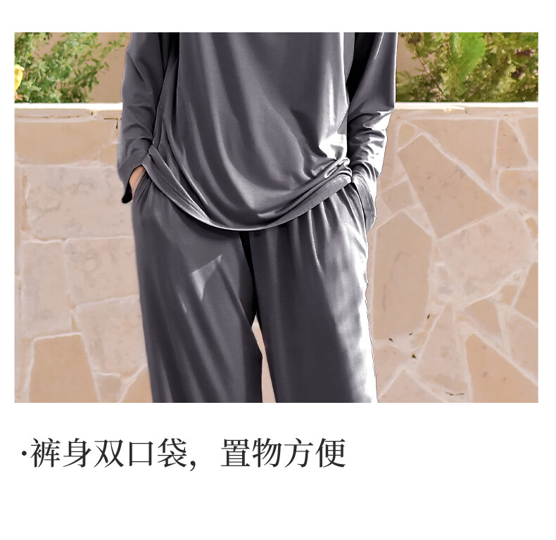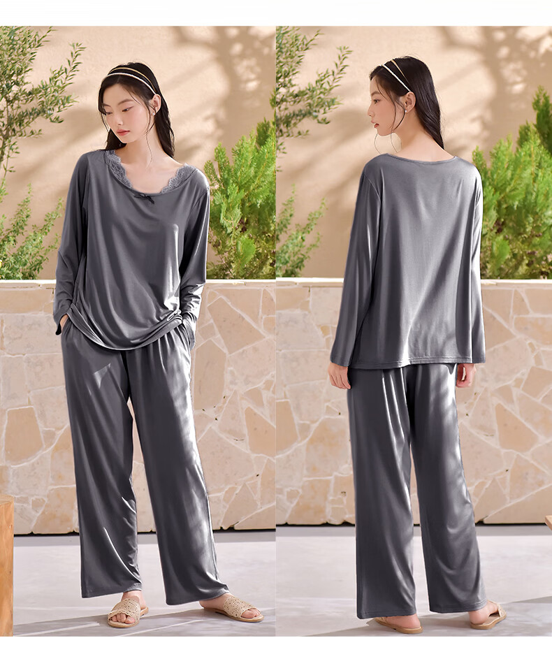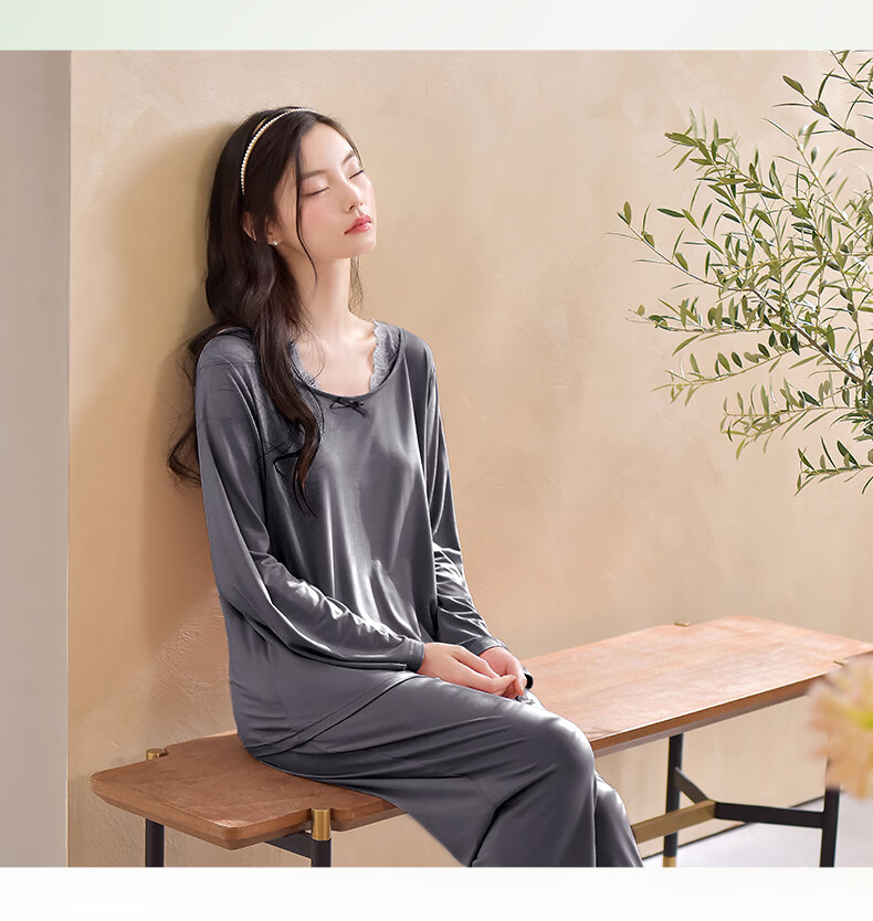 轩靓(XULEN)2026新款睡衣女士春秋款莫代尔长袖高级感冰丝凉感家居服套装 64730暮色灰 L 建议体重100-120斤