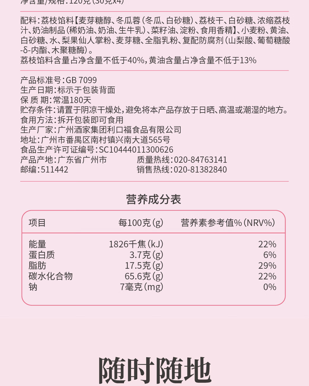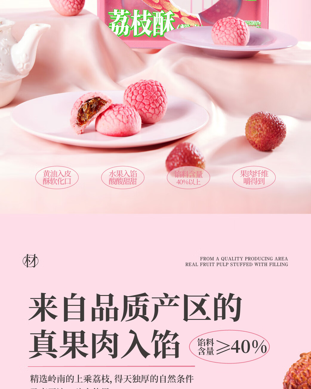 广州酒家 荔枝酥120g 4个装广州特产岭南水果造型糕点休闲零食团购伴手礼
