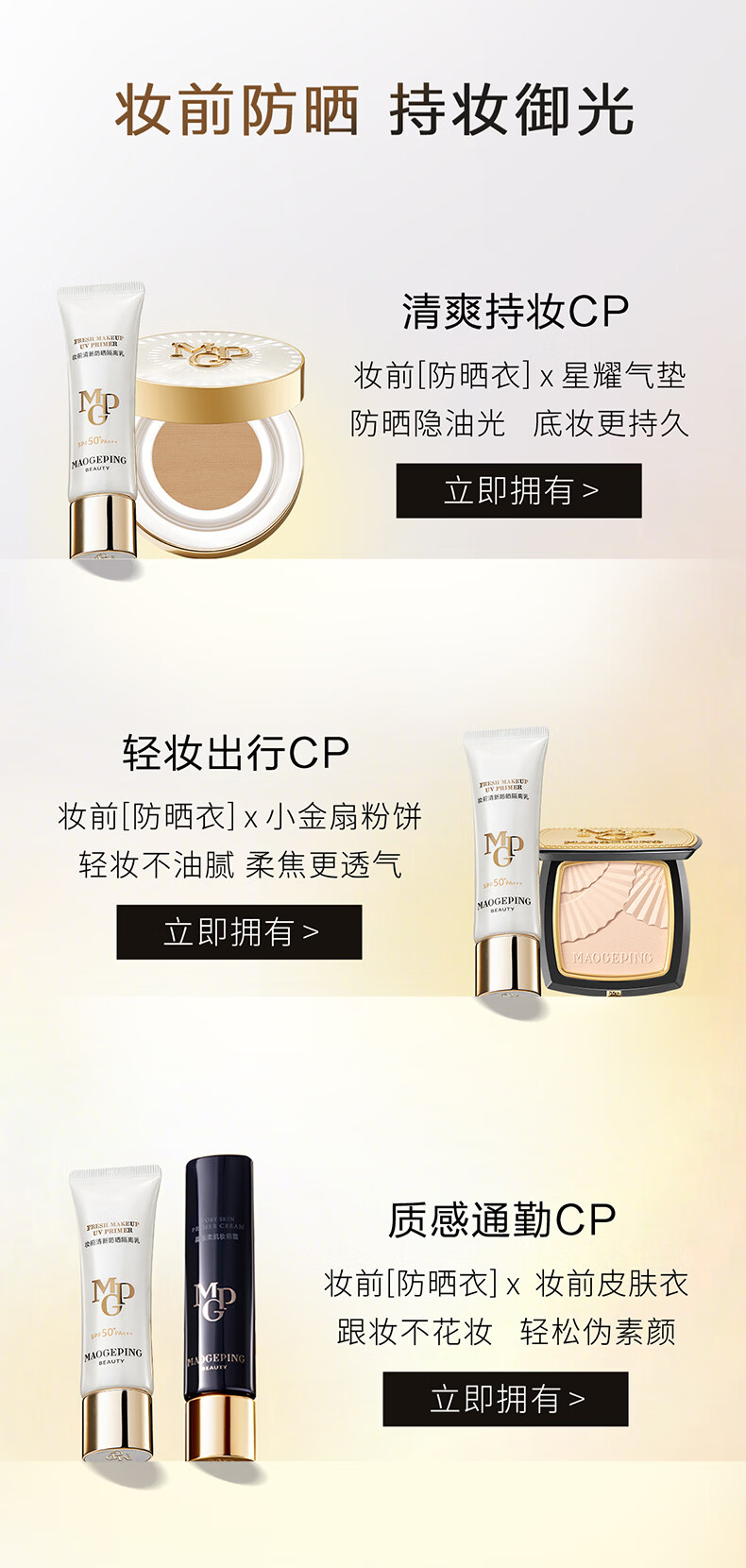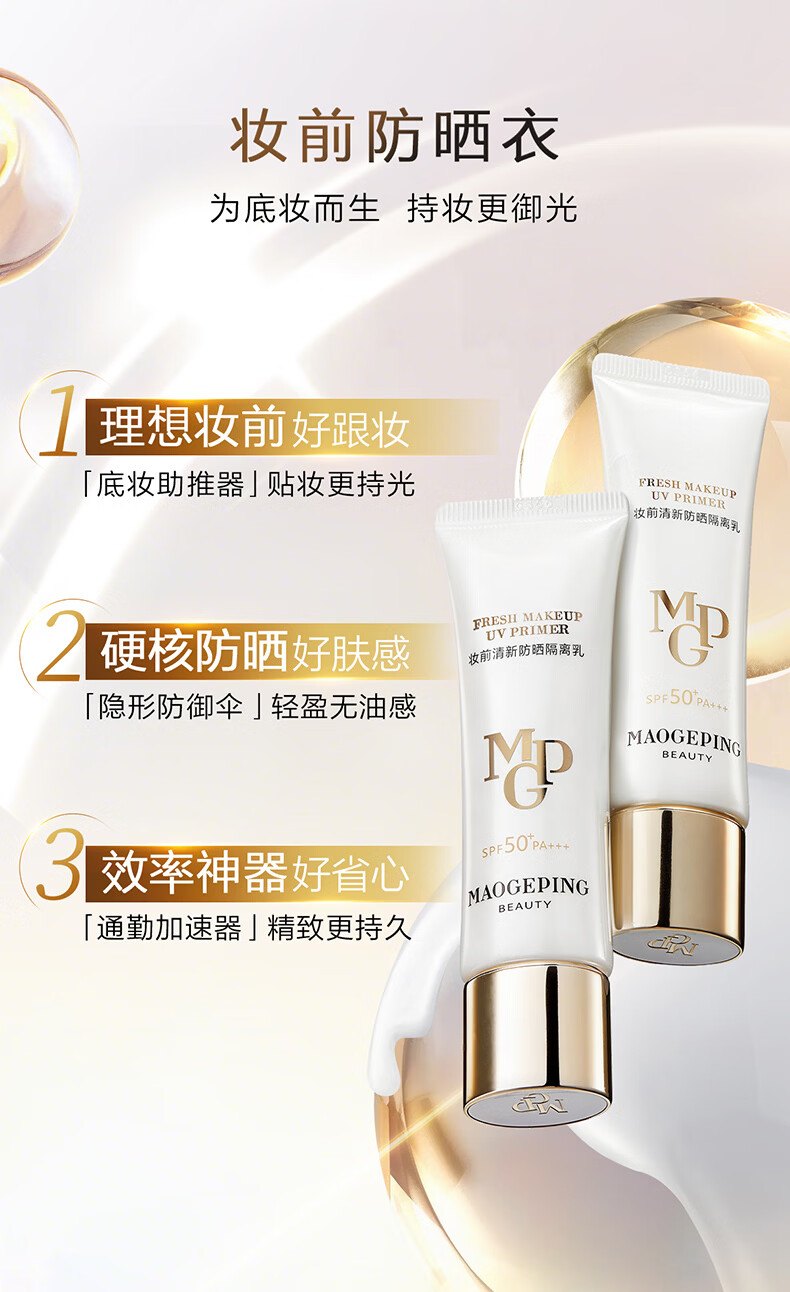 毛戈平妆前防晒隔离乳5ml防晒霜软管版SPF50+试用装母亲节520礼物