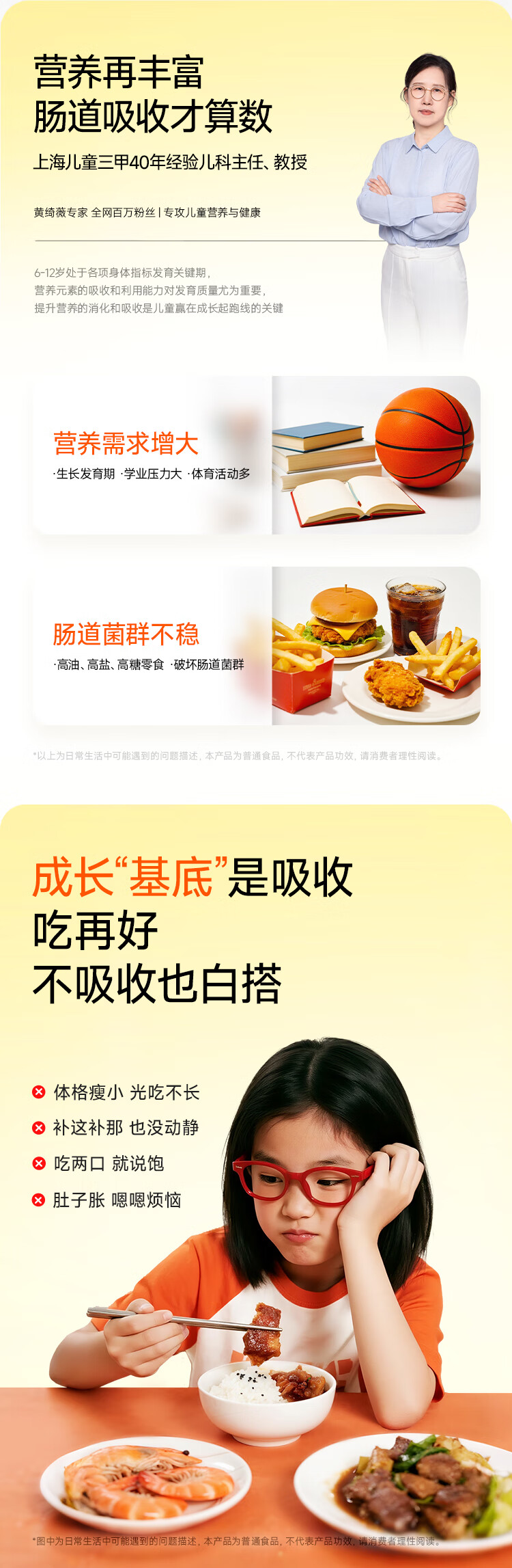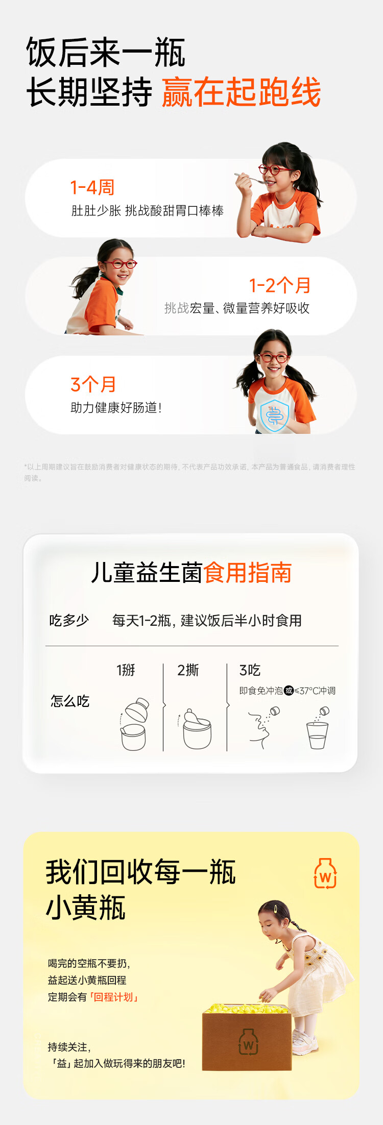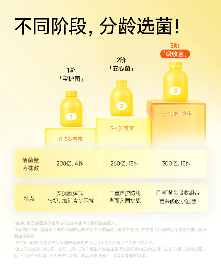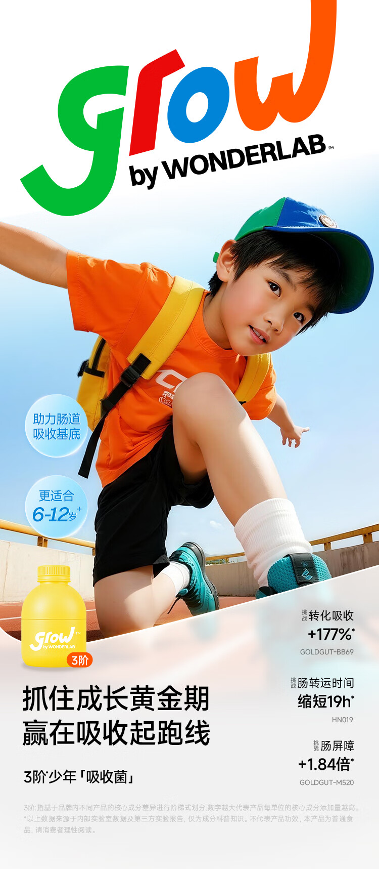 万益蓝grow儿童益生菌小黄瓶3阶益生元肠胃双歧杆300亿少年6-12岁+ 90瓶