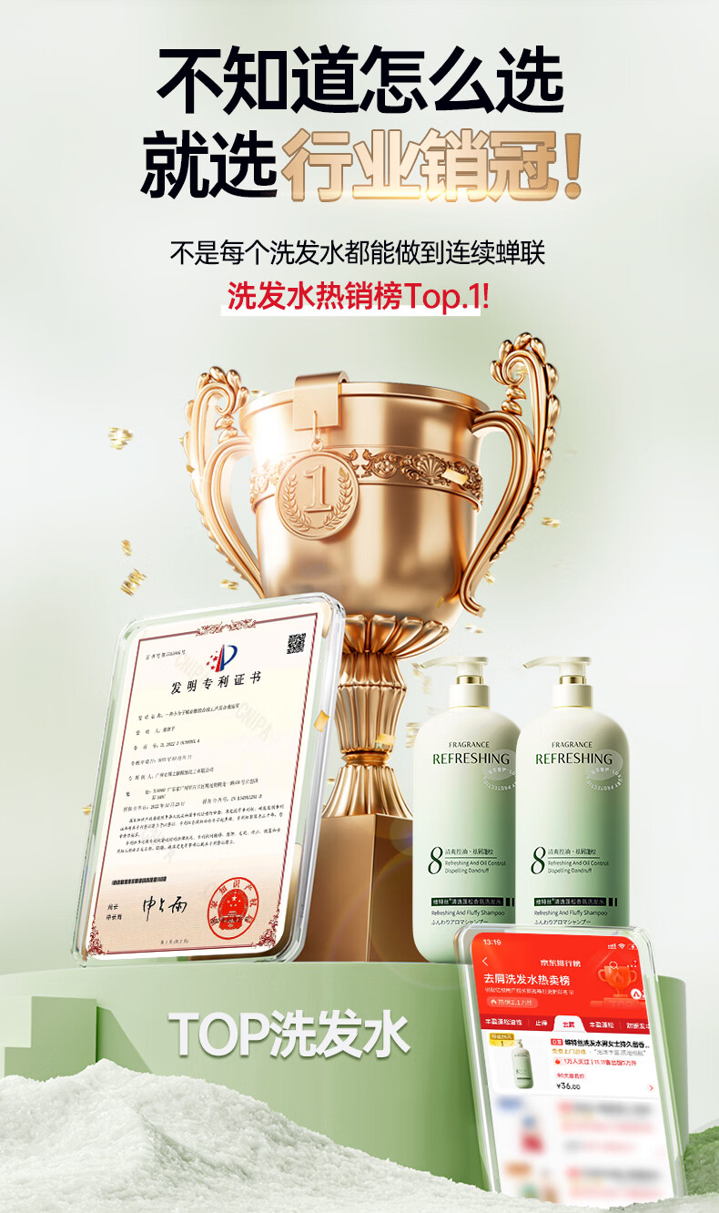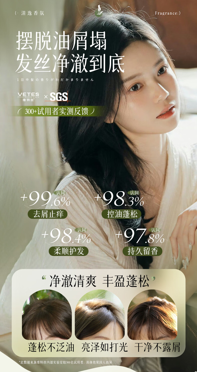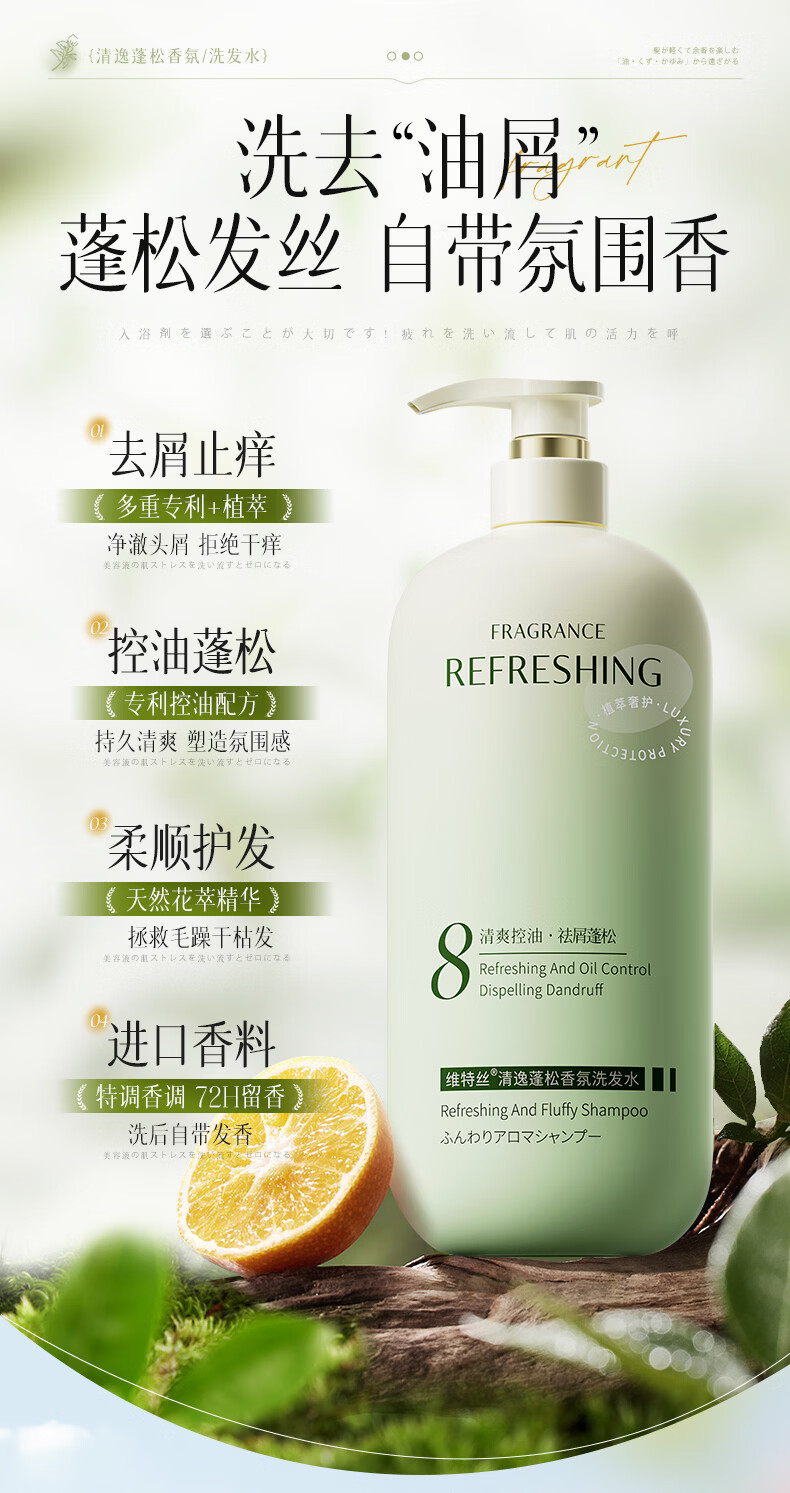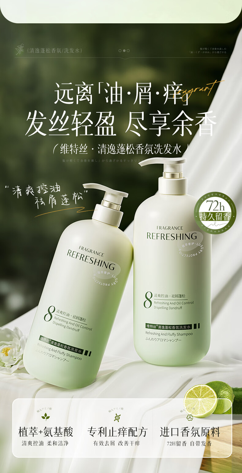 维特丝洗发水男女士专用去屑止痒控油持久蓬松留香洗头膏露金榜第1名