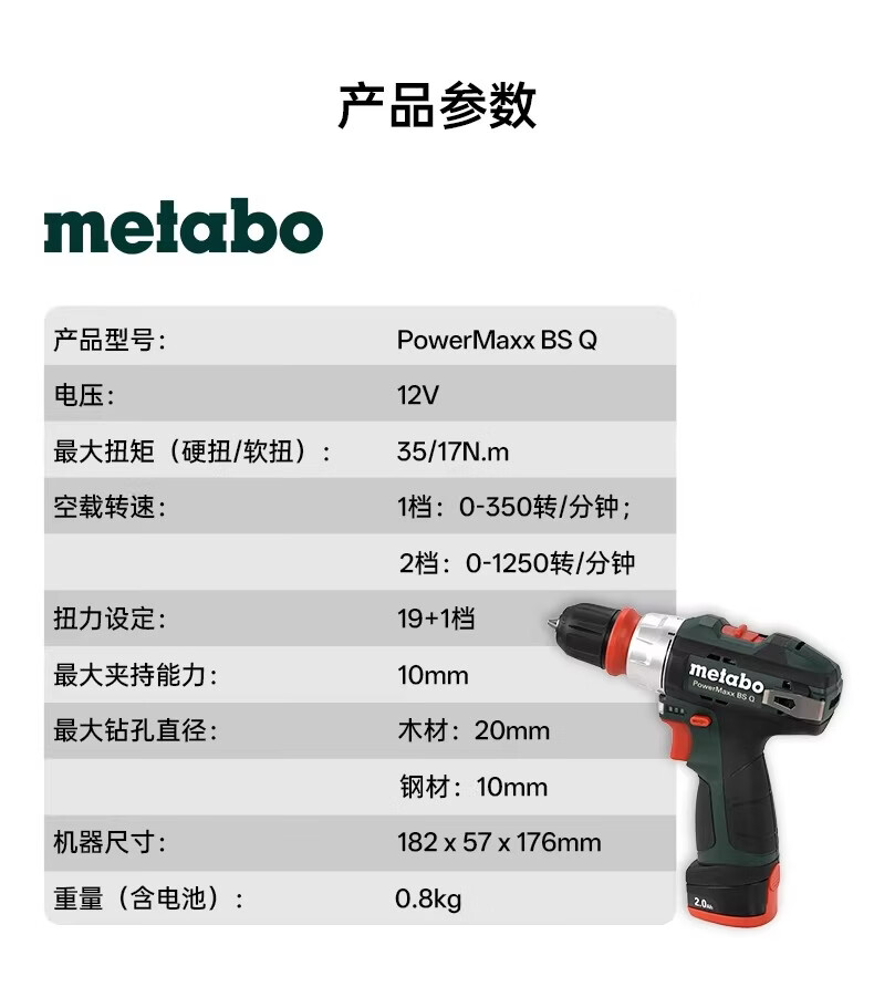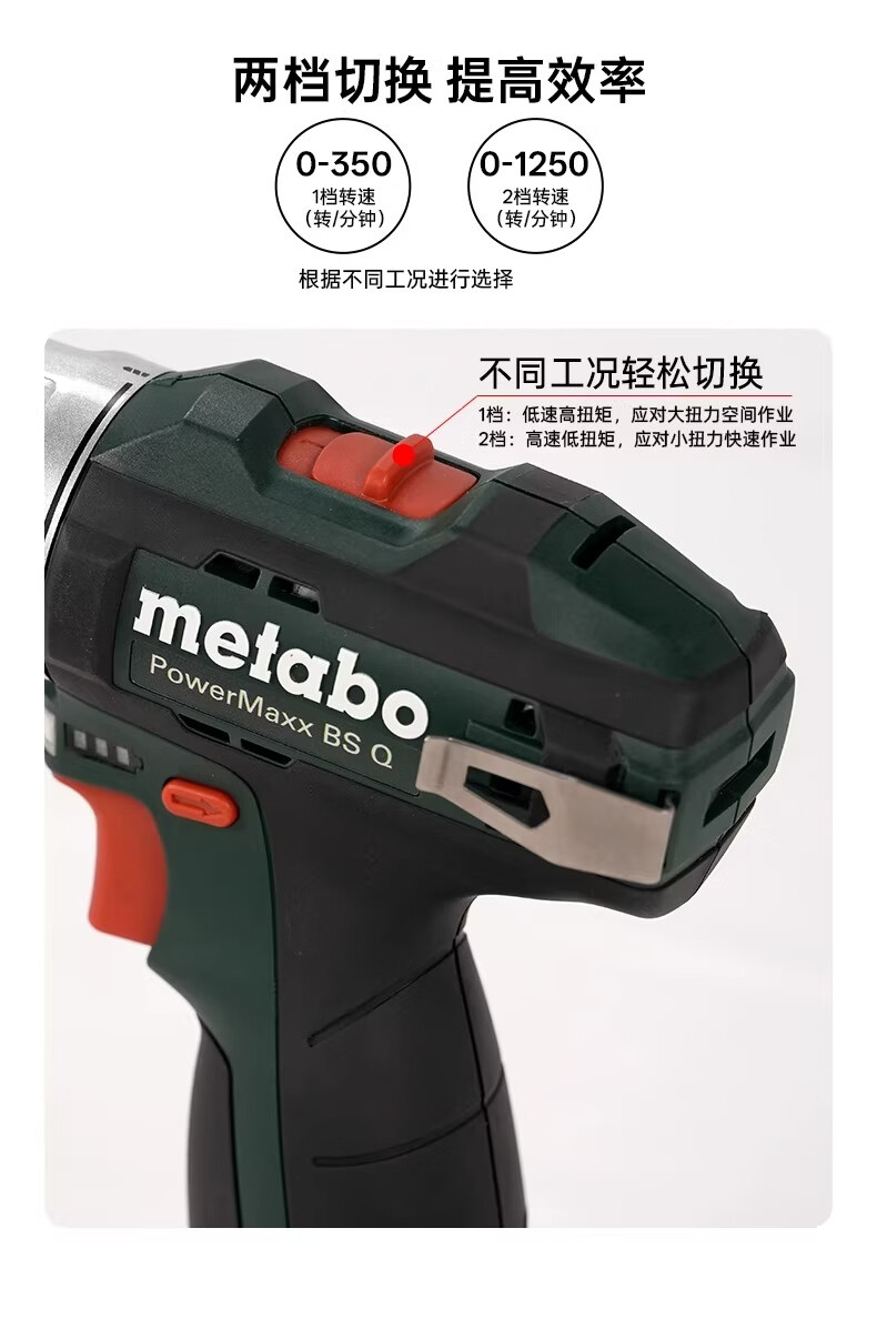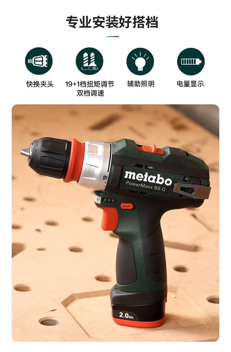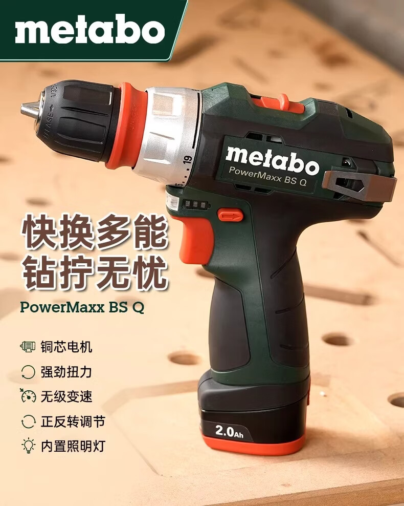 麦太保(Metabao)手电钻12V锂电家用多功能电动螺丝刀充电钻快换起子机BS Q BS Q【12V 2.0 双电标配】