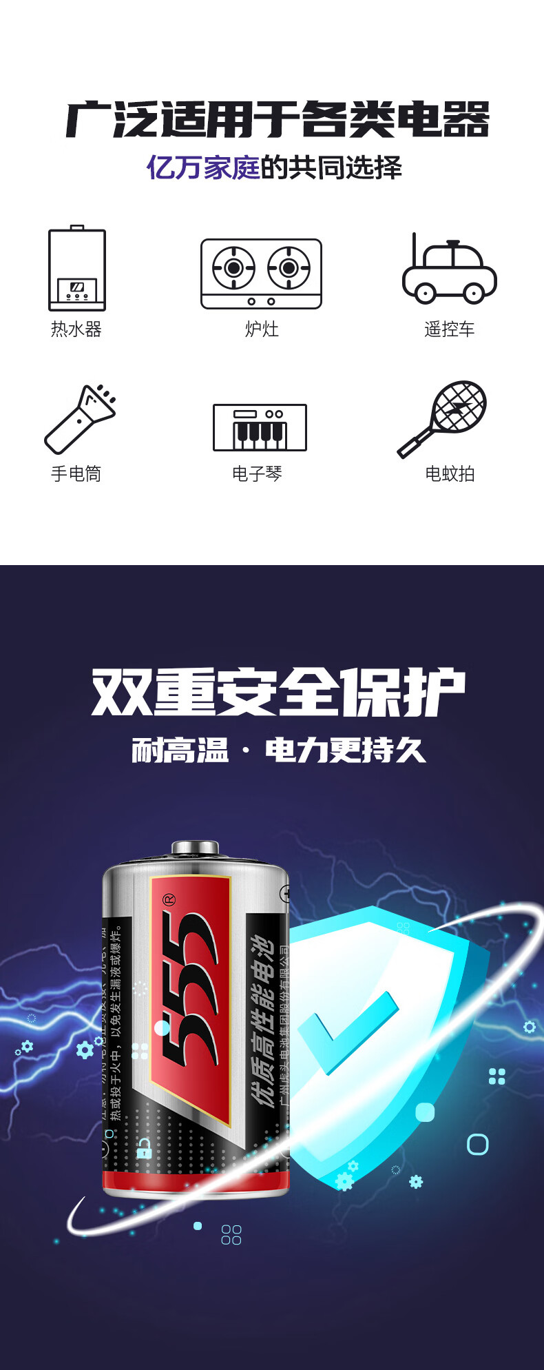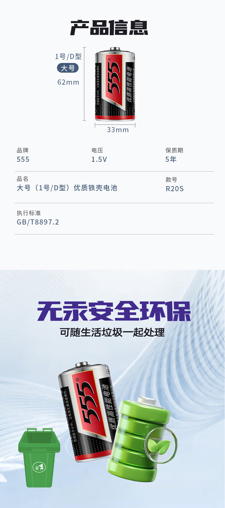 555 电池1号电池大号电池2粒碳性高性能干电池【单件包邮】适用燃气灶/热水器/煤气天然气灶/手电筒
