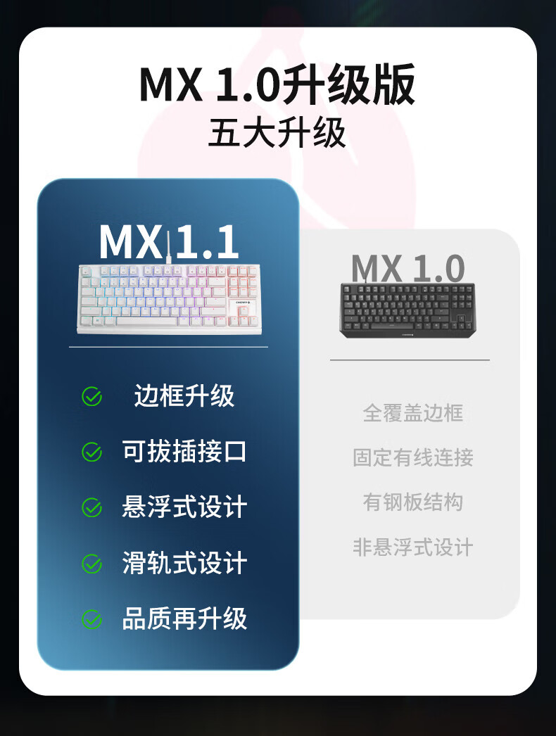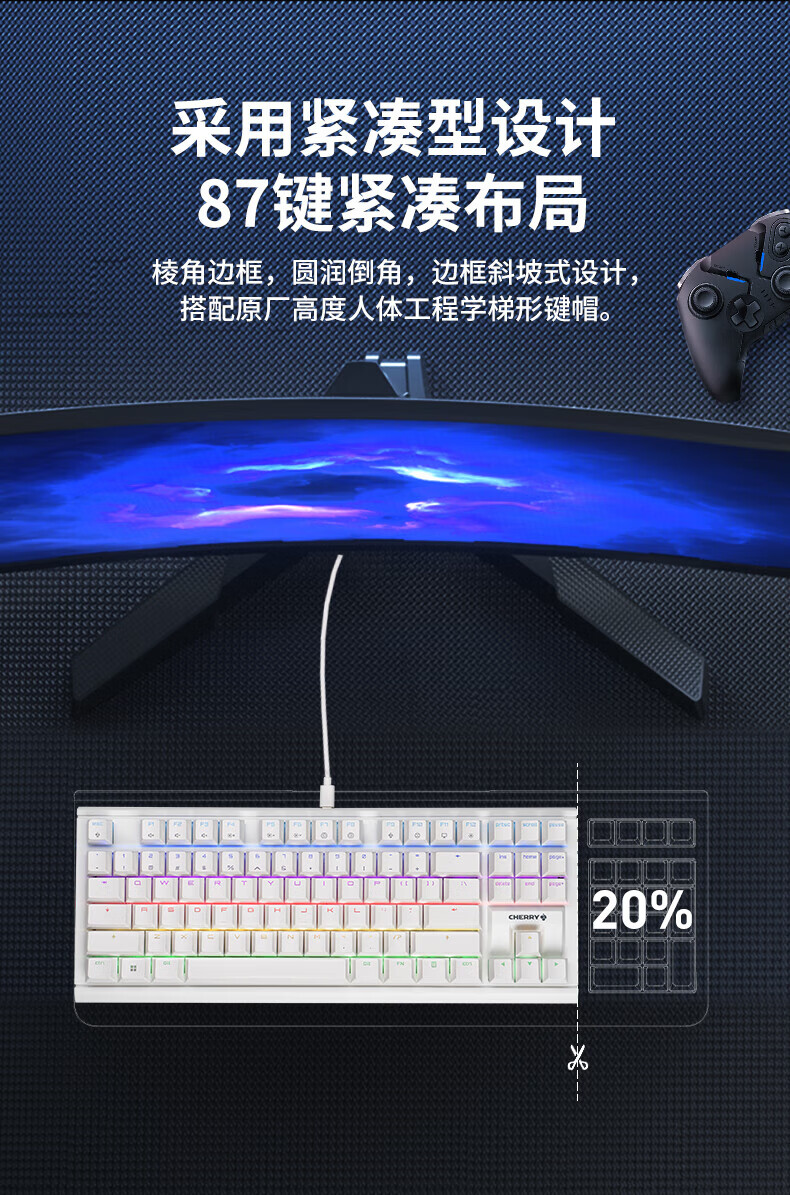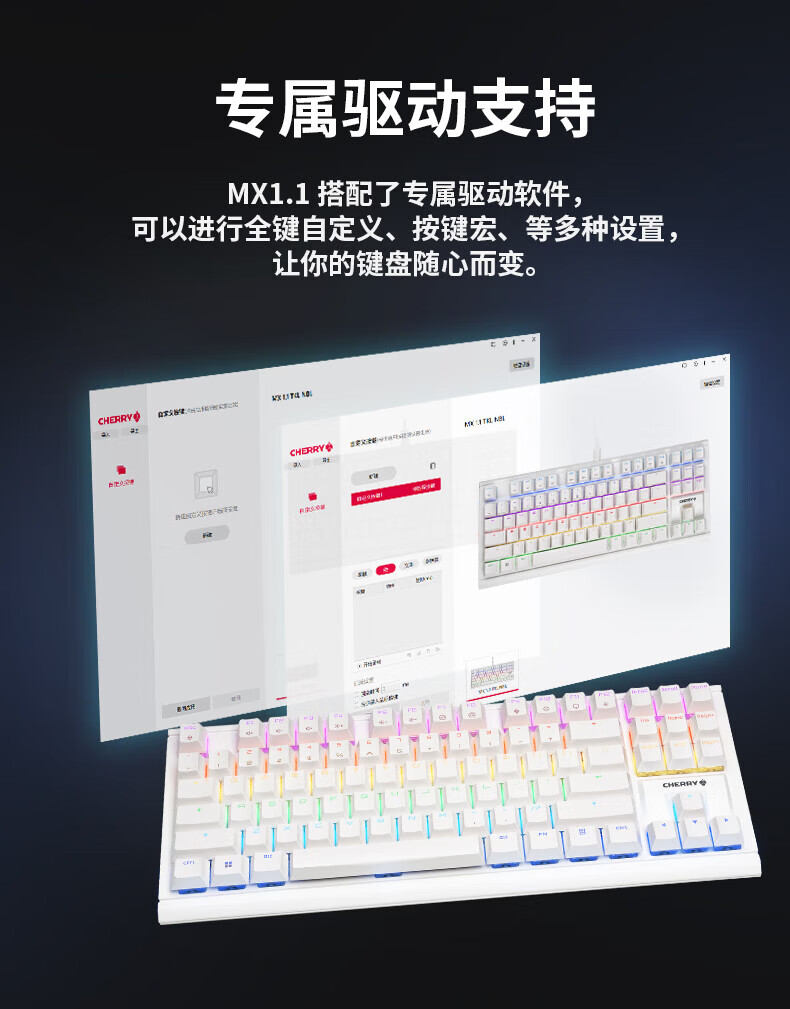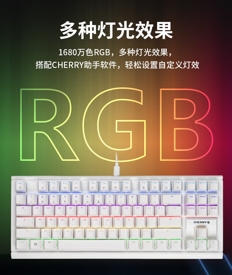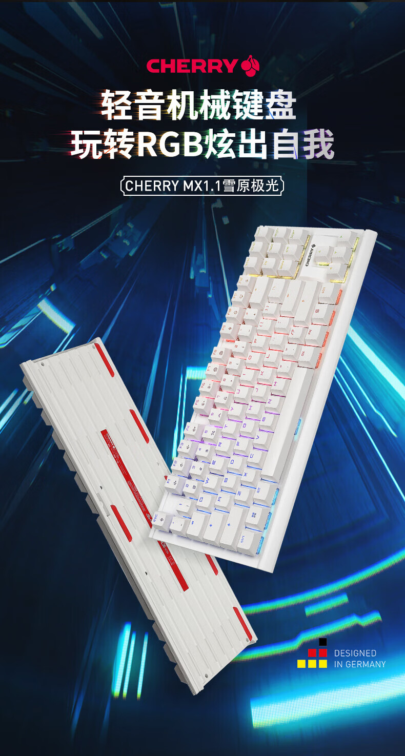 CHERRY樱桃MX1.1机械键盘87键 游戏键盘 有线键盘 悬浮式无钢结构 RGB灯效 MX1.1-雪原极光RGB-红轴