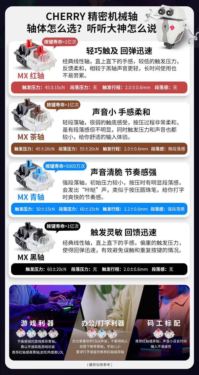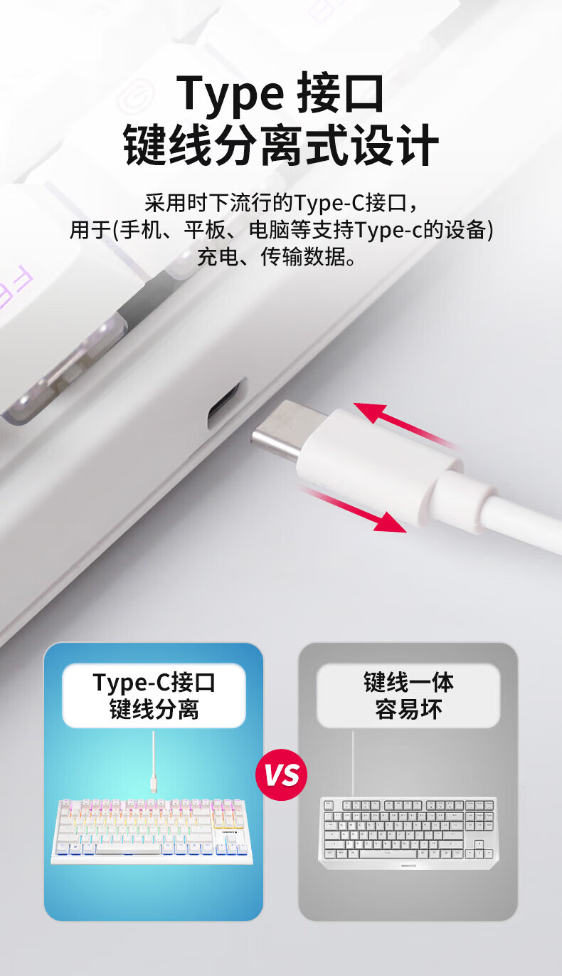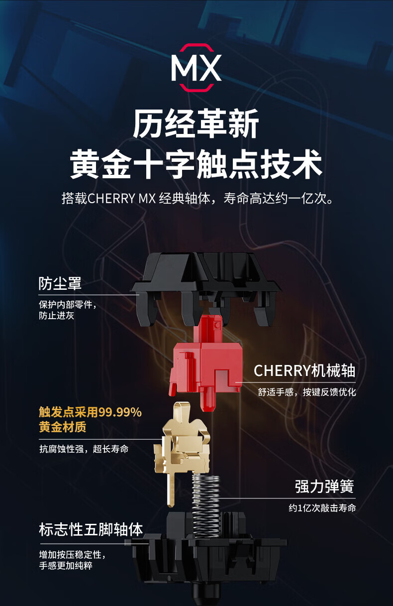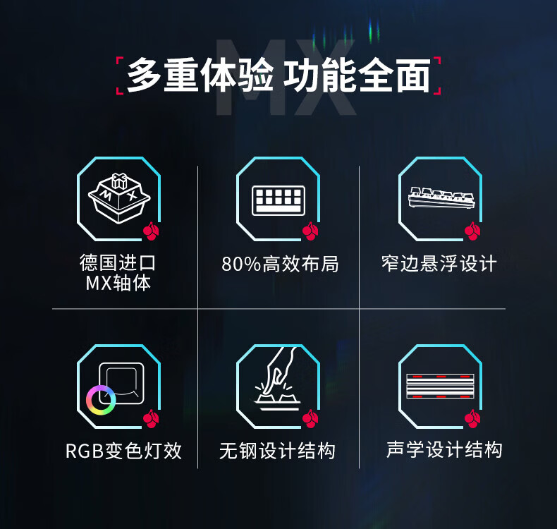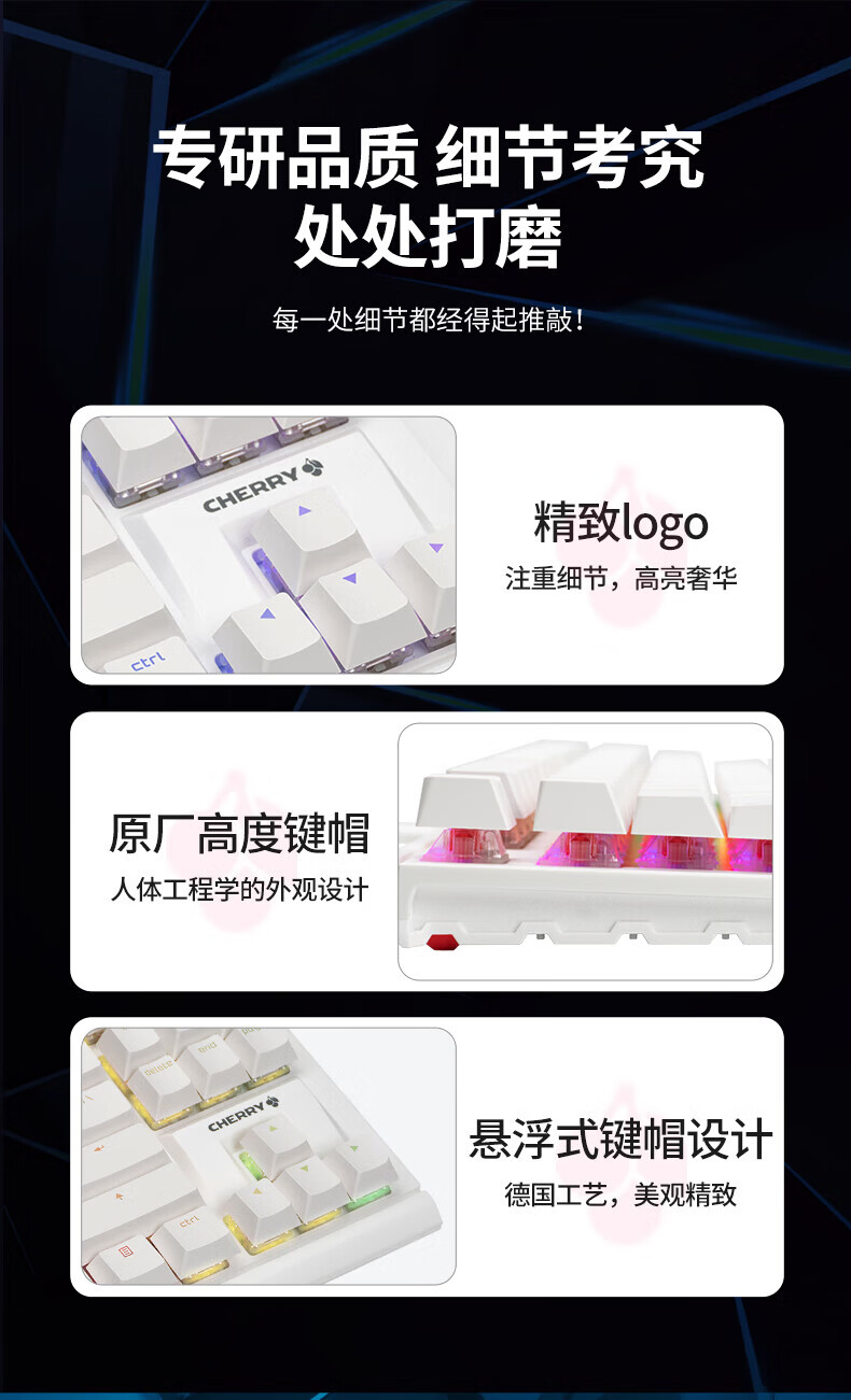 CHERRY樱桃MX1.1机械键盘87键 游戏键盘 有线键盘 悬浮式无钢结构 RGB灯效 MX1.1-雪原极光RGB-红轴