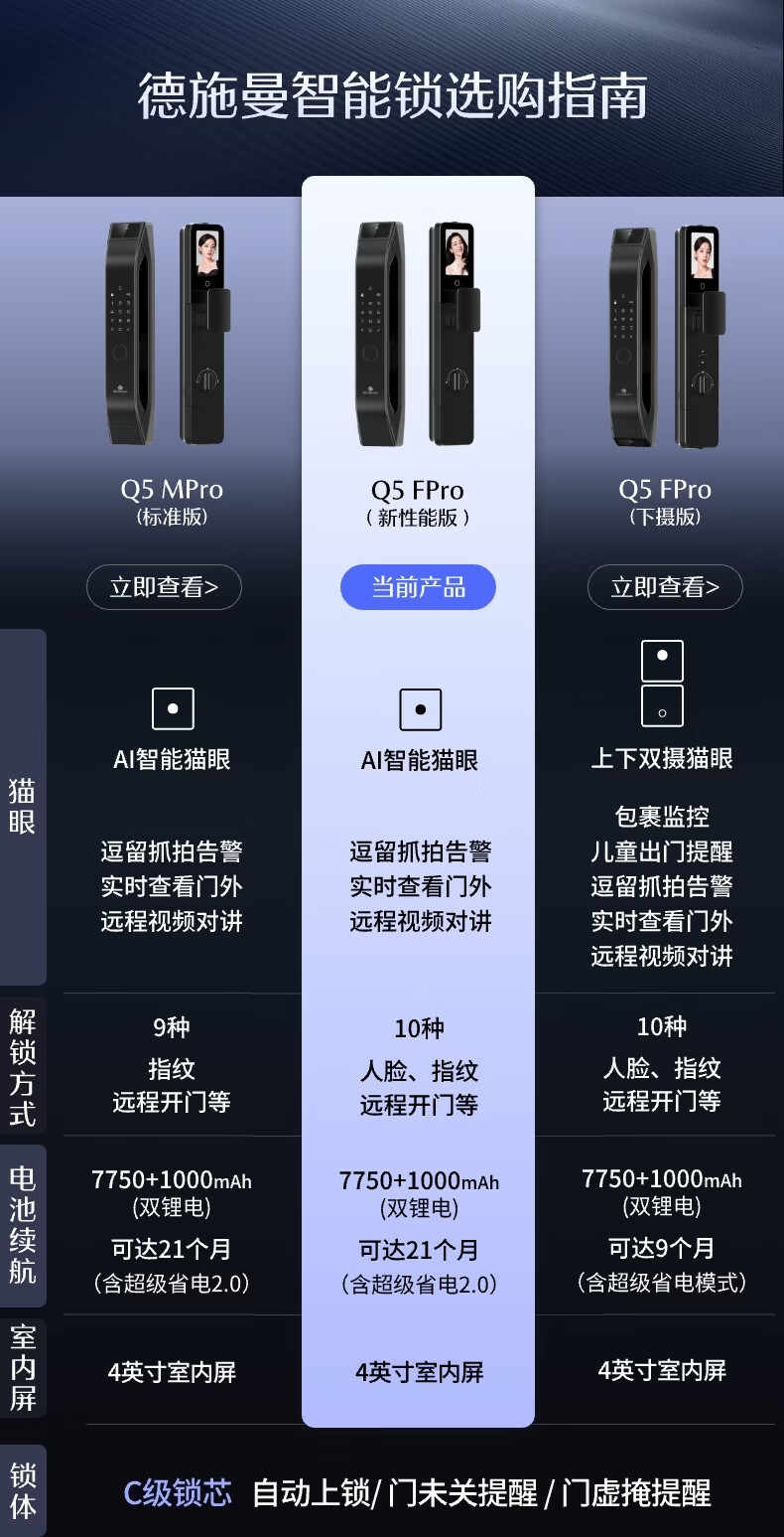 德施曼(DESMAN)智能门锁C级锁芯人脸大屏密码大圣Q5FPro(新性能版)一价全包
