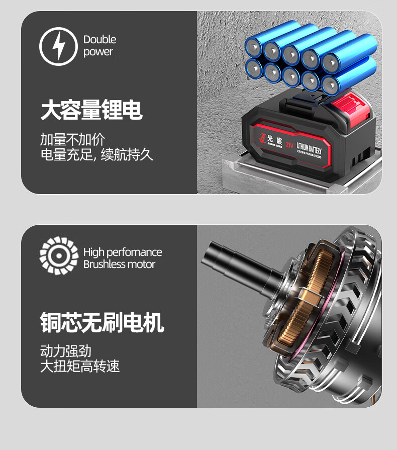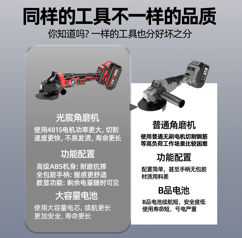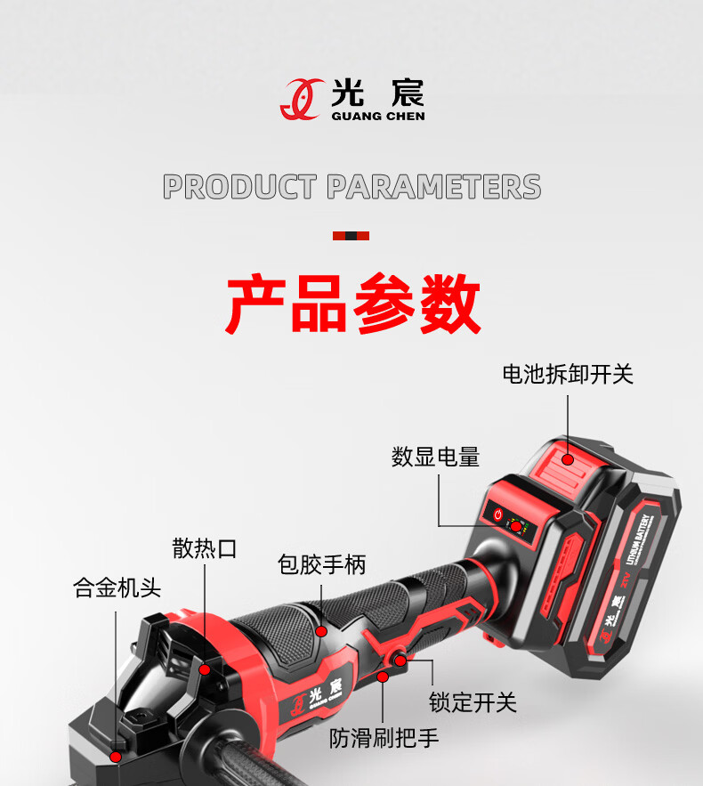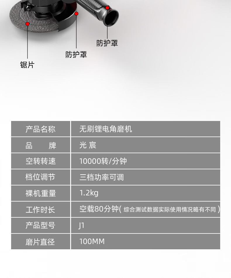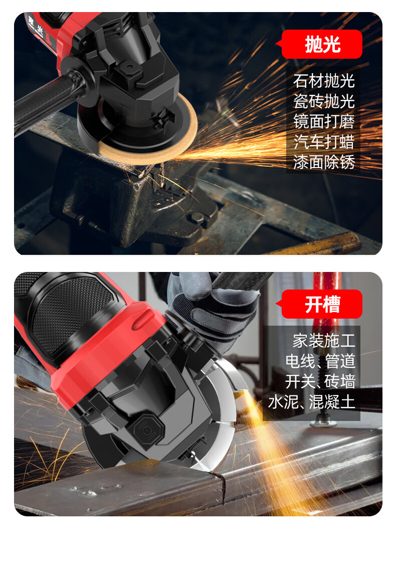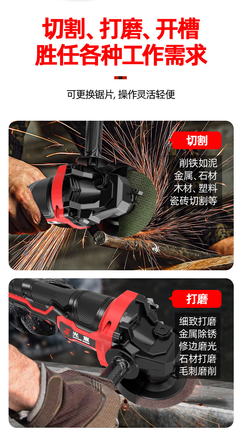 光宸无刷锂电角磨机充电式大功率电池切割机打磨抛光手砂轮电动磨光机 电量显示【5.0Ah一电一充】+礼包