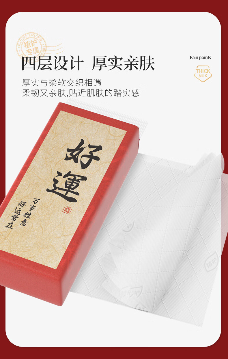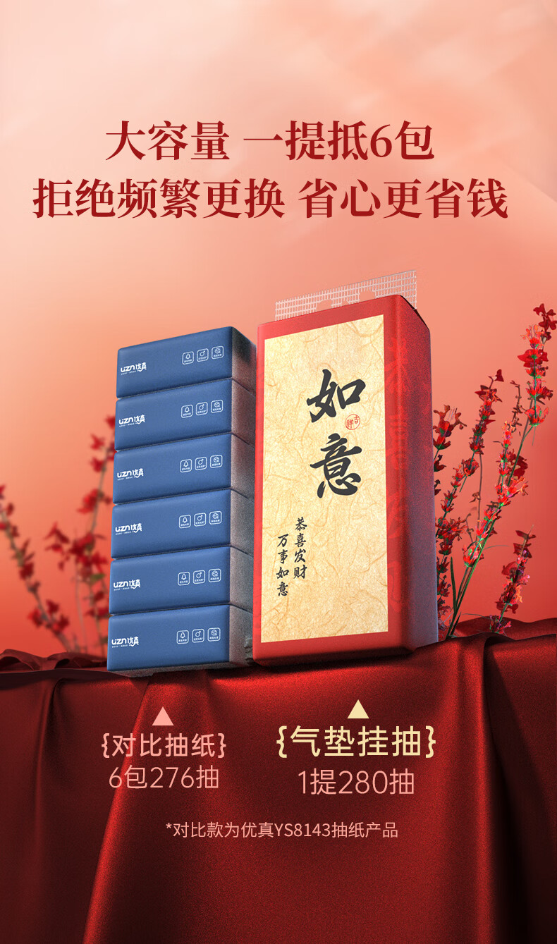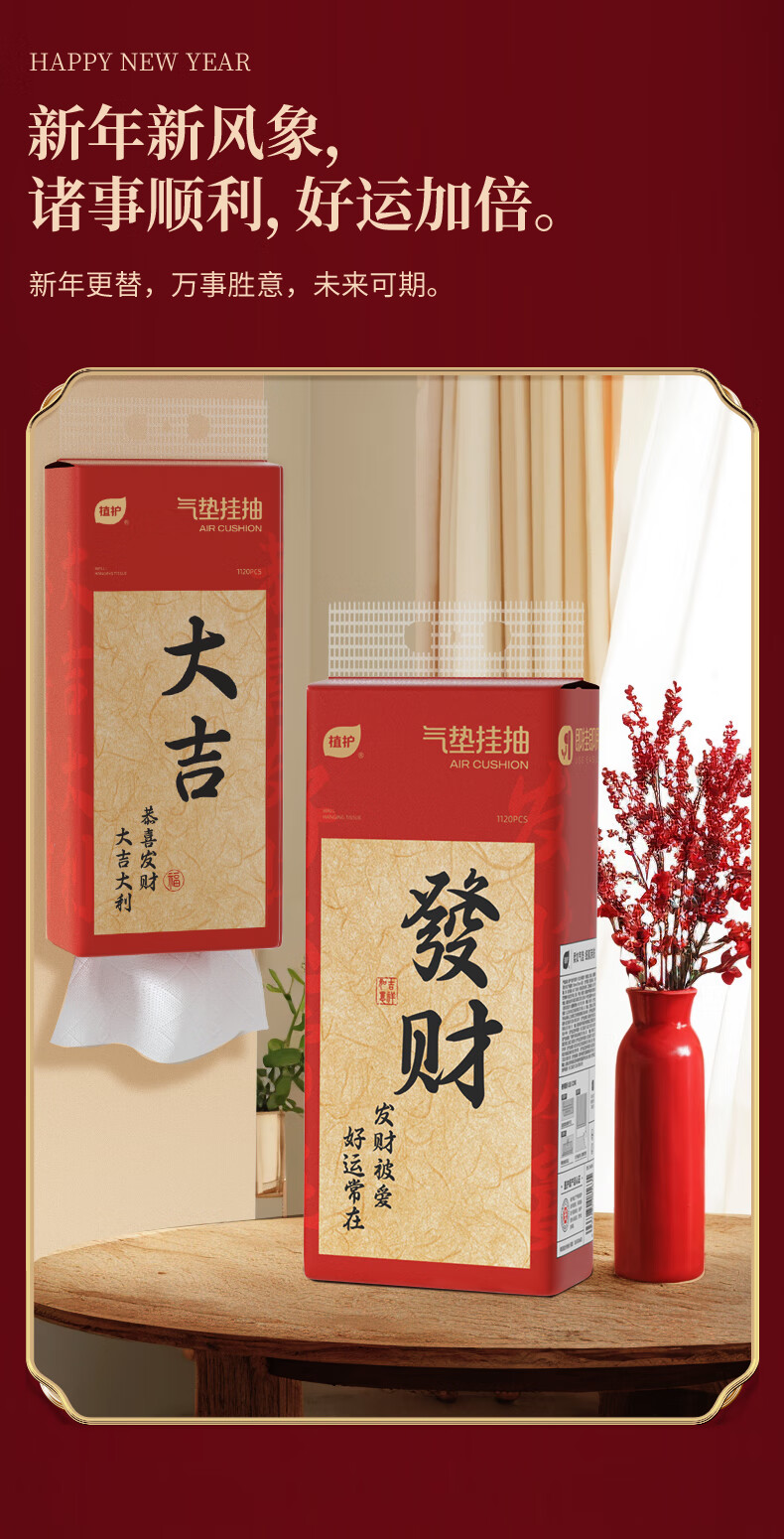 植护原木挂抽气垫纸巾抽纸 家用卫生纸抽 餐巾纸 大吉大利 4层 280抽*2提