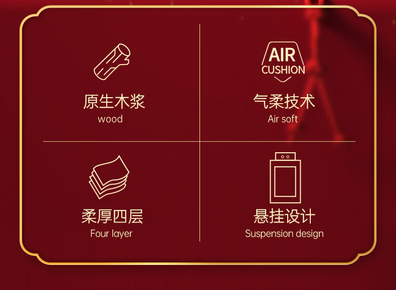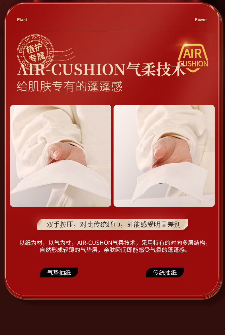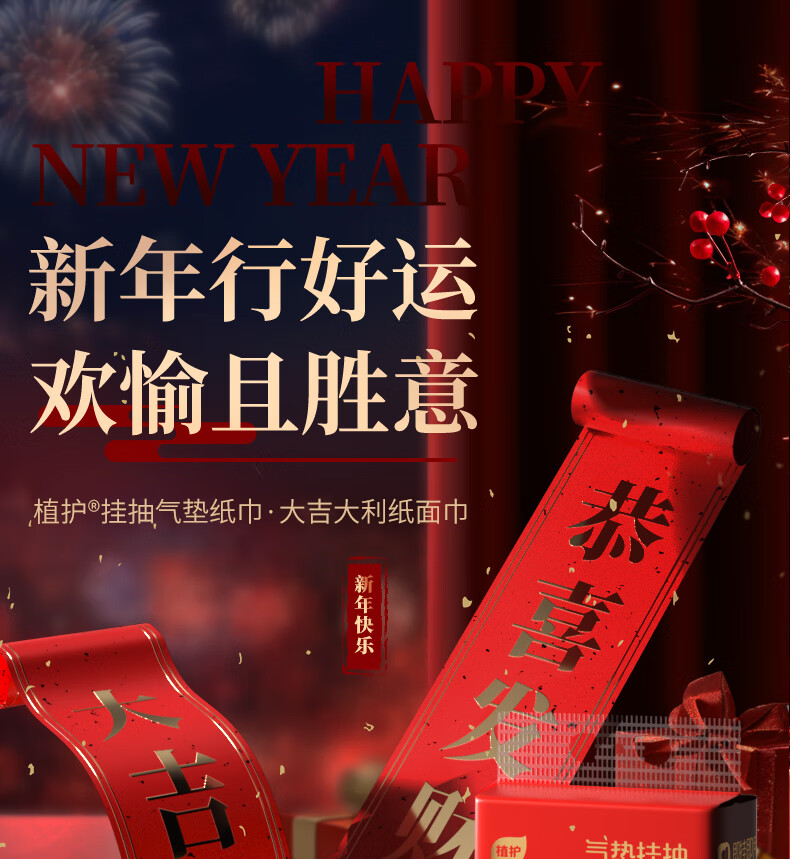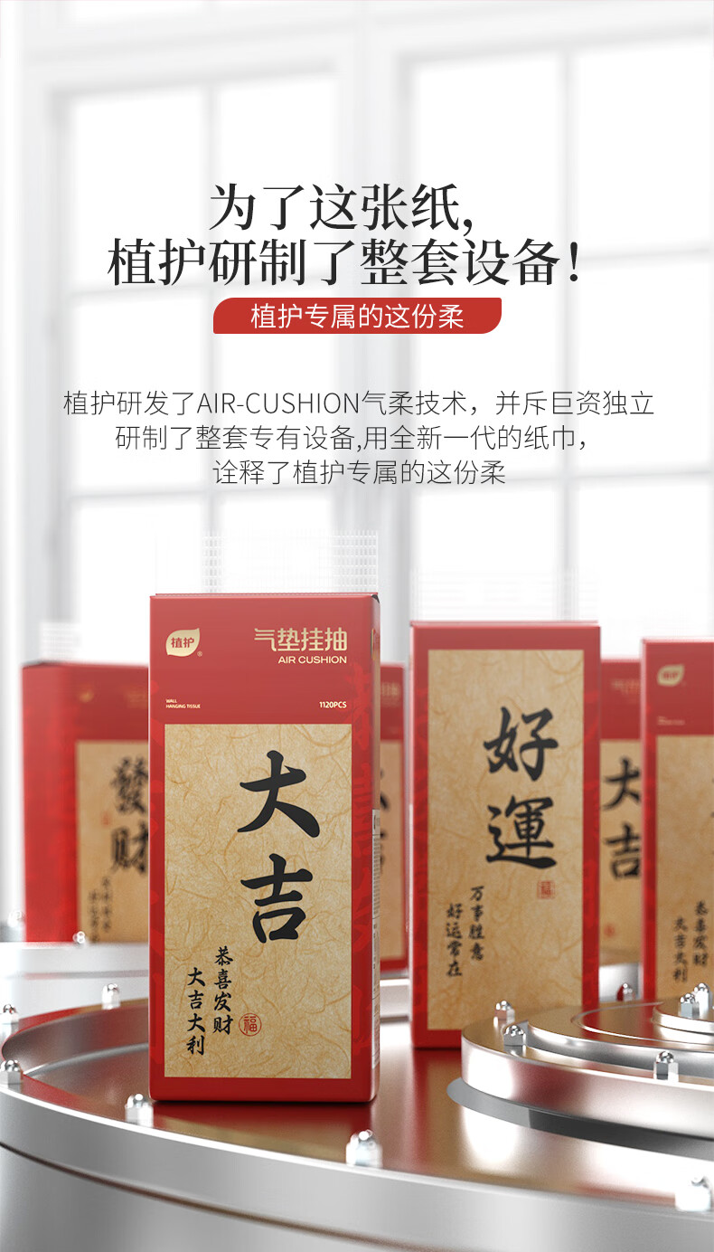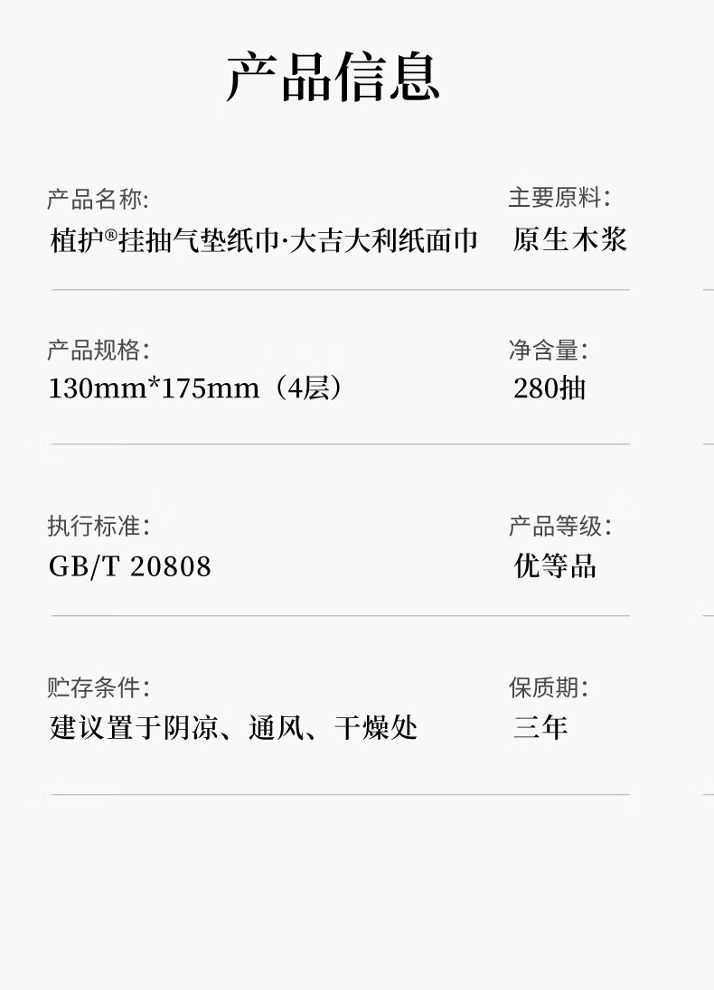 植护原木挂抽气垫纸巾抽纸 家用卫生纸抽 餐巾纸 大吉大利 4层 280抽*2提