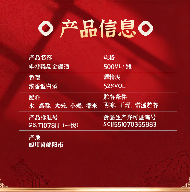 丰特浓香型白酒52度高度纯粮食酒口粮酒四川白酒宴请年货送礼 52度 450mL 6瓶 装丰特头曲