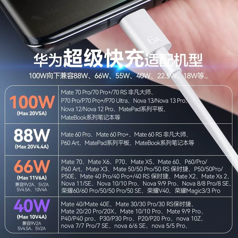 华为(HUAWEI)华为原装全能充电器66W/88W超级快充100W原版通用适配P70/60/X5/Mate70/60/50/40Pro/Nova8/9se/10 【原装盒装】快充 套装 100w双口