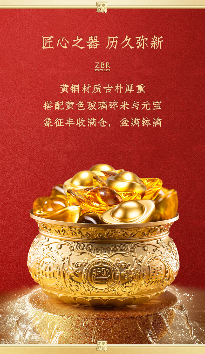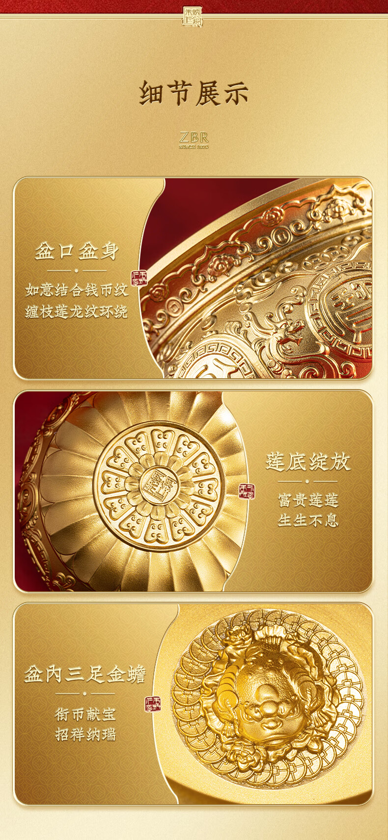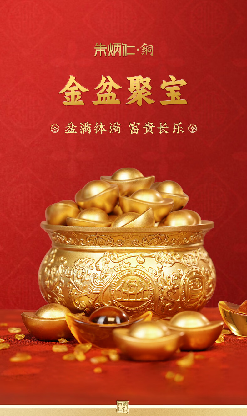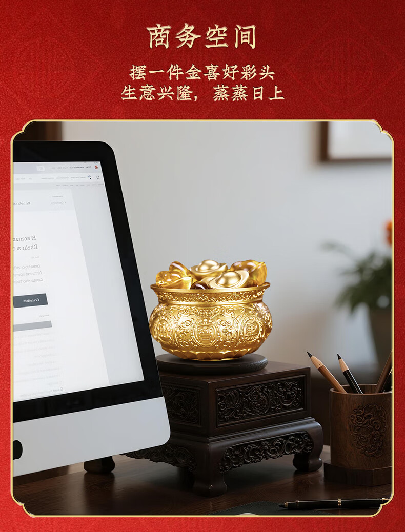 朱炳仁铜 金盆聚宝套装 聚宝缸存钱罐客厅书房玄关家用铜缸摆件 金盆聚宝套装