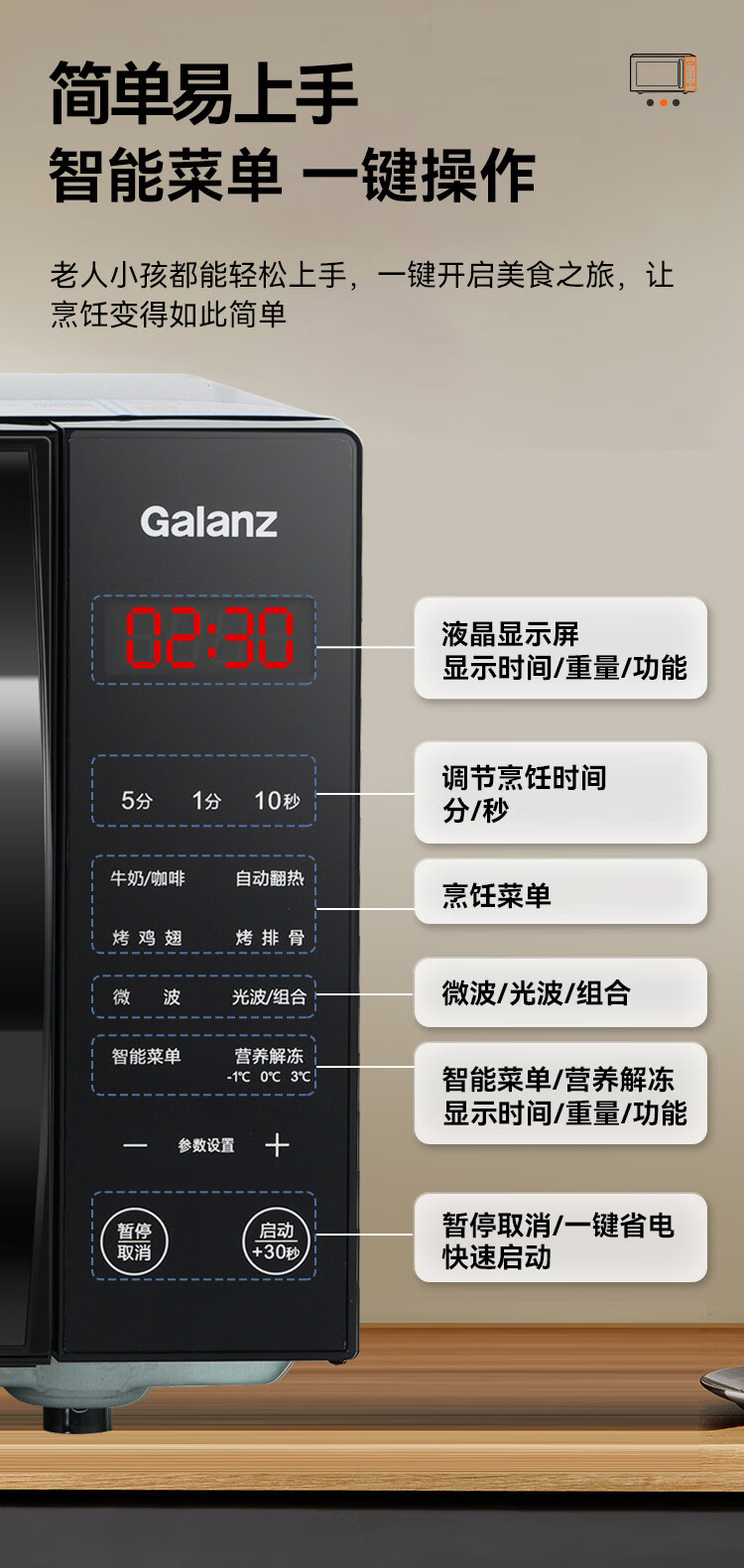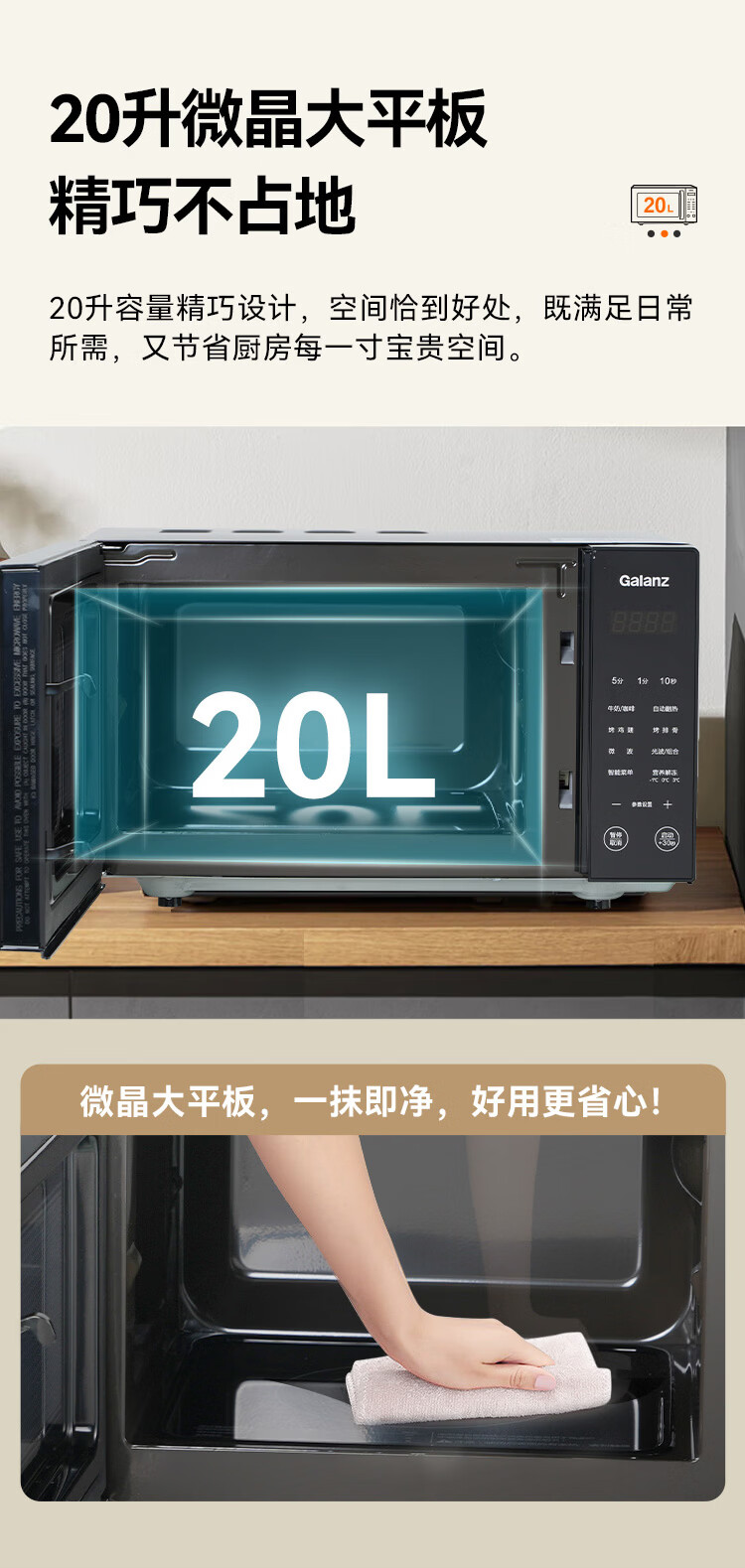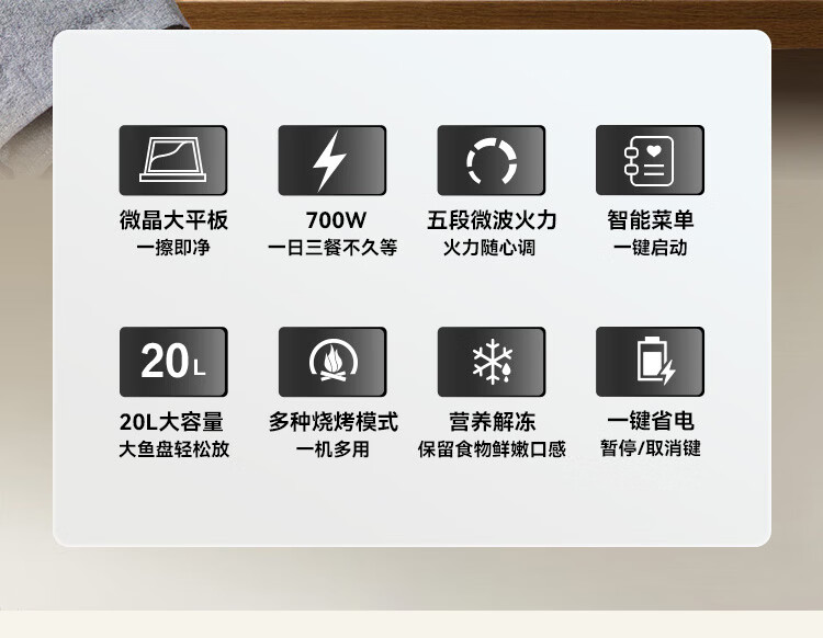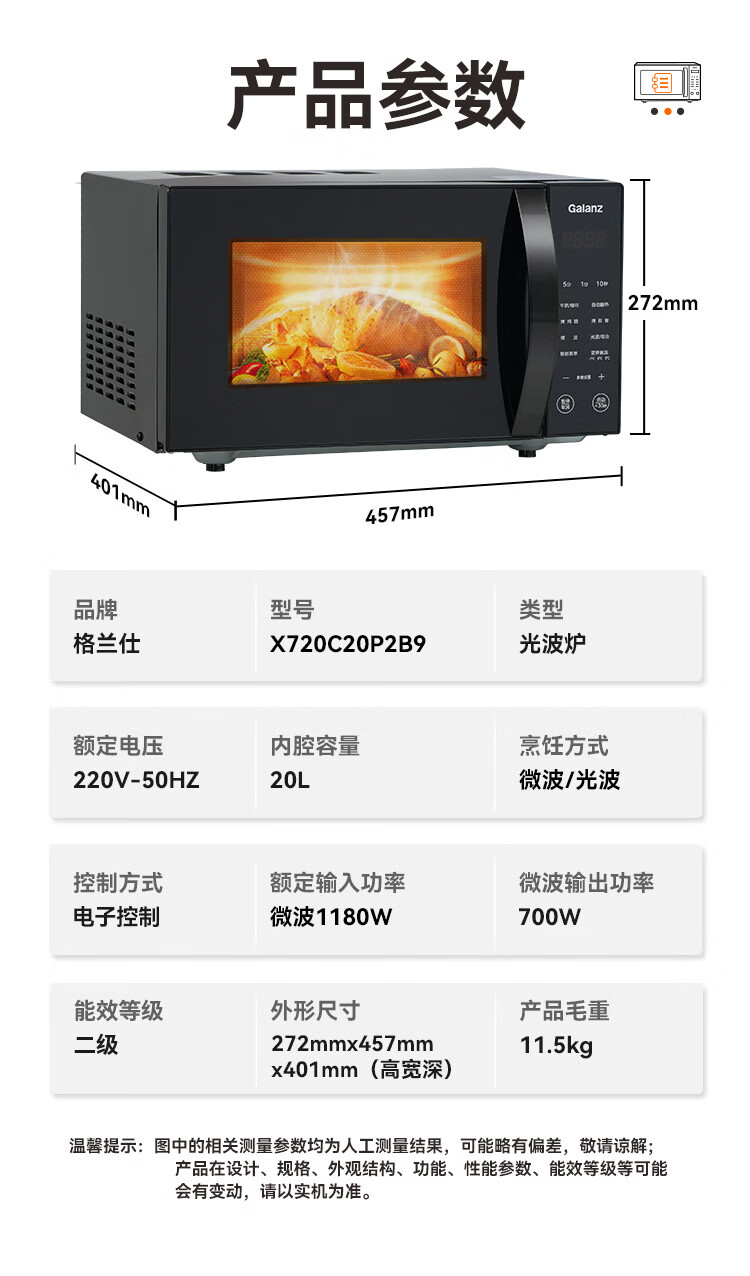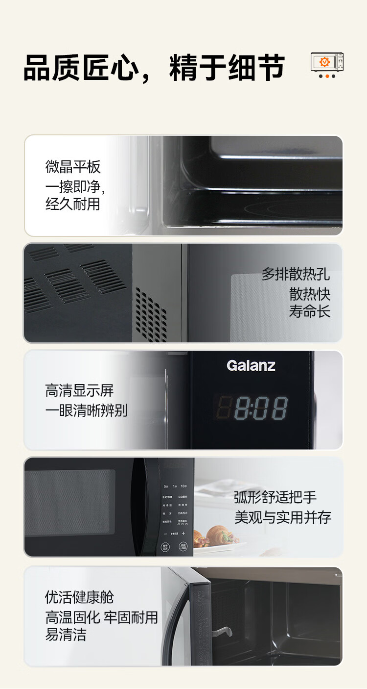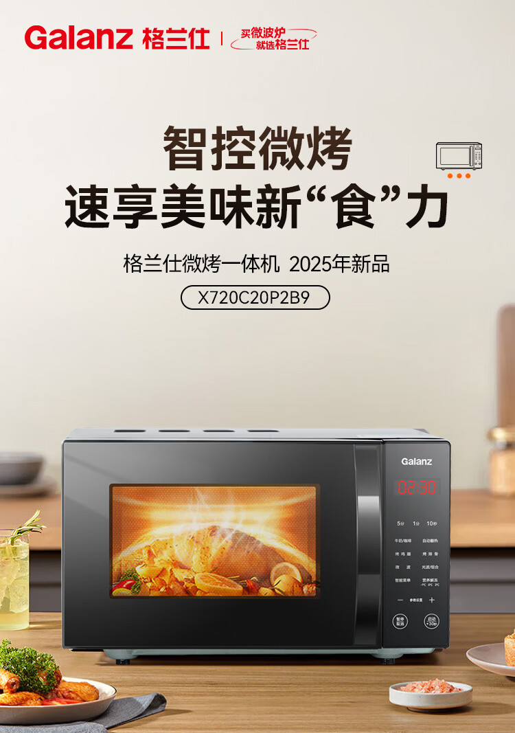 格兰仕(Galanz)微波炉烤箱一体机 20升平板家用 700瓦节能省电 光波烧烤快速解冻智能菜单X720C20P2B9