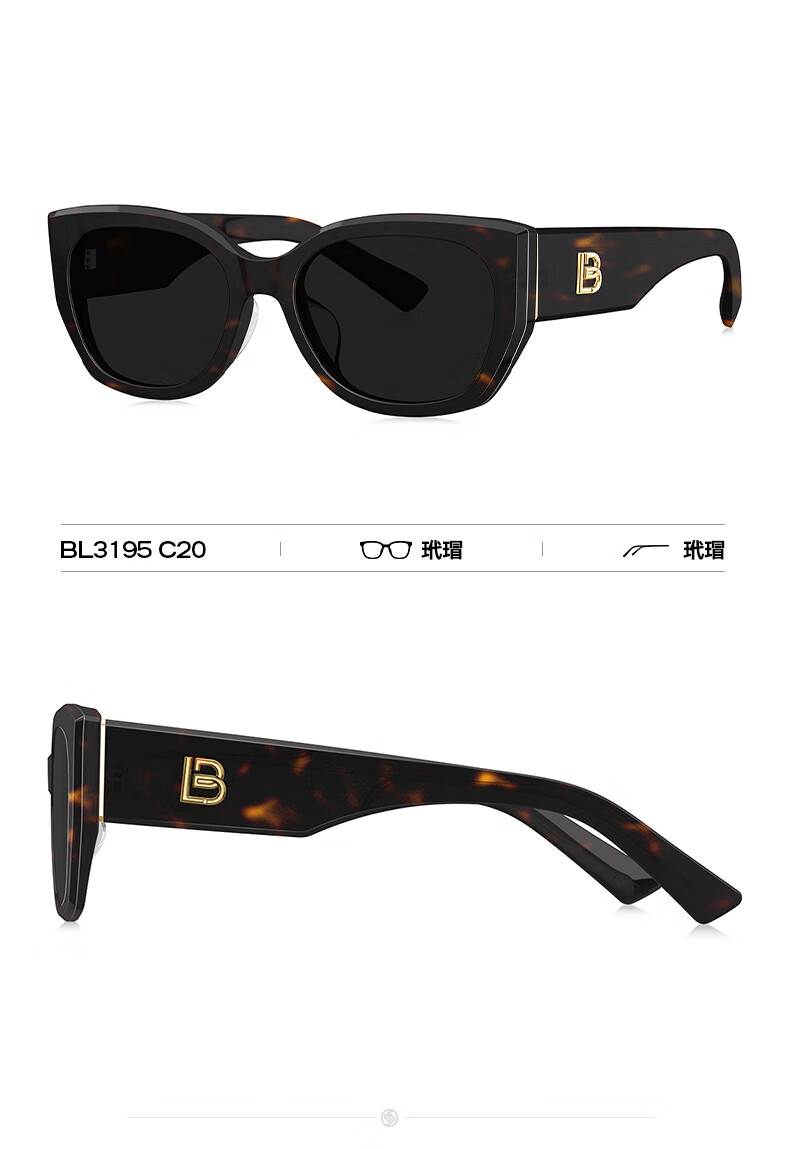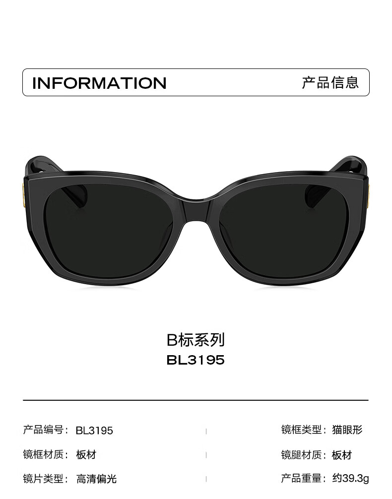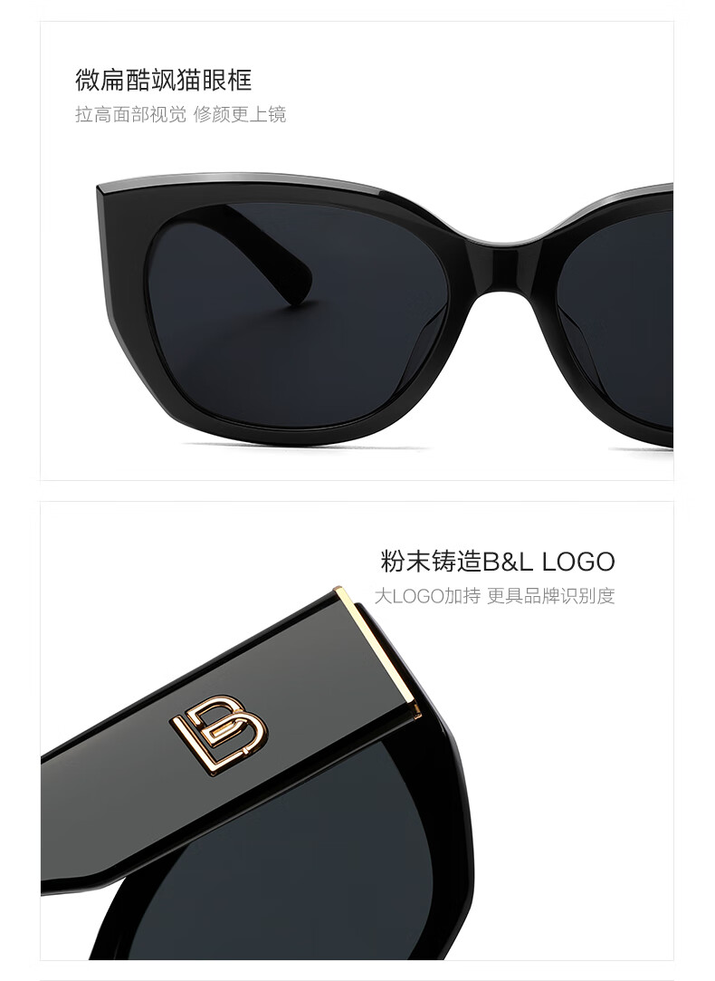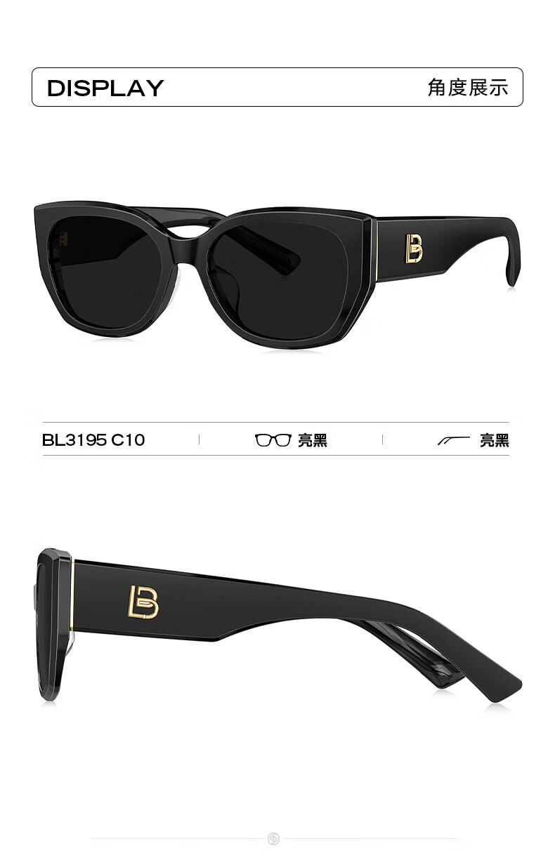 BOLON暴龙眼镜丁禹兮同款26年新品太阳镜女猫眼墨镜男防晒近视镜BL3236 【明星同款/偏光】C10 亮黑色+深灰色镜片