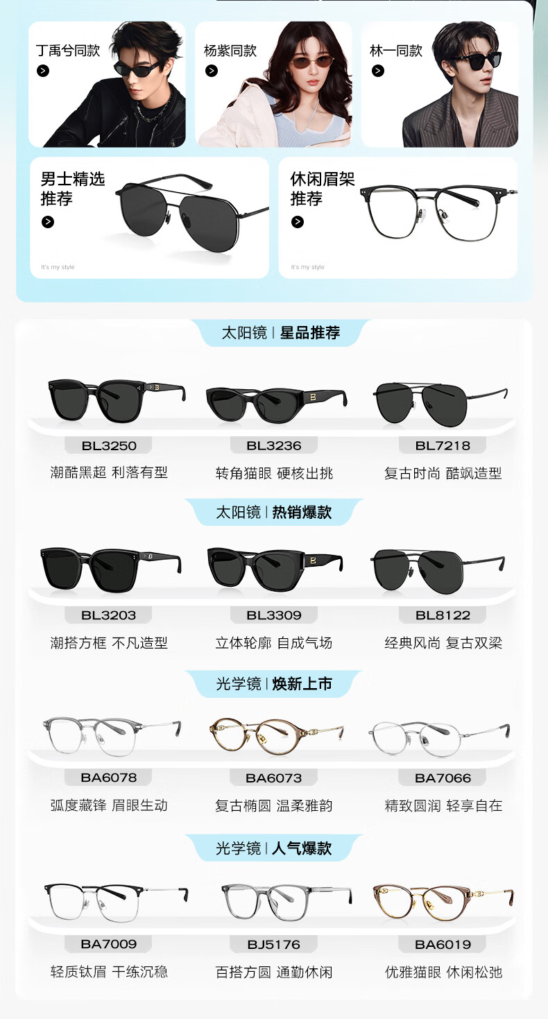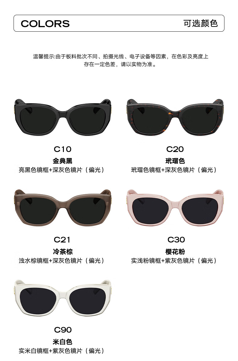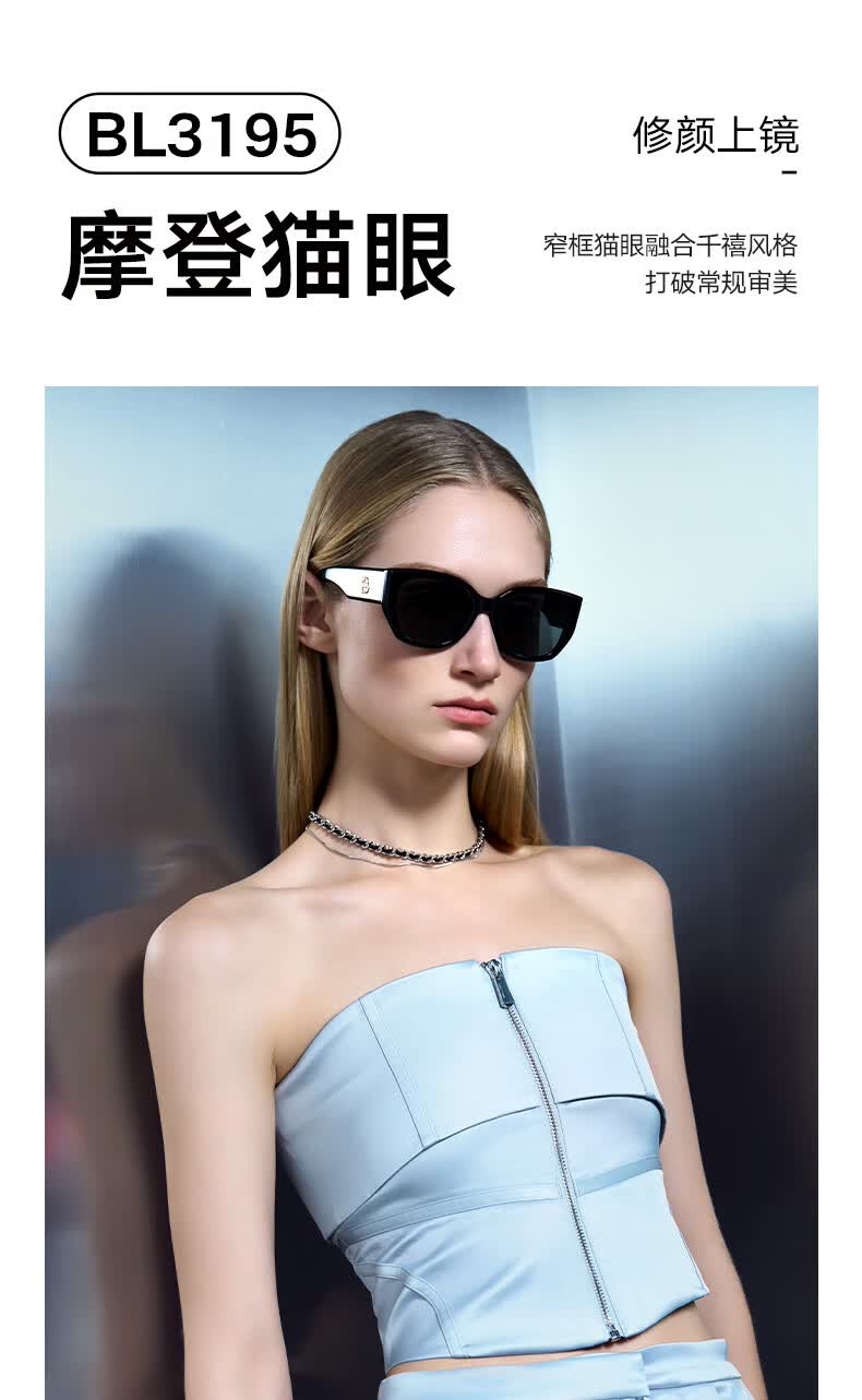 BOLON暴龙眼镜丁禹兮同款26年新品太阳镜女猫眼墨镜男防晒近视镜BL3236 【明星同款/偏光】C10 亮黑色+深灰色镜片