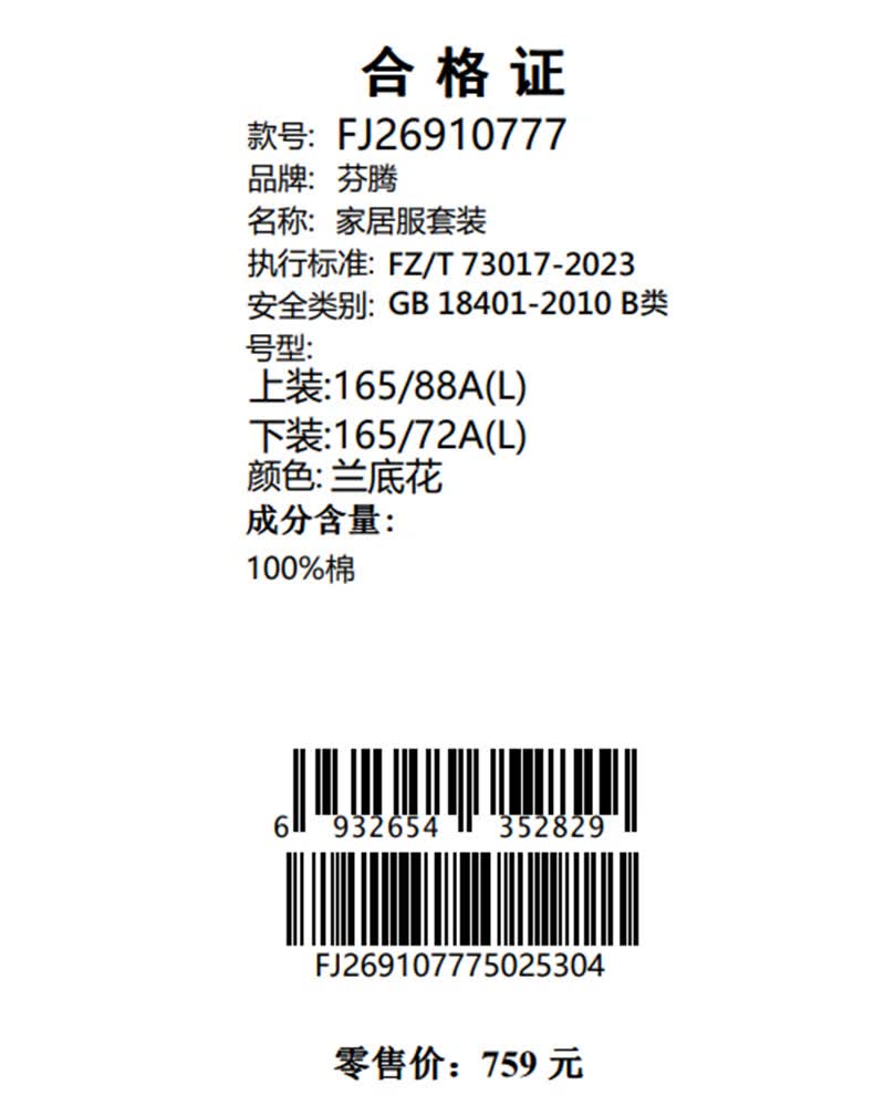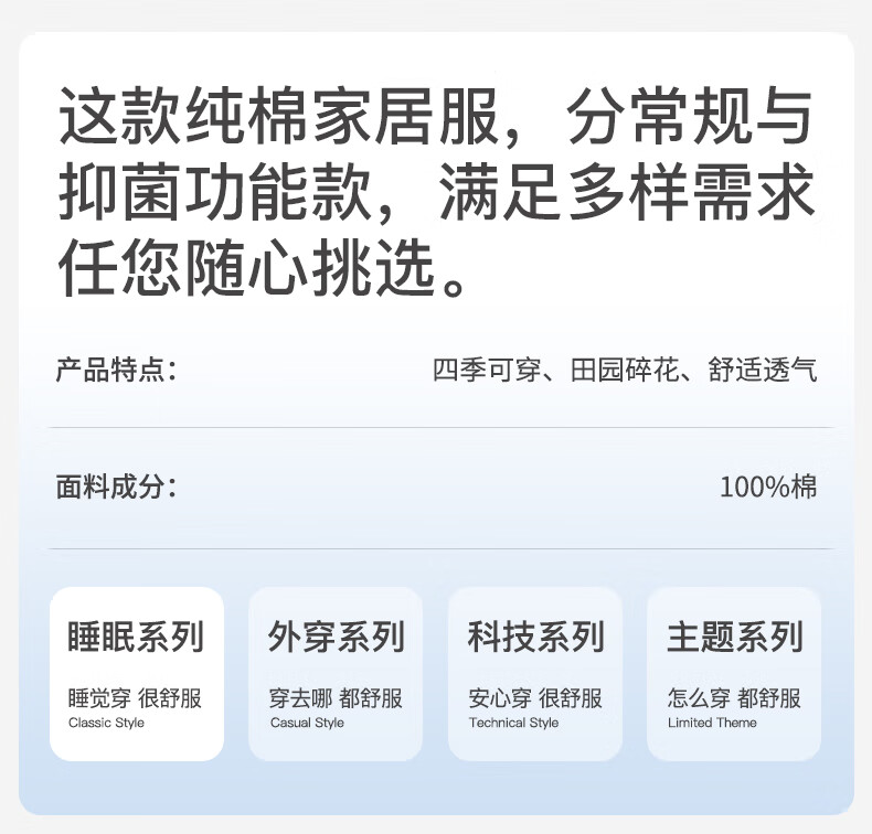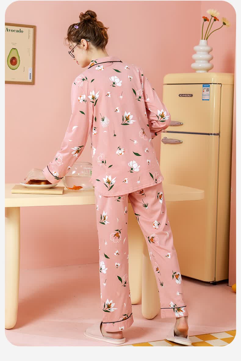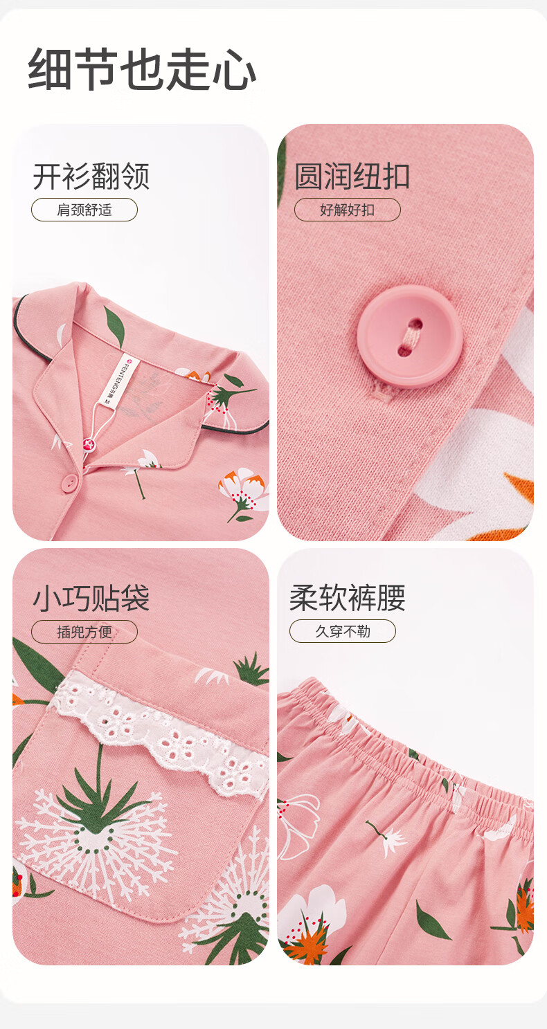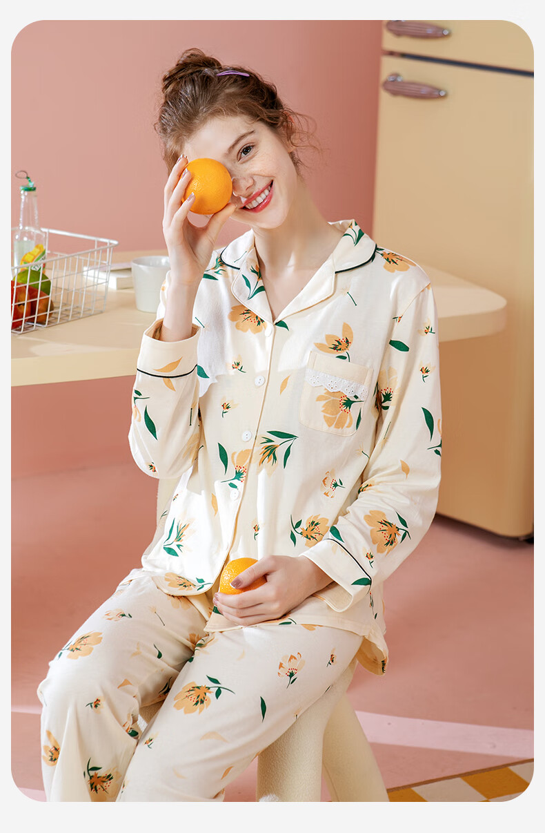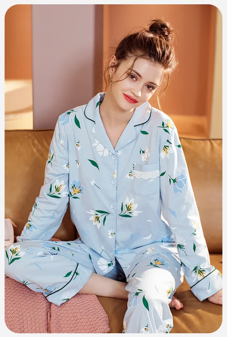 芬腾睡衣女5A抑菌纯棉春秋翻领开衫纯棉长袖睡衣女士家居服软棉棉