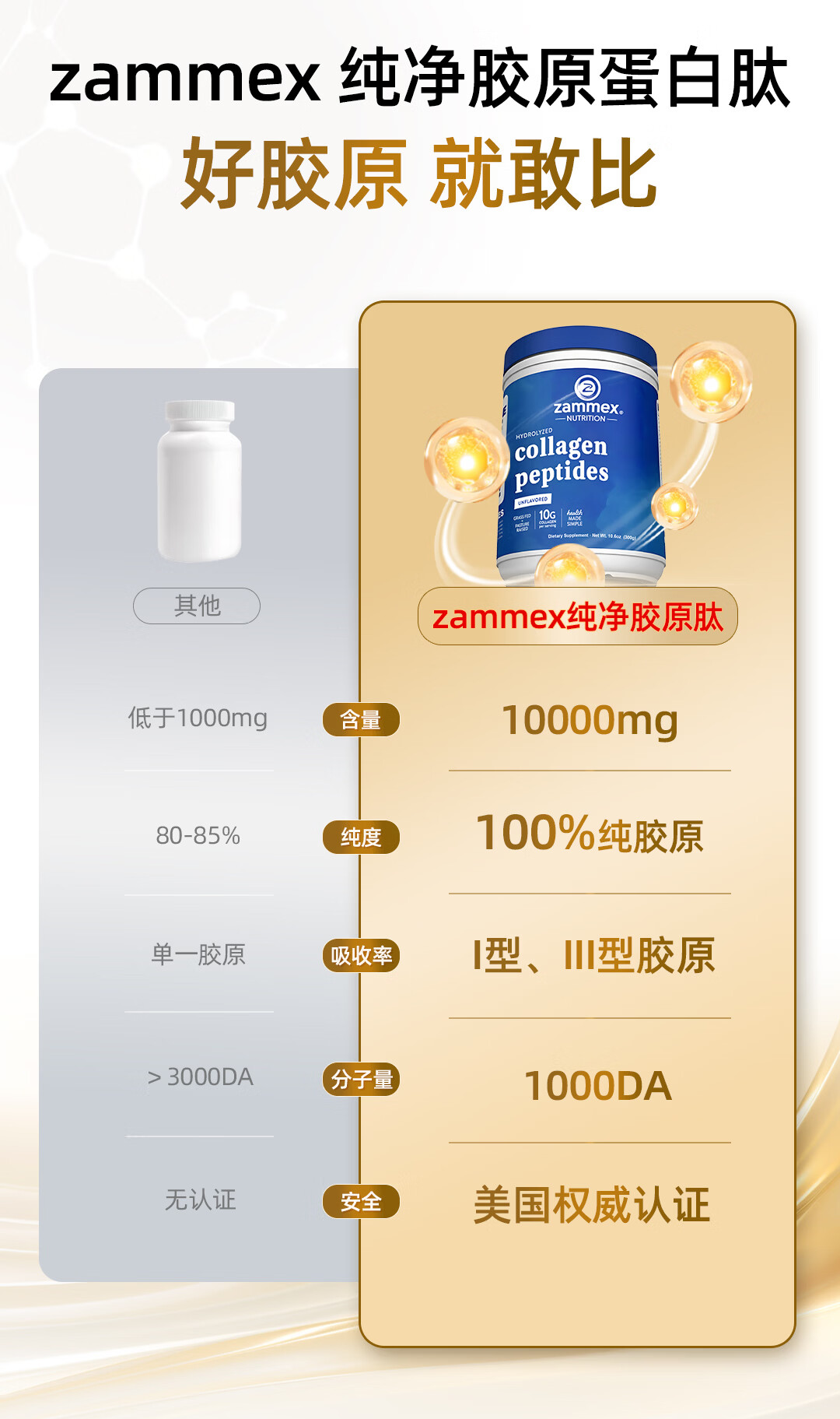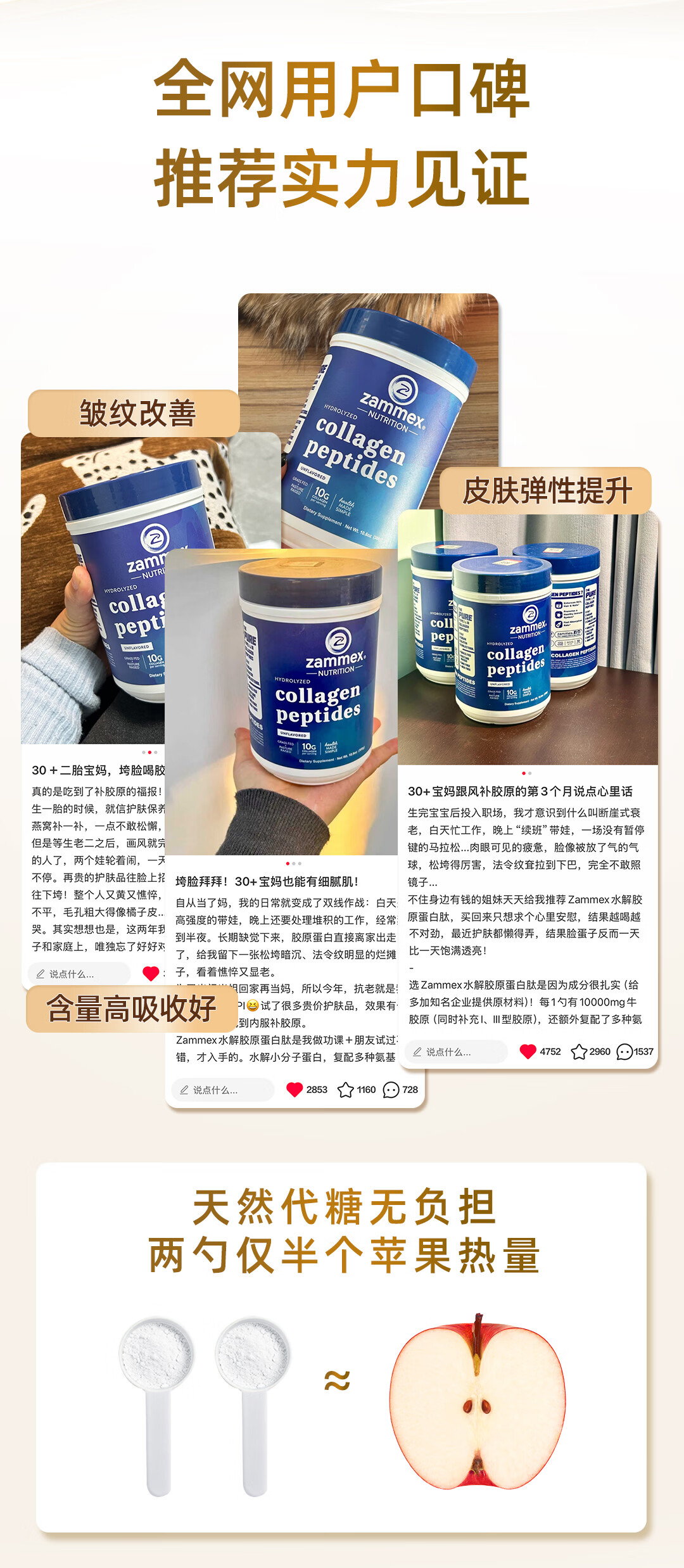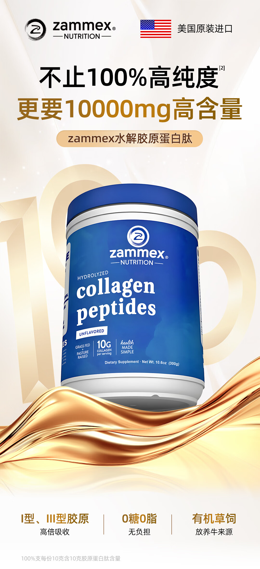 ZAMMEX胶原蛋白肽粉水解小分子易吸收内服进口草饲牛胶精华美颜紧致护肤 【买12送3 送同款】半年量 300g*15罐