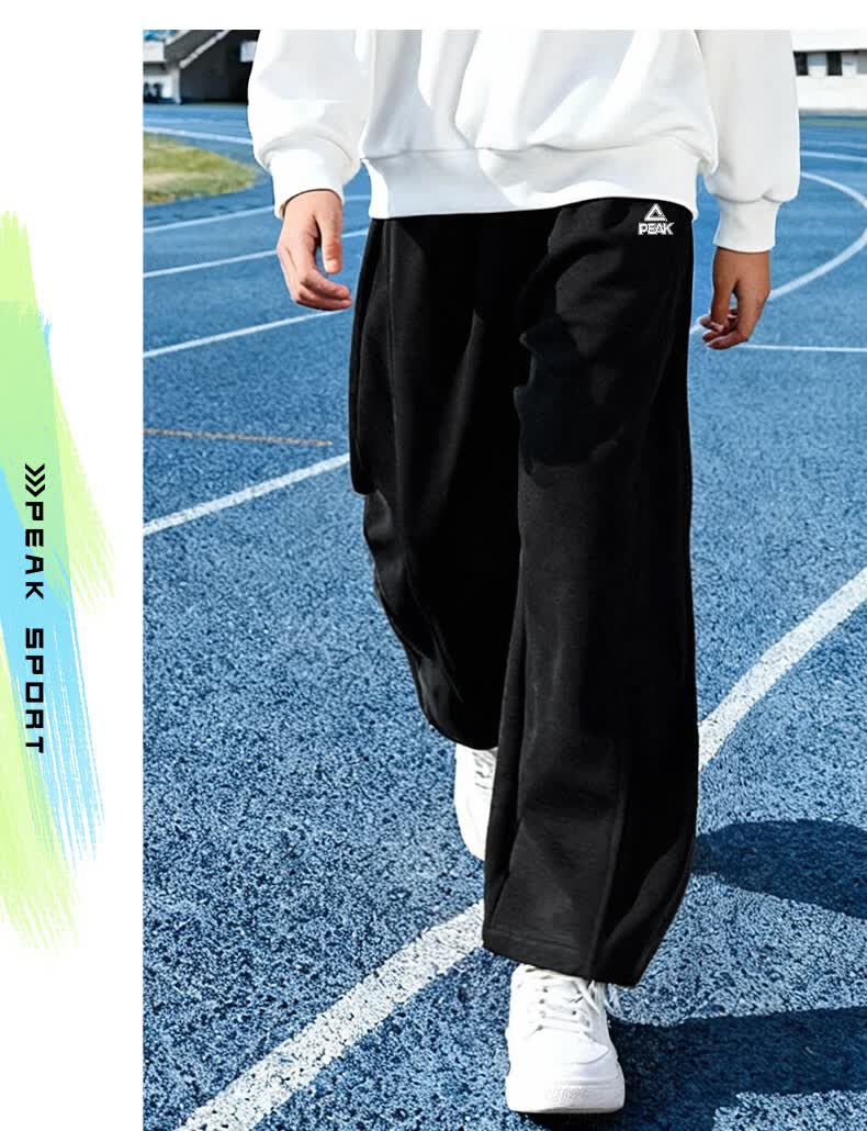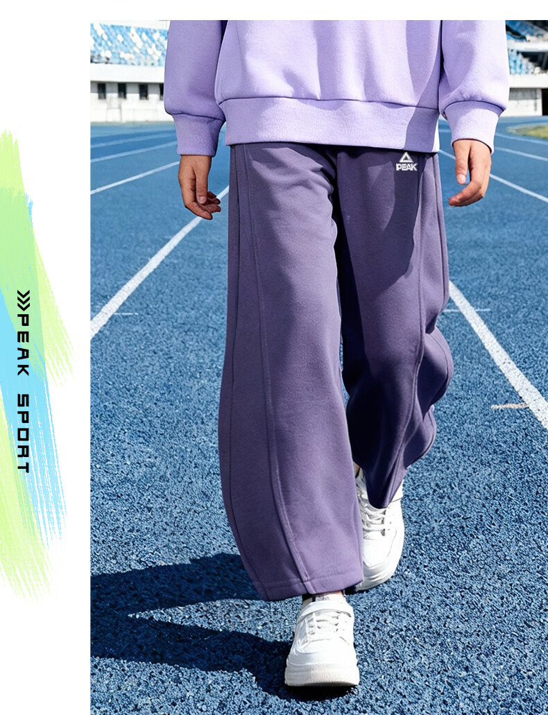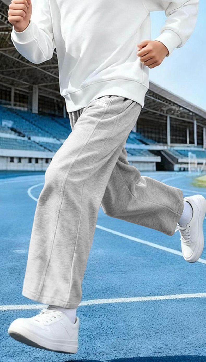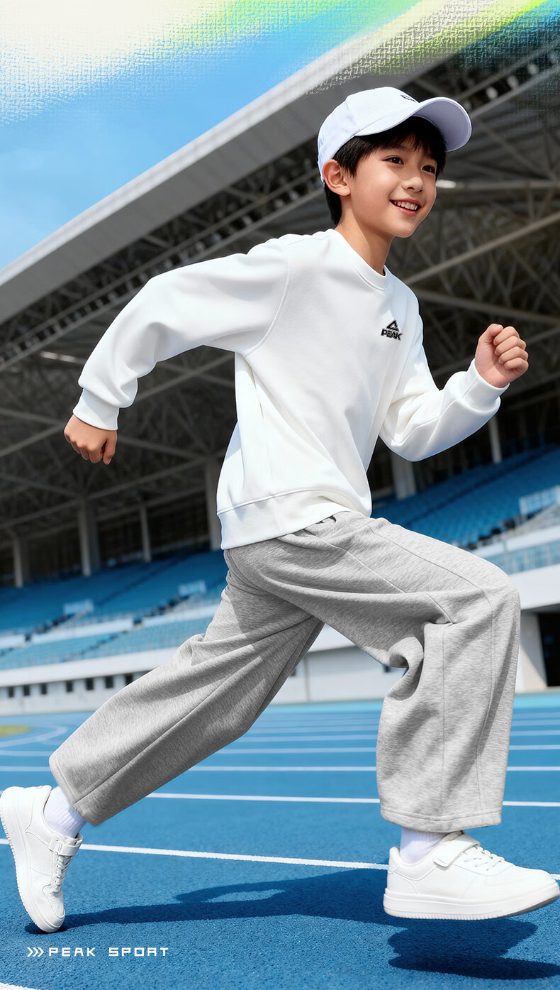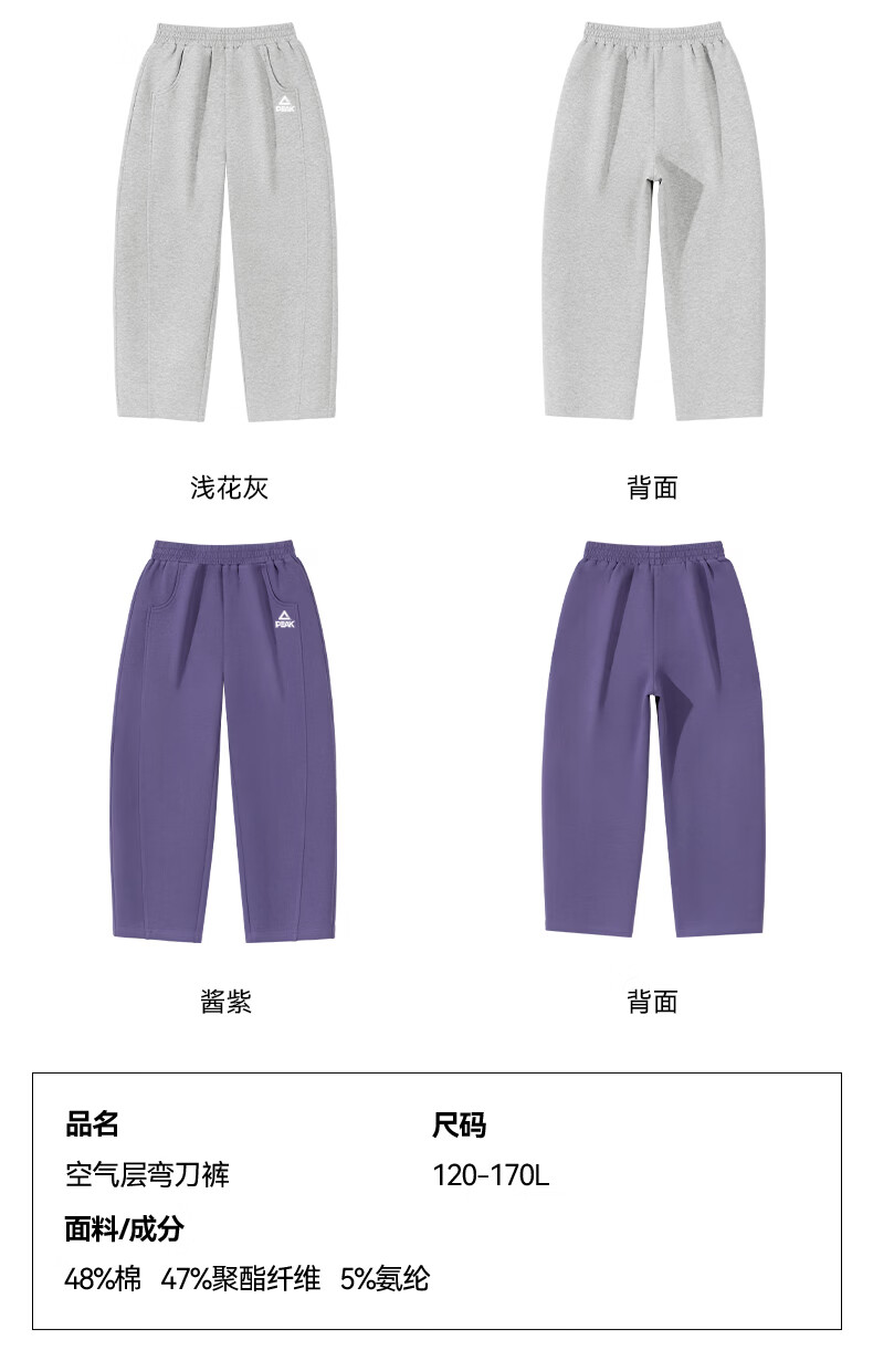 匹克童装儿童裤子春秋2026新款男童薄款运动裤宽松女童弯刀裤春装卫裤 浅花灰/PK标白硅胶K (偏大,建议选小一码) 160
